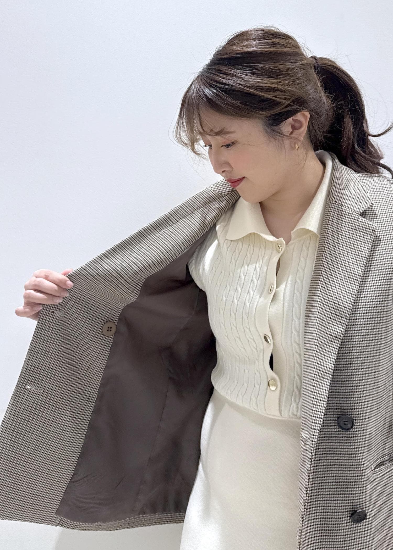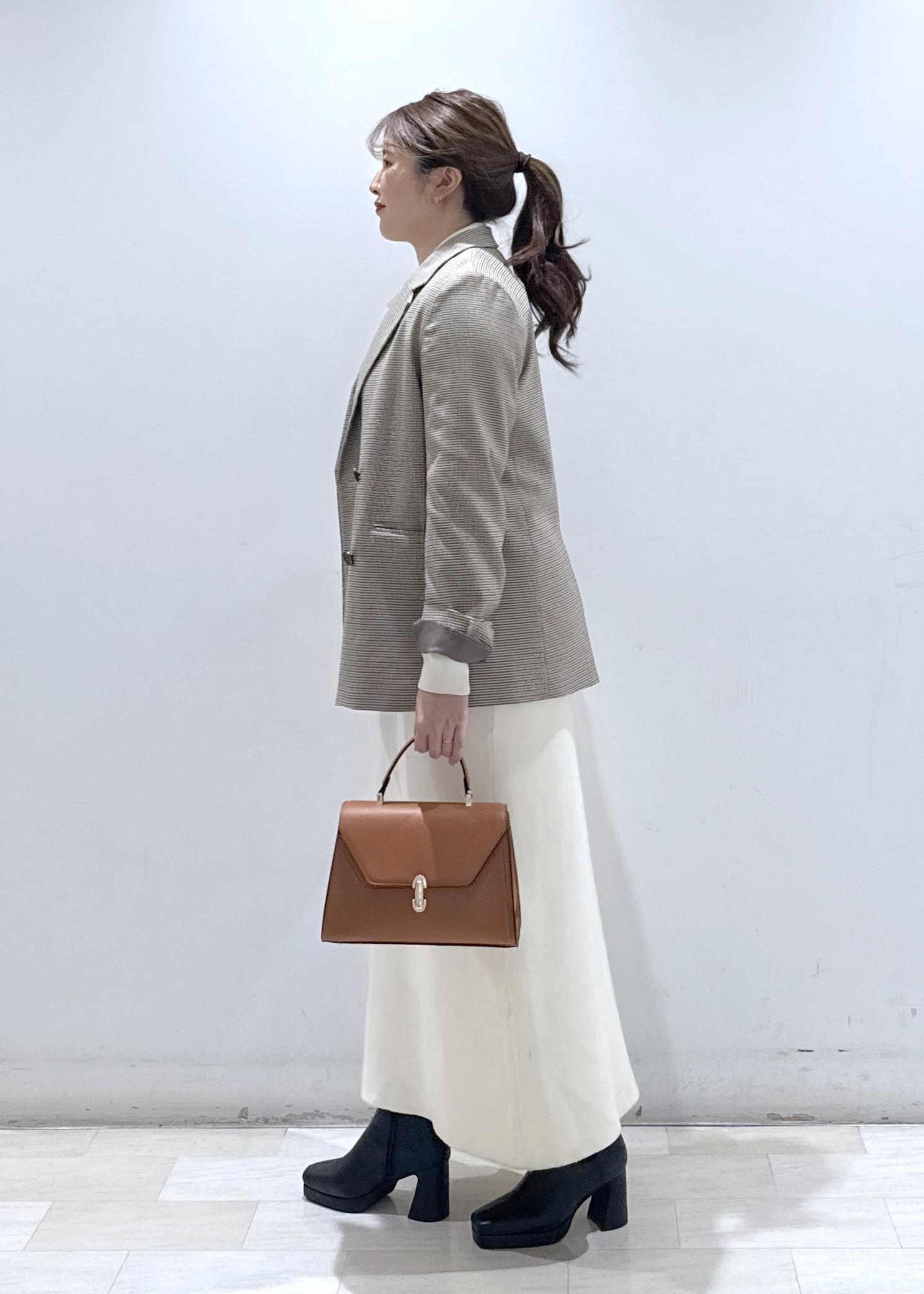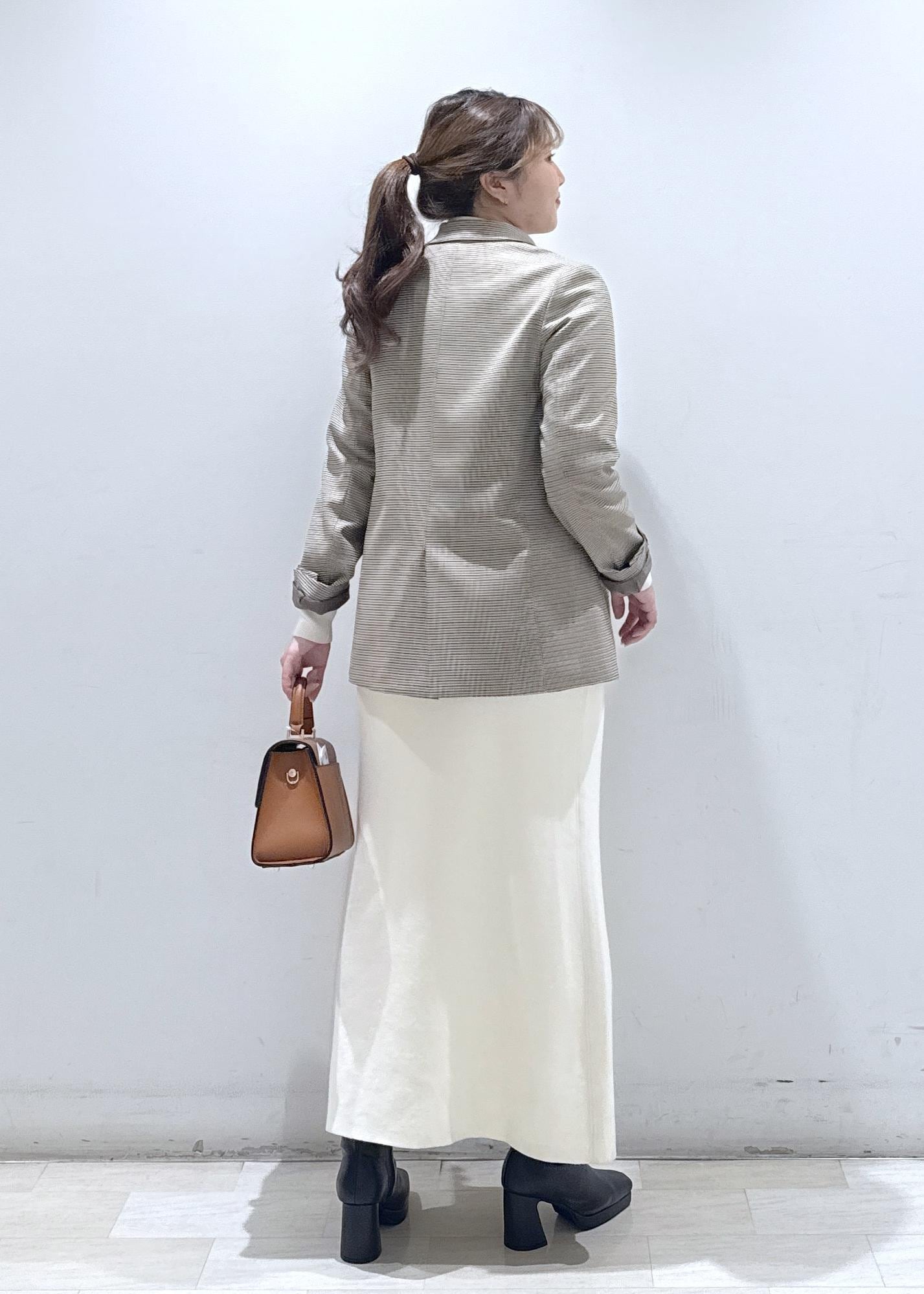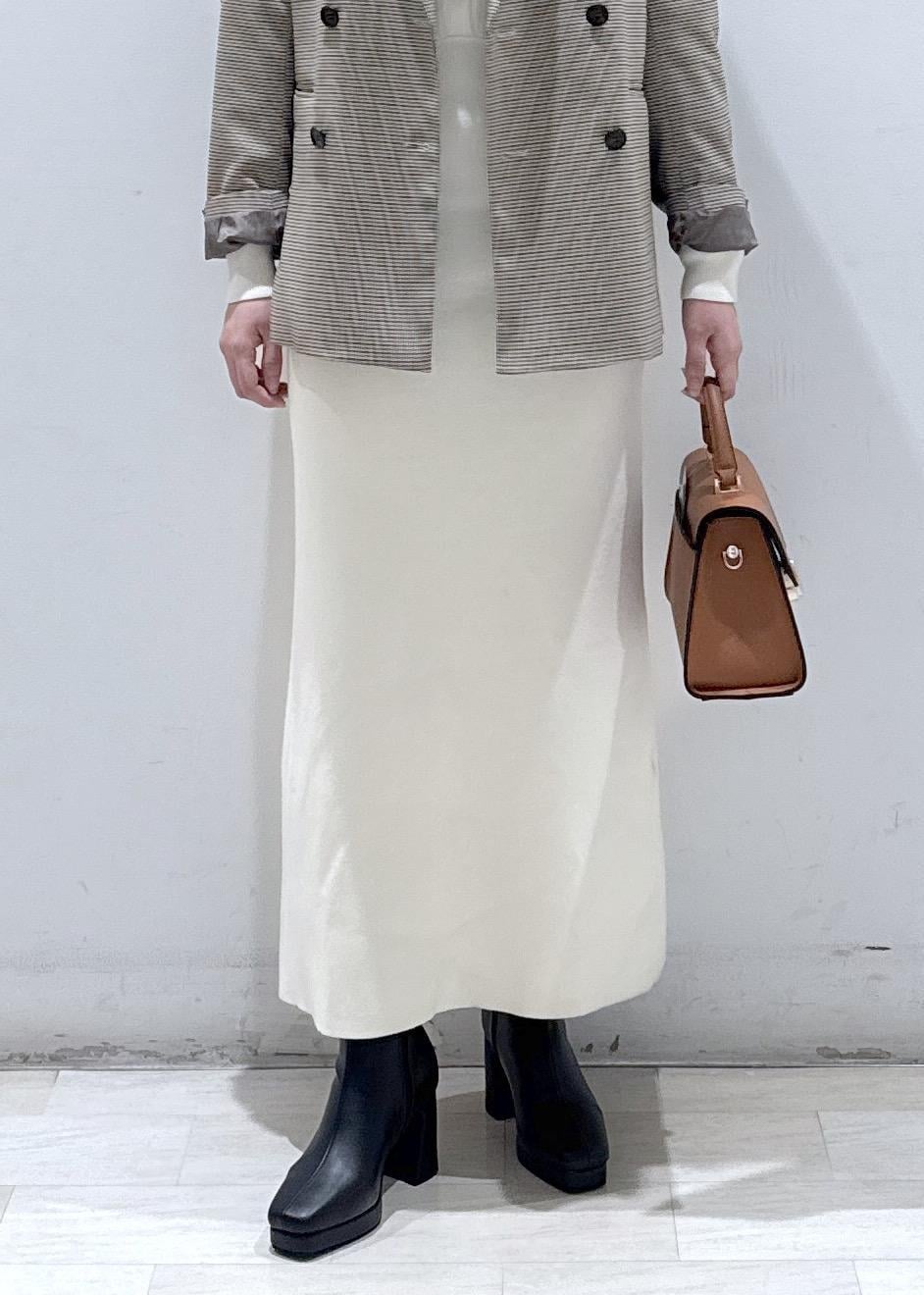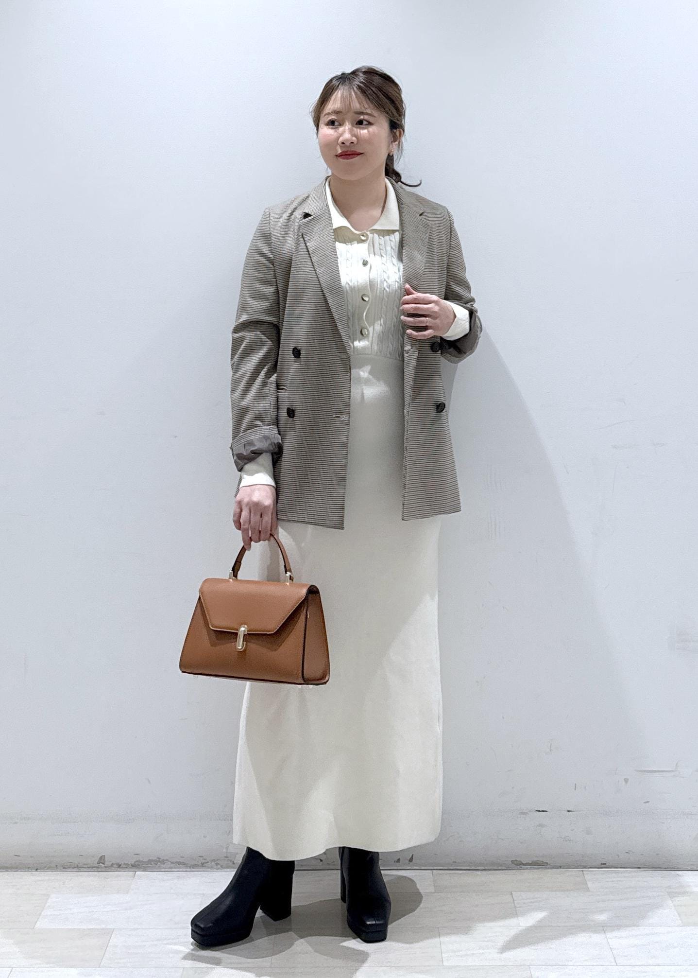 今回は新作で入荷しましたケーブルニットロングワンピースに、ジャケット合わせて綺麗めカジュアルにしてみました。