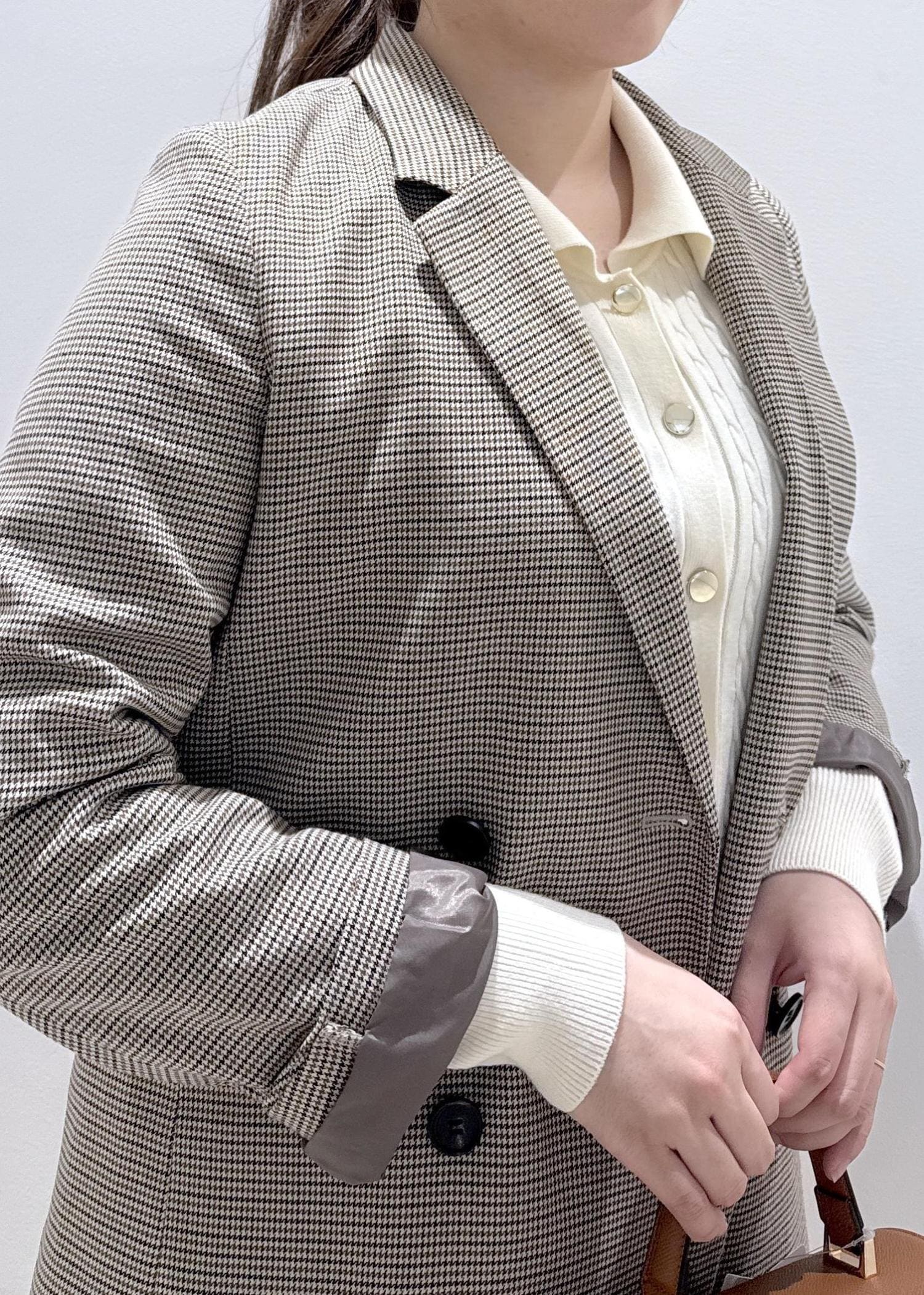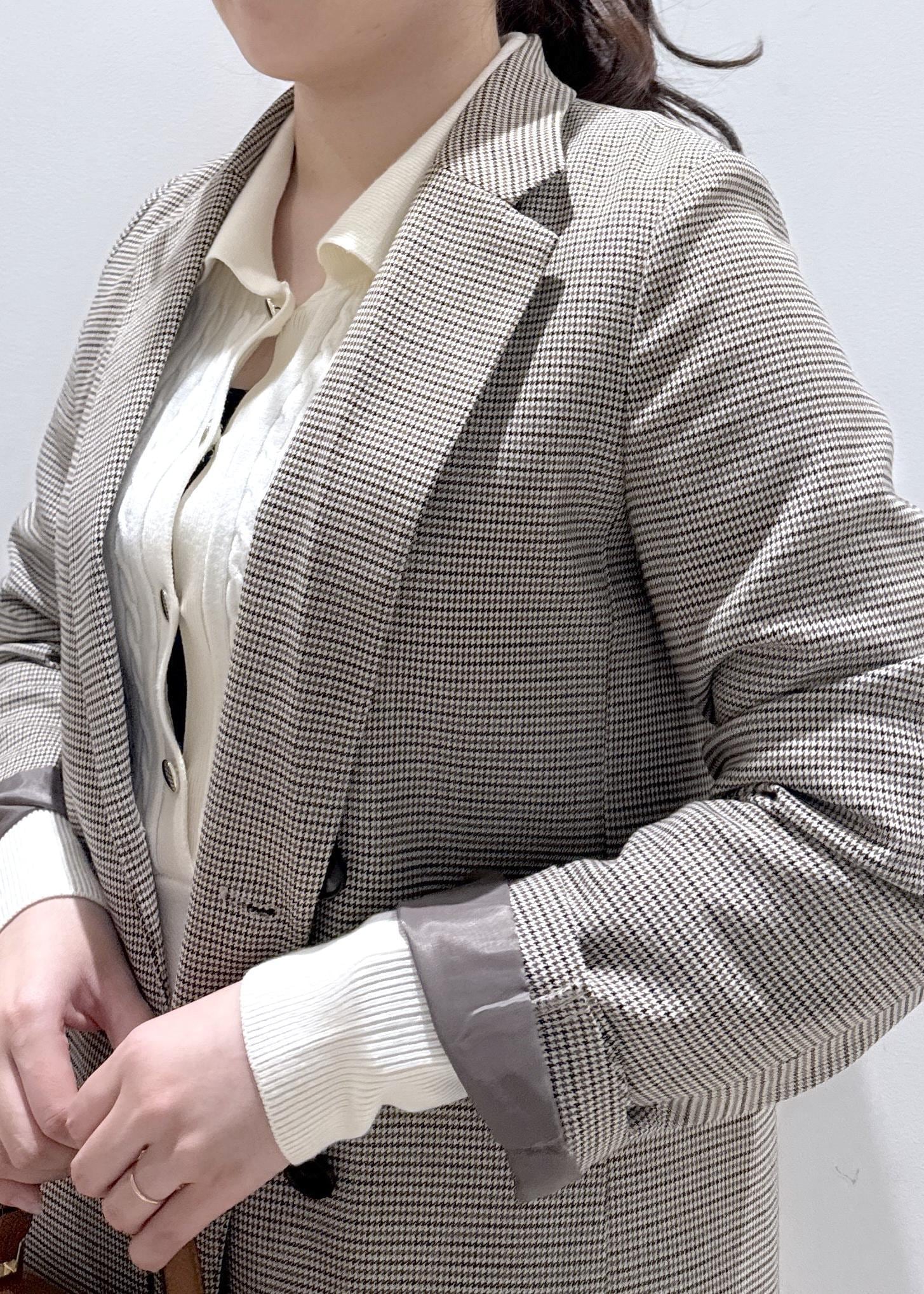 チェック柄のジャケットはシルエットもオーバーサイズなので、隠したいお尻周りもカバーできるのでオススメです。