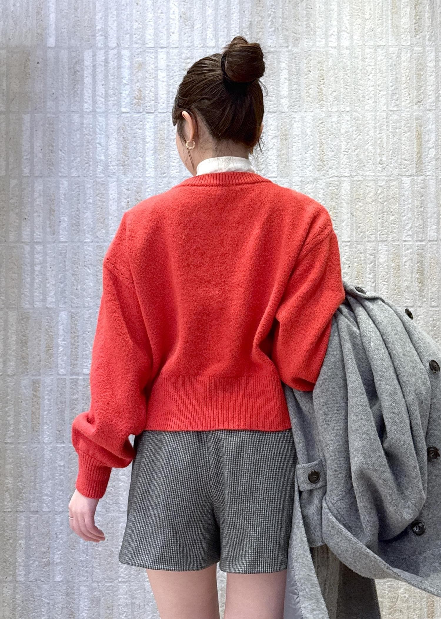 程良い厚めのニットカーディガンなので、暖かみもきちんとあり、インナーにシアーのシャツなどレイヤードコーデをしていただきやすいです! -