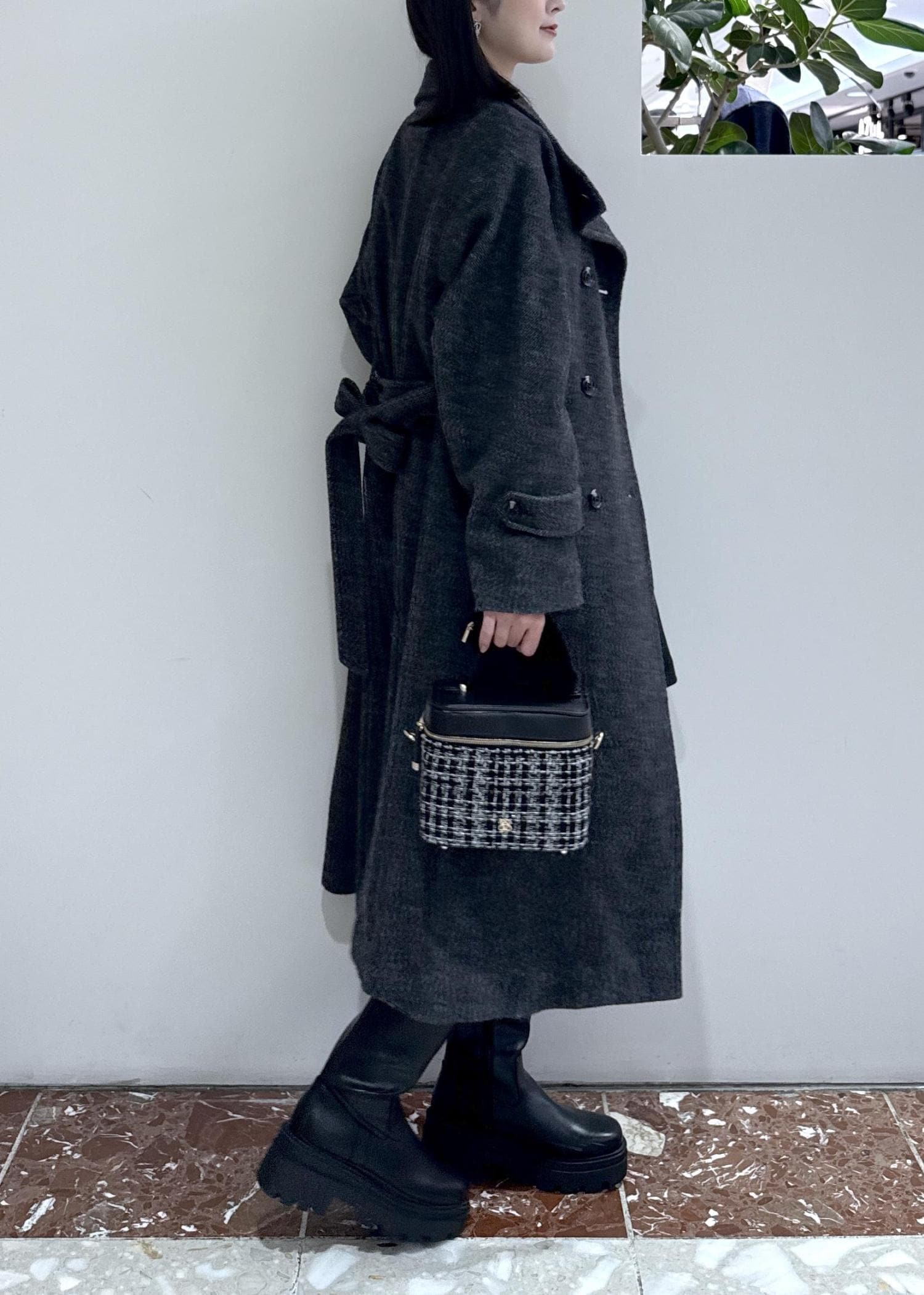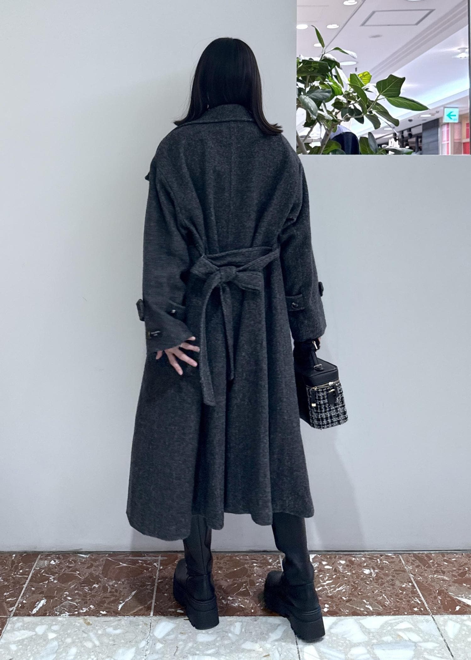 VIS尾州シャギースタンドカラーロングコート/静電気防止・WEB限定PS・TMサイズチャコール / M¥21,890レビュー164cmでMサイズ着用。