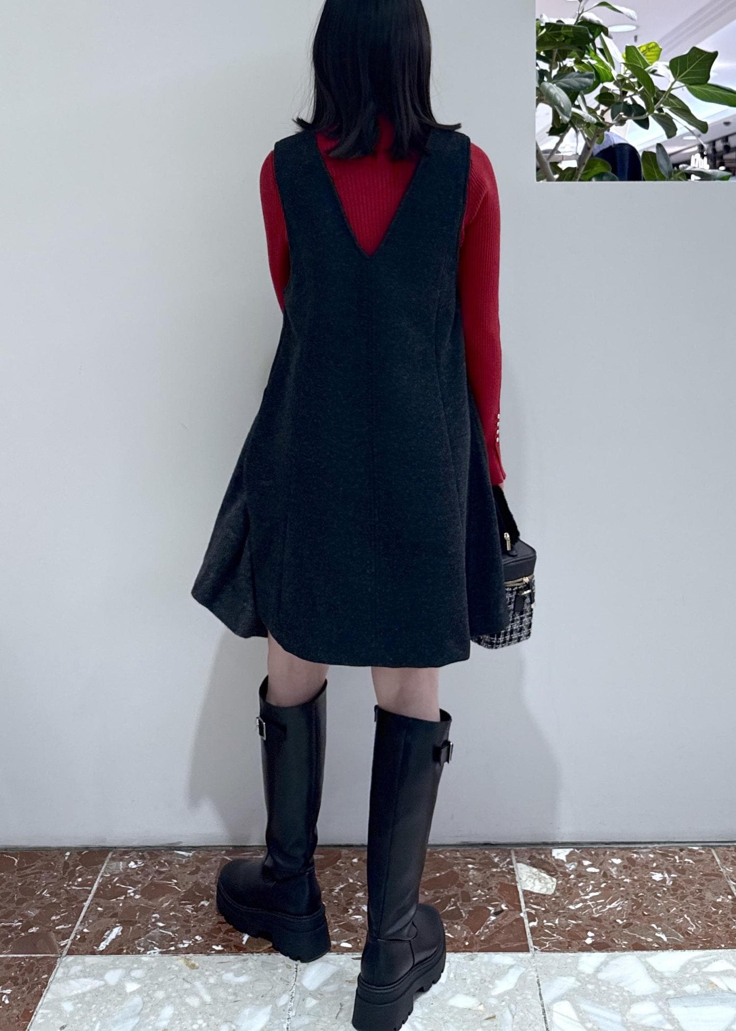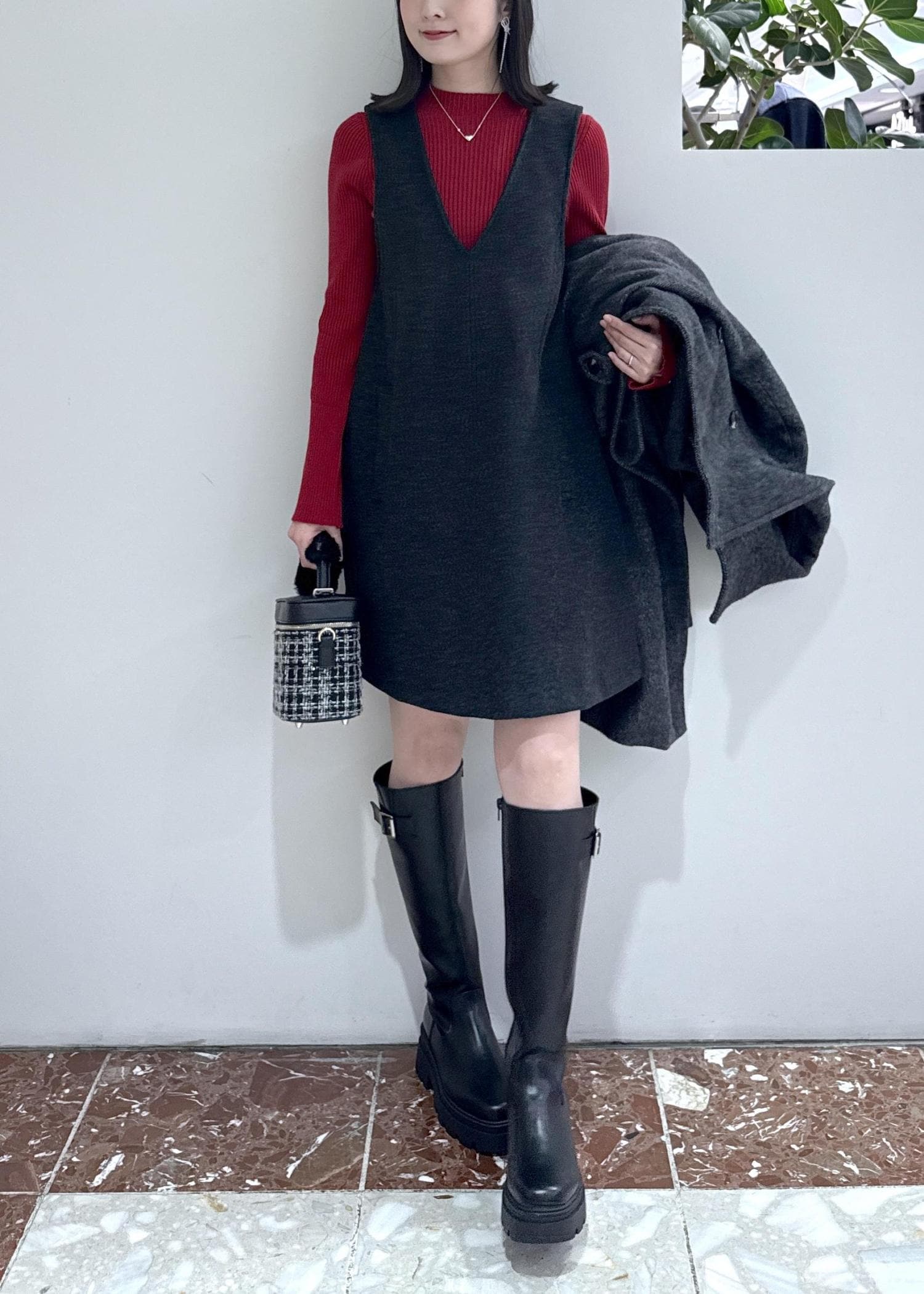 VISシャギーVネックミニ丈ジャンパースカートチャコール / F¥7,909レビュー164cmで膝上の丈感。