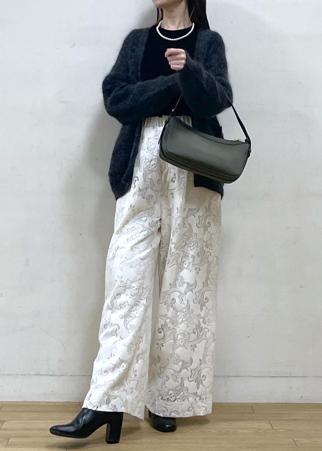 今回はフェミニンさのあるワイドパンツをチョイスしてホリデースタイルのご提案です。