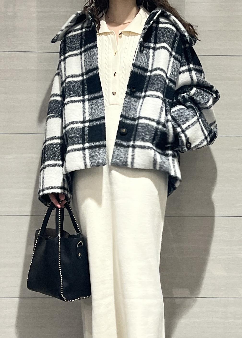 もちっと柔らかい触り心地で着心地抜群。足首くらいの丈感で、低身長でも重たく見えません。ポロ襟とケーブル編みが上品で、1枚でかわいく決まるニットワンピです✨