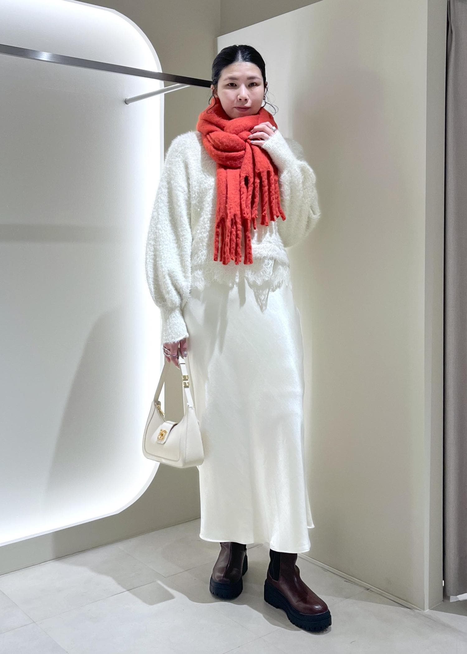 VISねじりショートトップス付きロングニットワンピース/イージーケアチャコール / F¥9,999レビュー163cmでリブワンピース部分は足首が完全に見える着丈です。