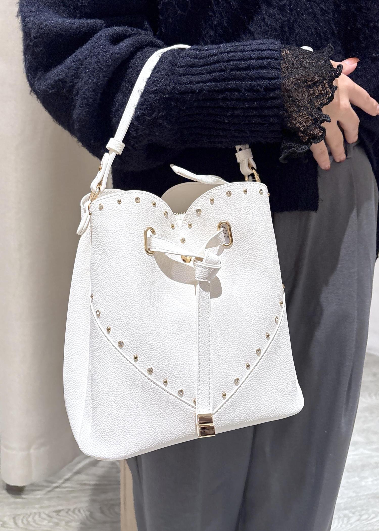 NEW!VISラインストーン&スタッズハートカットバッグオフホワイト / F¥7,909レビュー500mlのペットボトルが縦に入るサイズ感です。