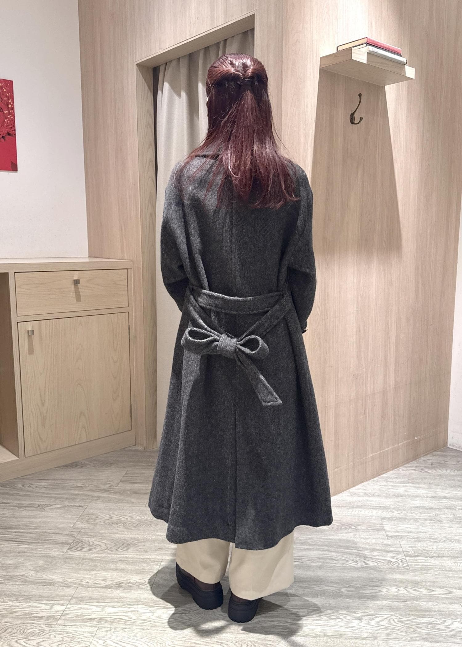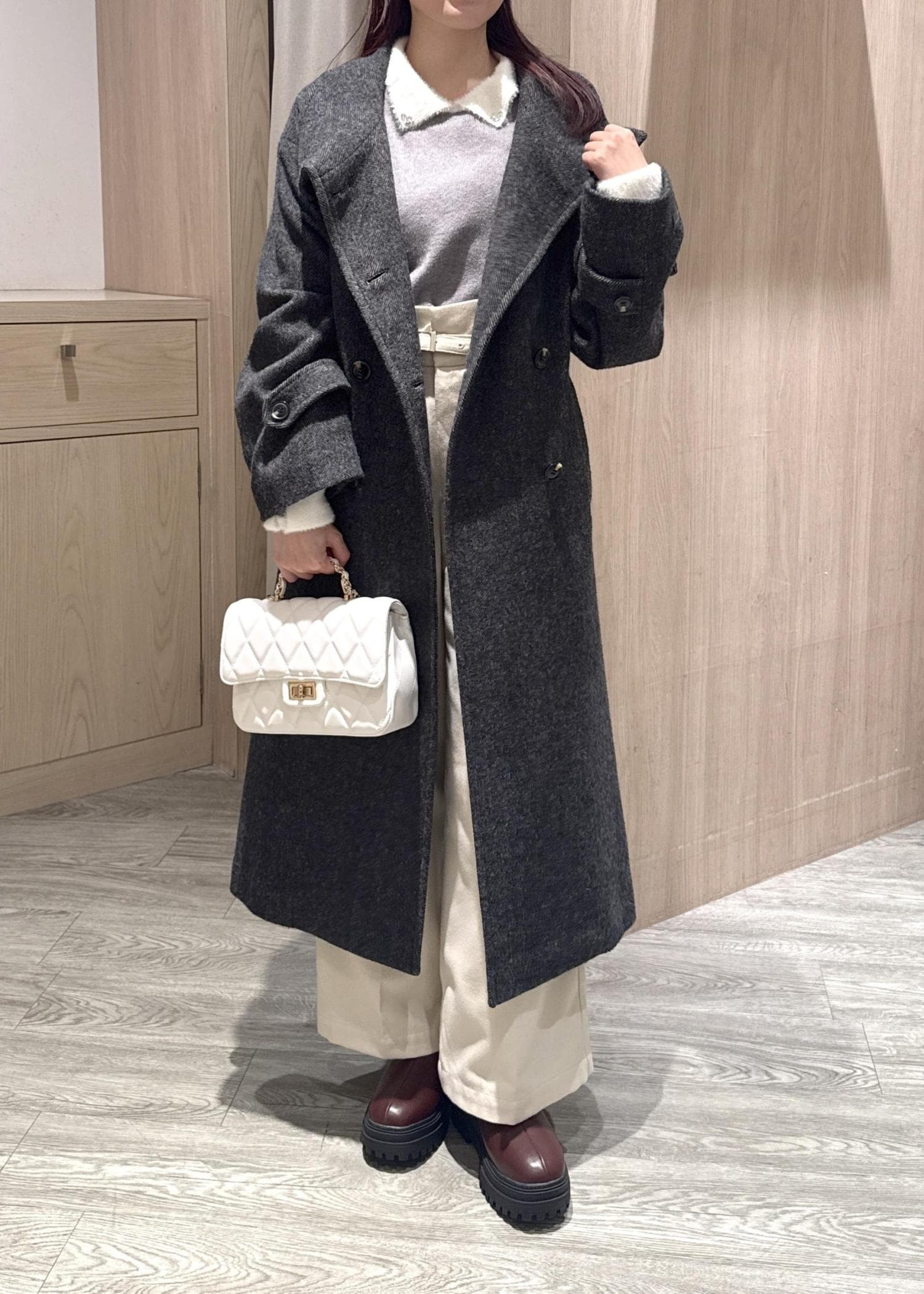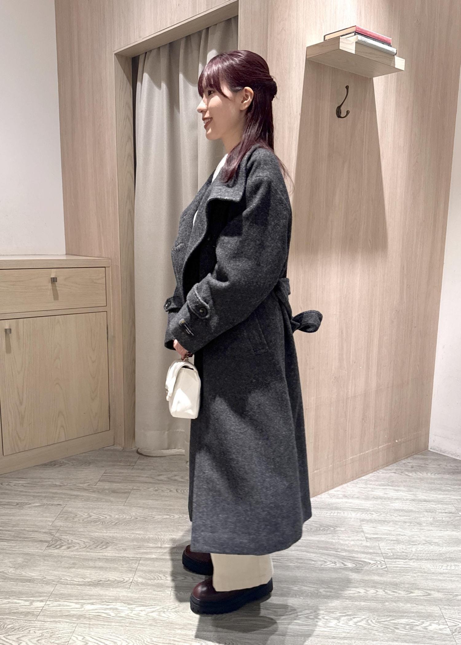 すねくらいの丈感でした。びっくりするくらい軽いです!コートはコーディネートがワンパターンになりがちですが、このコートは襟を折ることができたり、首を隠す着方もできるので、マンネリ化しないところもオススメです✨ -