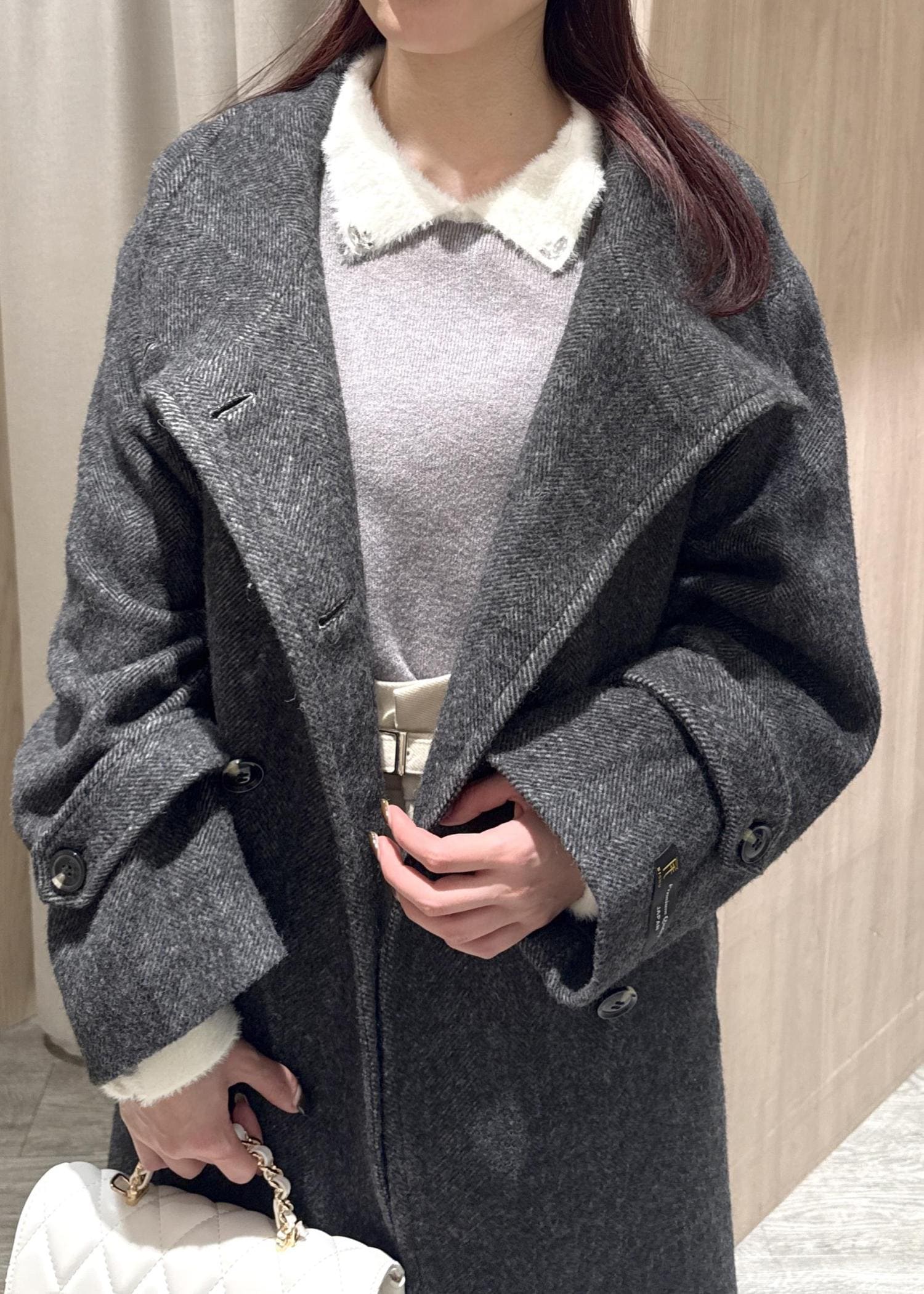 VIS尾州シャギースタンドカラーロングコート/静電気防止・WEB限定PS・TMサイズチャコール / S¥21,890レビュー身長157cm / Sサイズ着用