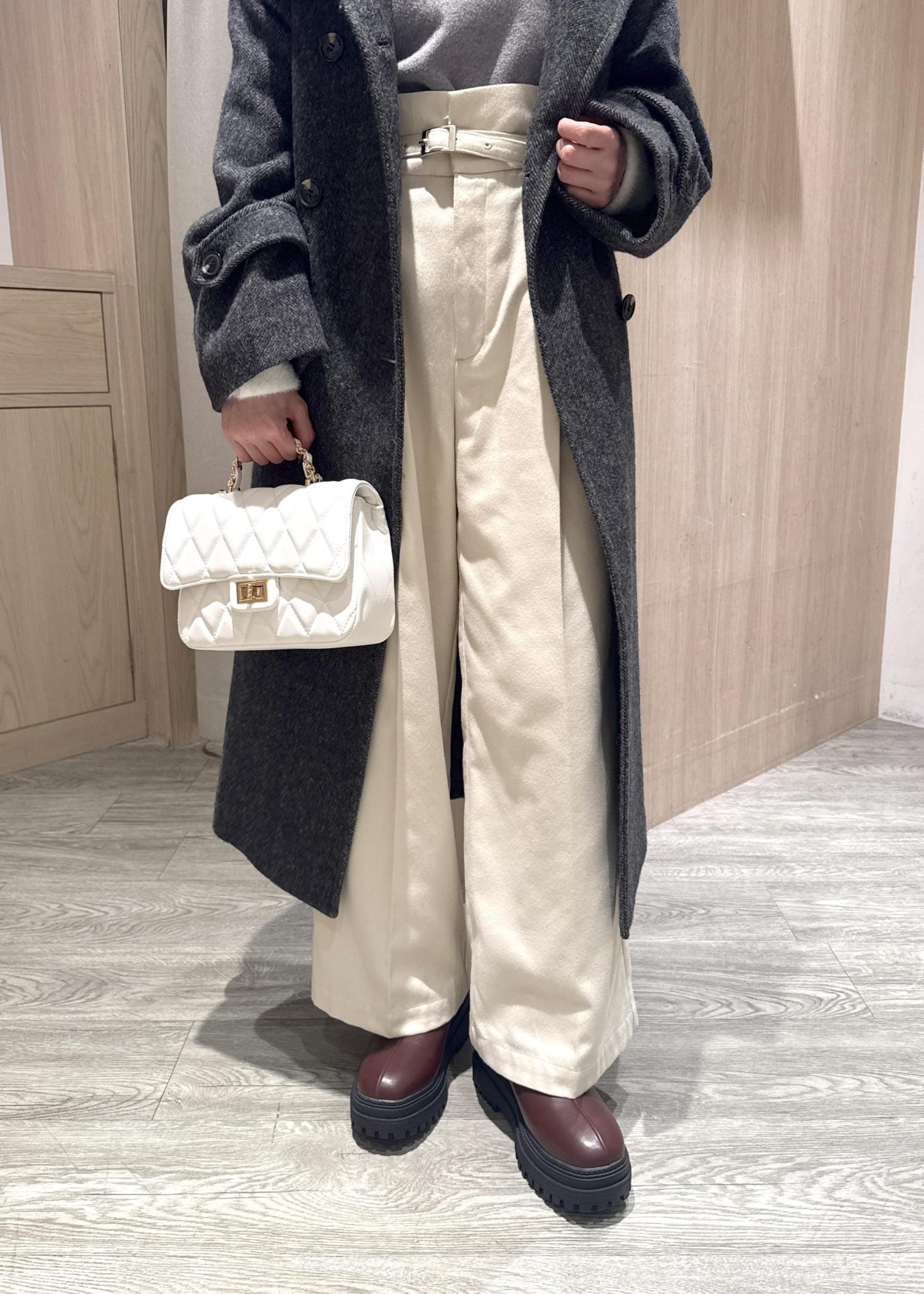 VIS起毛ウールライク版ベルトディテールタックワイドパンツキナリ / S¥6,589レビュー身長157cm / Sサイズ着用