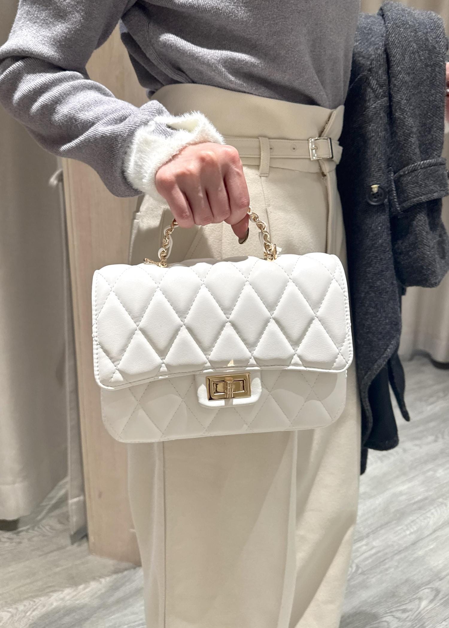NEW!VISチェーンハンドルキルティングショルダーバッグ/2WAY・一部WEB限定カラーオフホワイト / F¥6,919レビューキルティング素材が季節感や上品さを演出してくれます✨お呼ばれシーンや普段使い、どちらのコーディネートにも合わせることが可能です!ショルダー紐には合皮部分も付いているため、肩の食い込みも心配なく使用いただけます!
