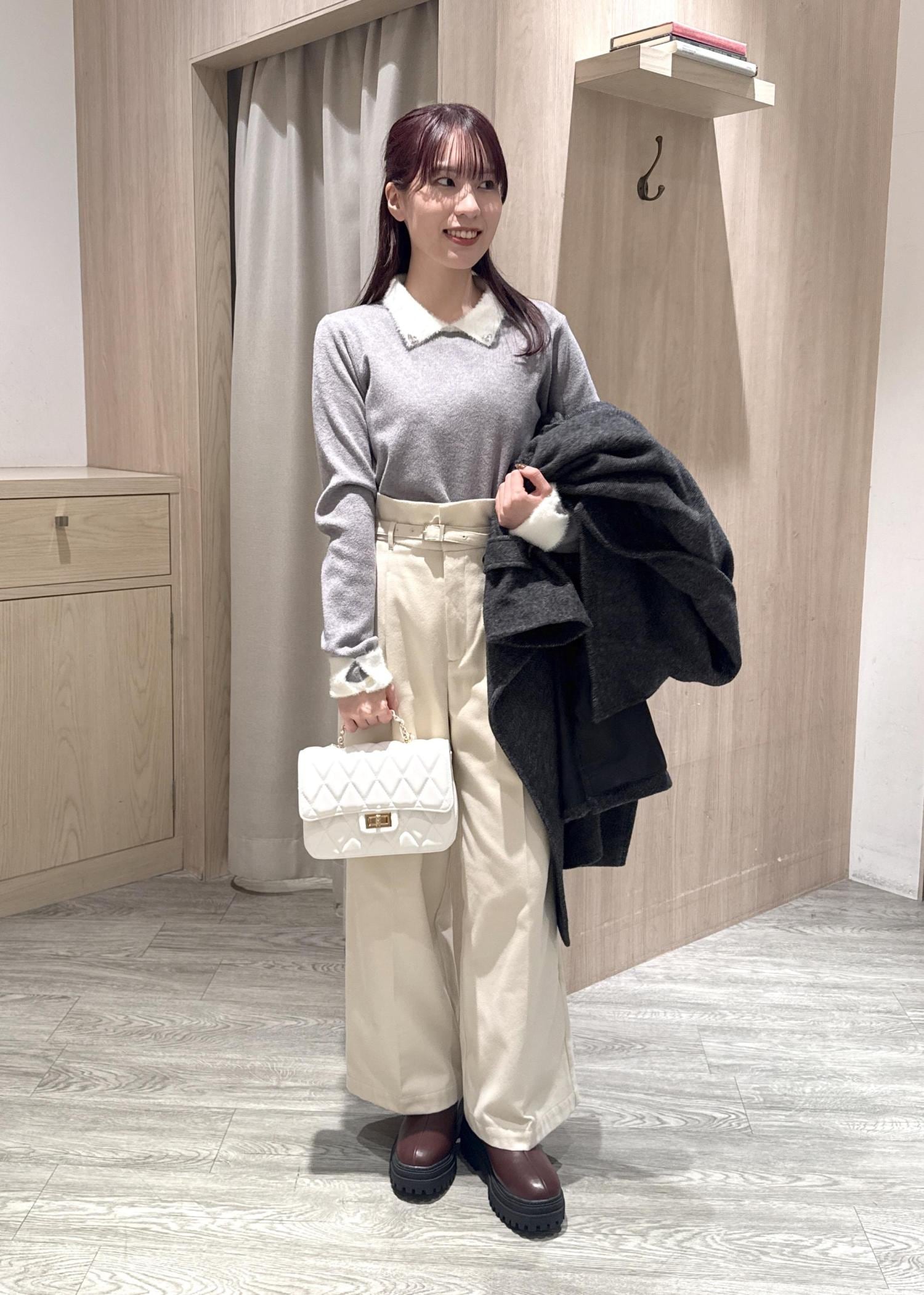 VISビジュー付きシャギーカラーニットトップスライトグレー / F¥5,489