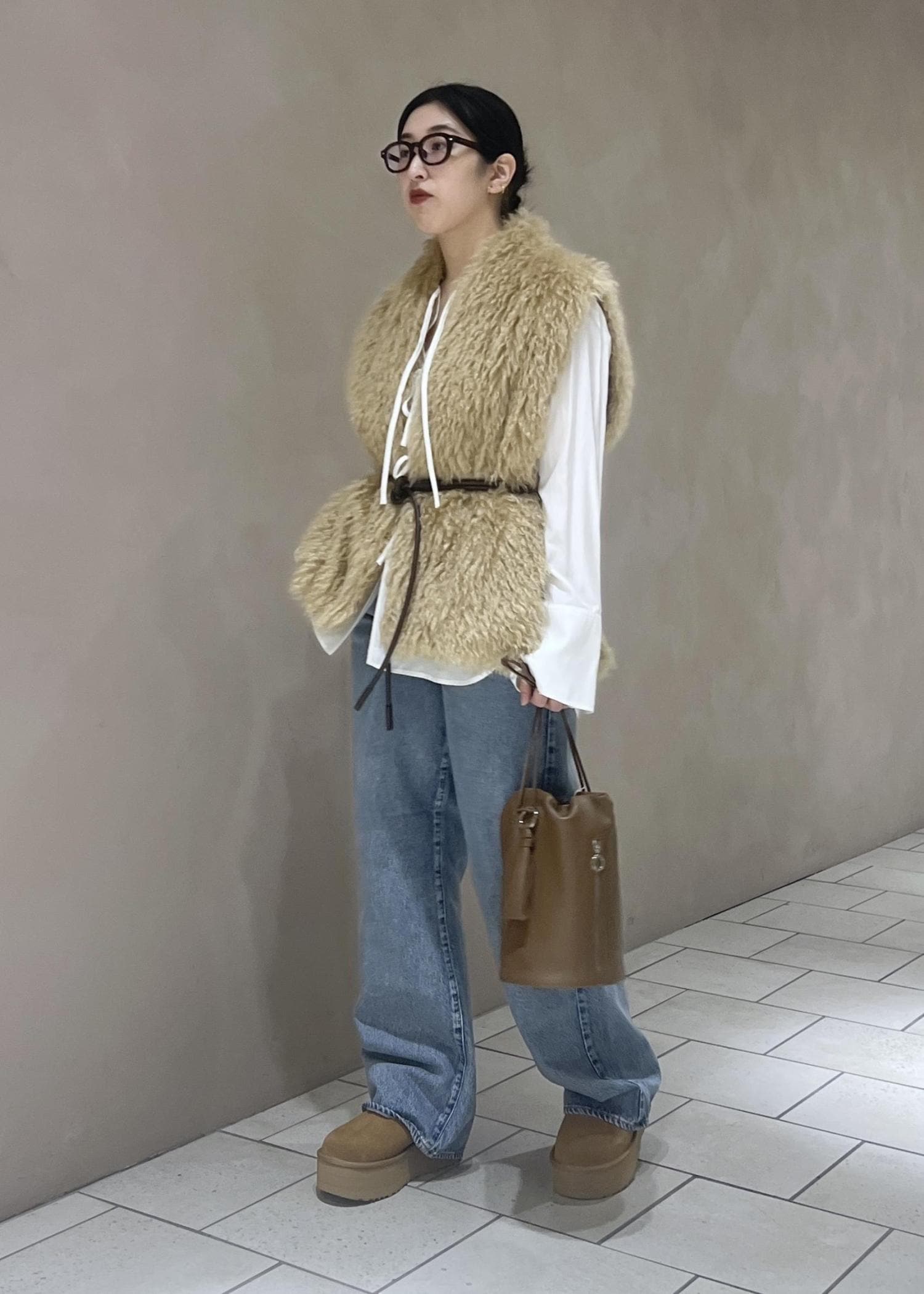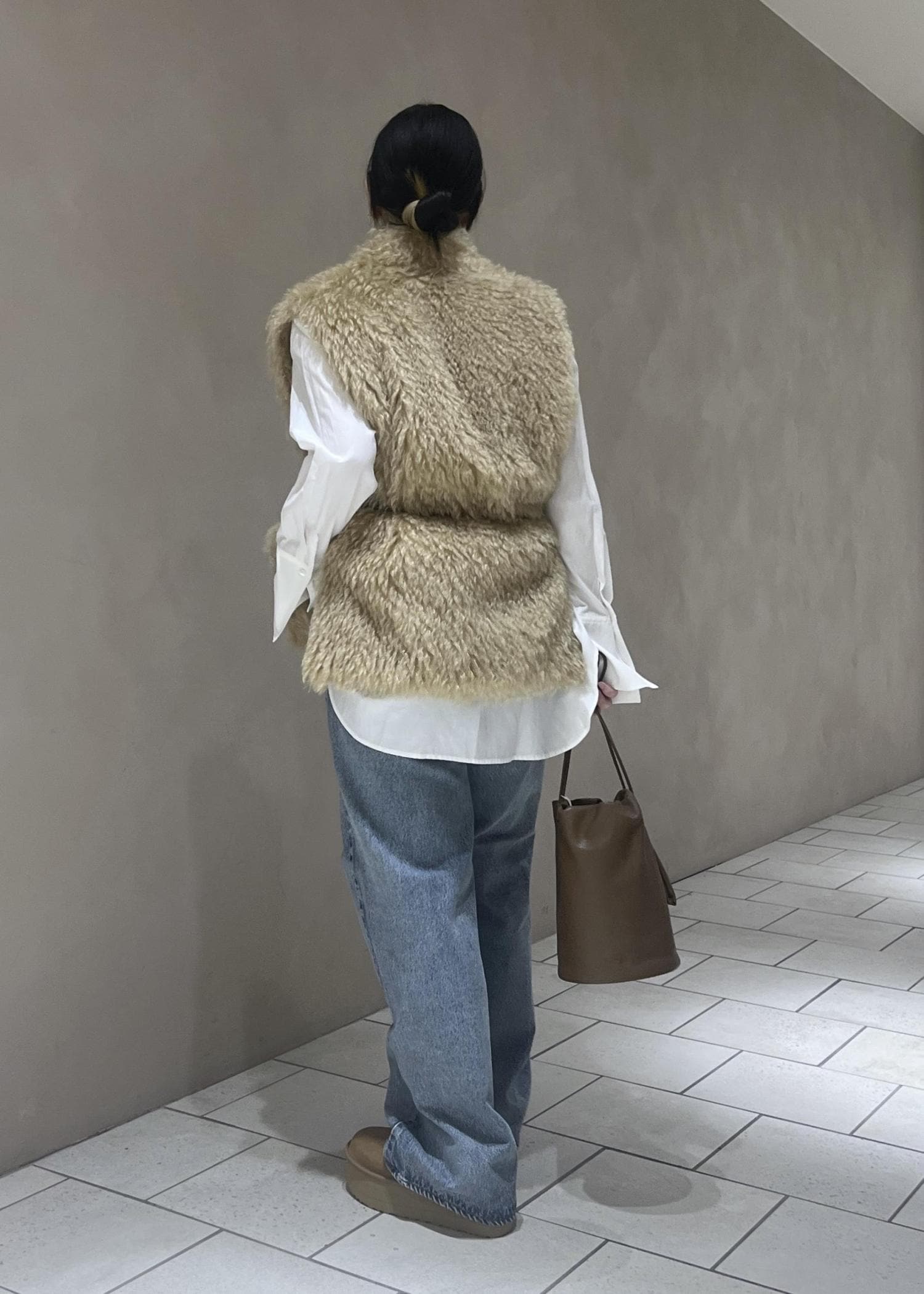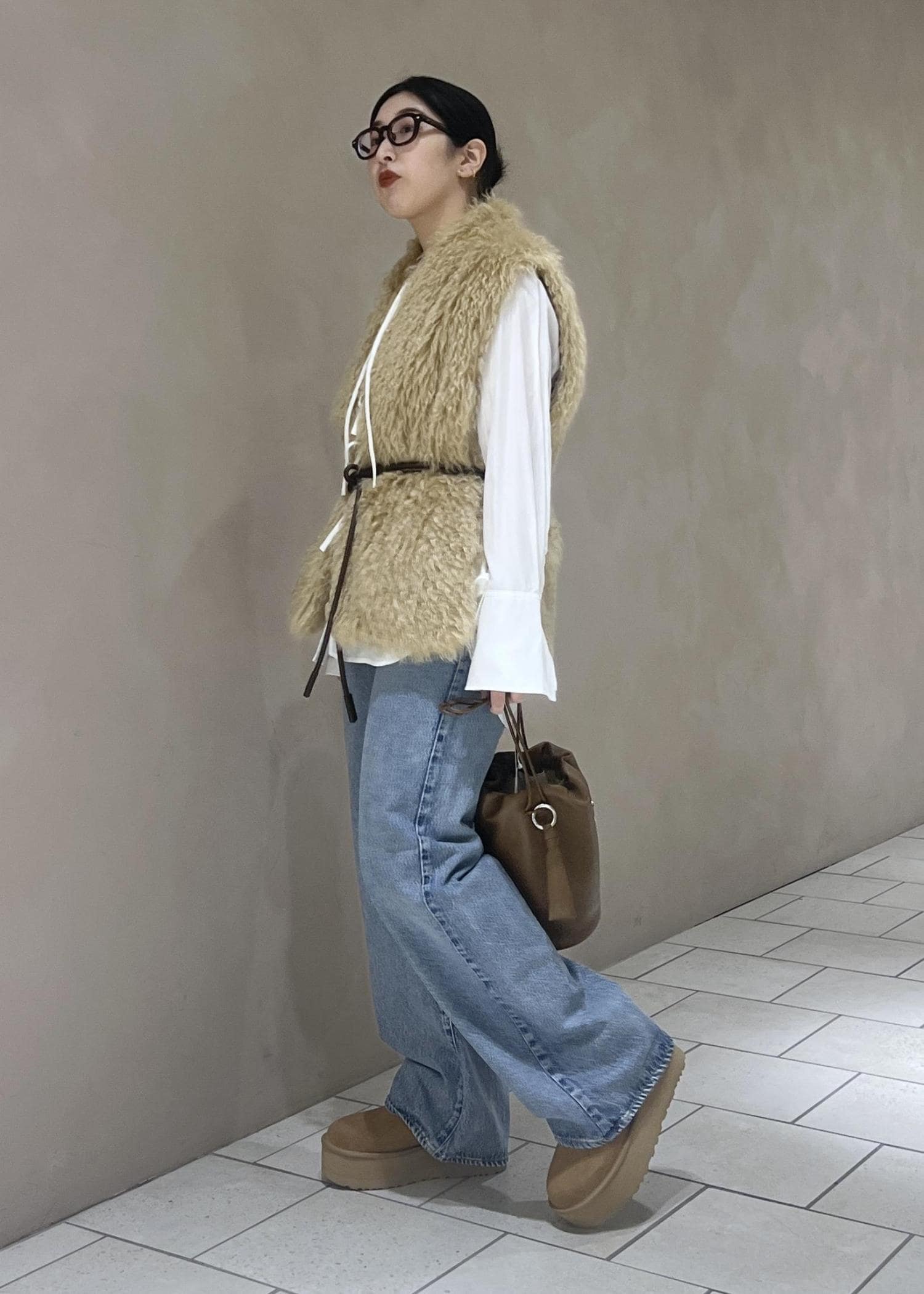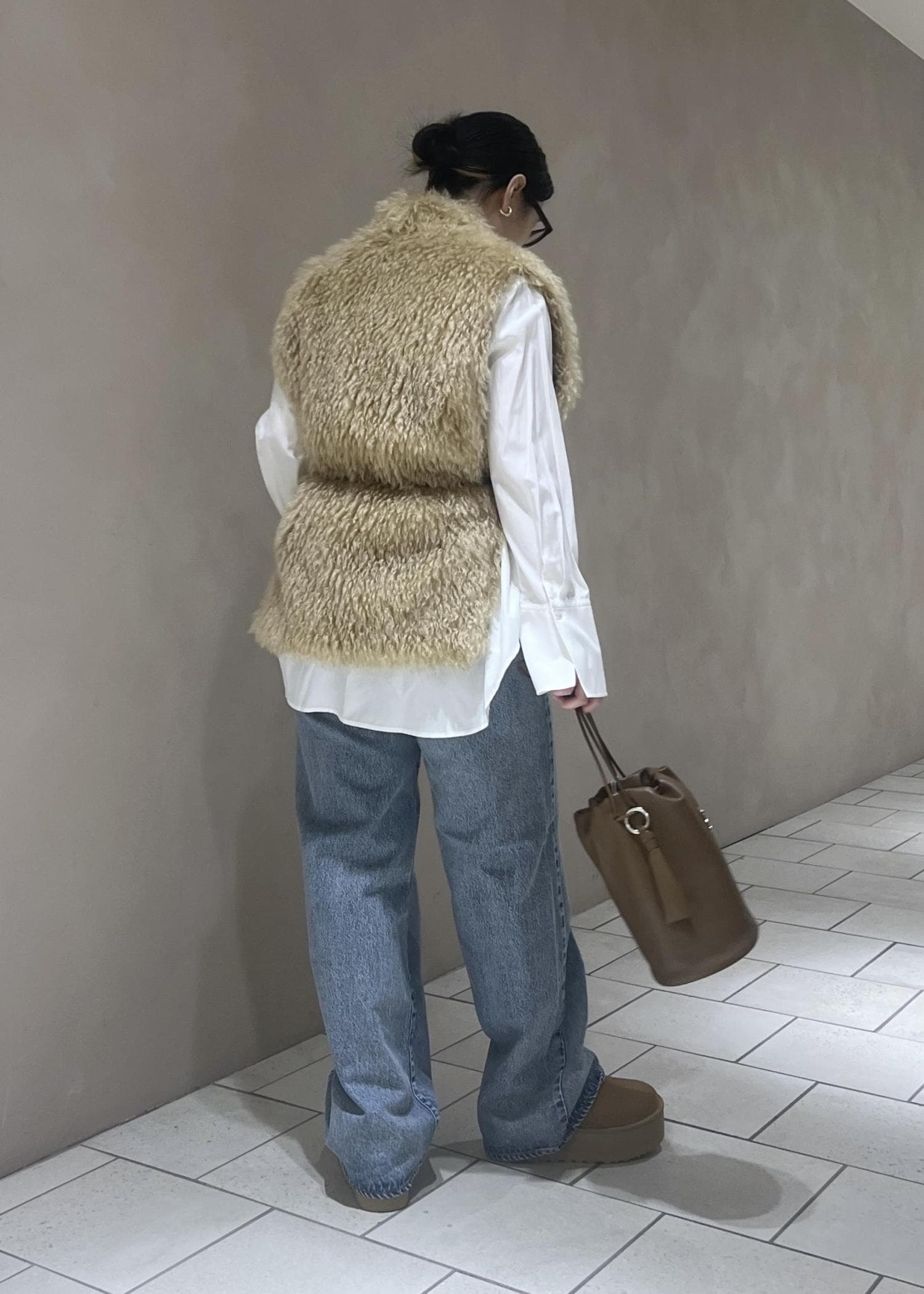 デニムジャケットなどの上から着ても可愛いです!お尻がすっぽり隠れる丈感でファーな感じも軽くてあったかく着ていただけます♡ -