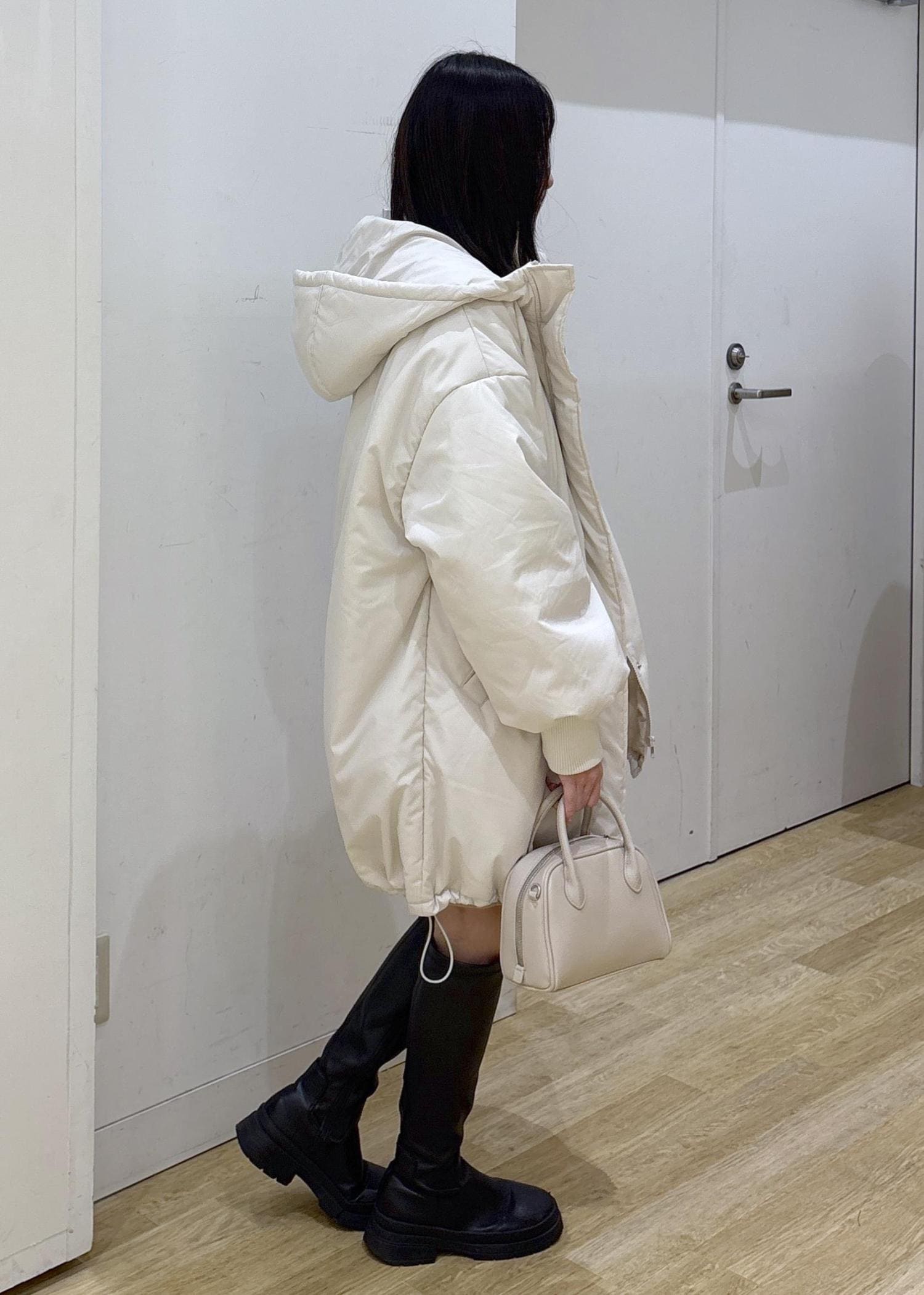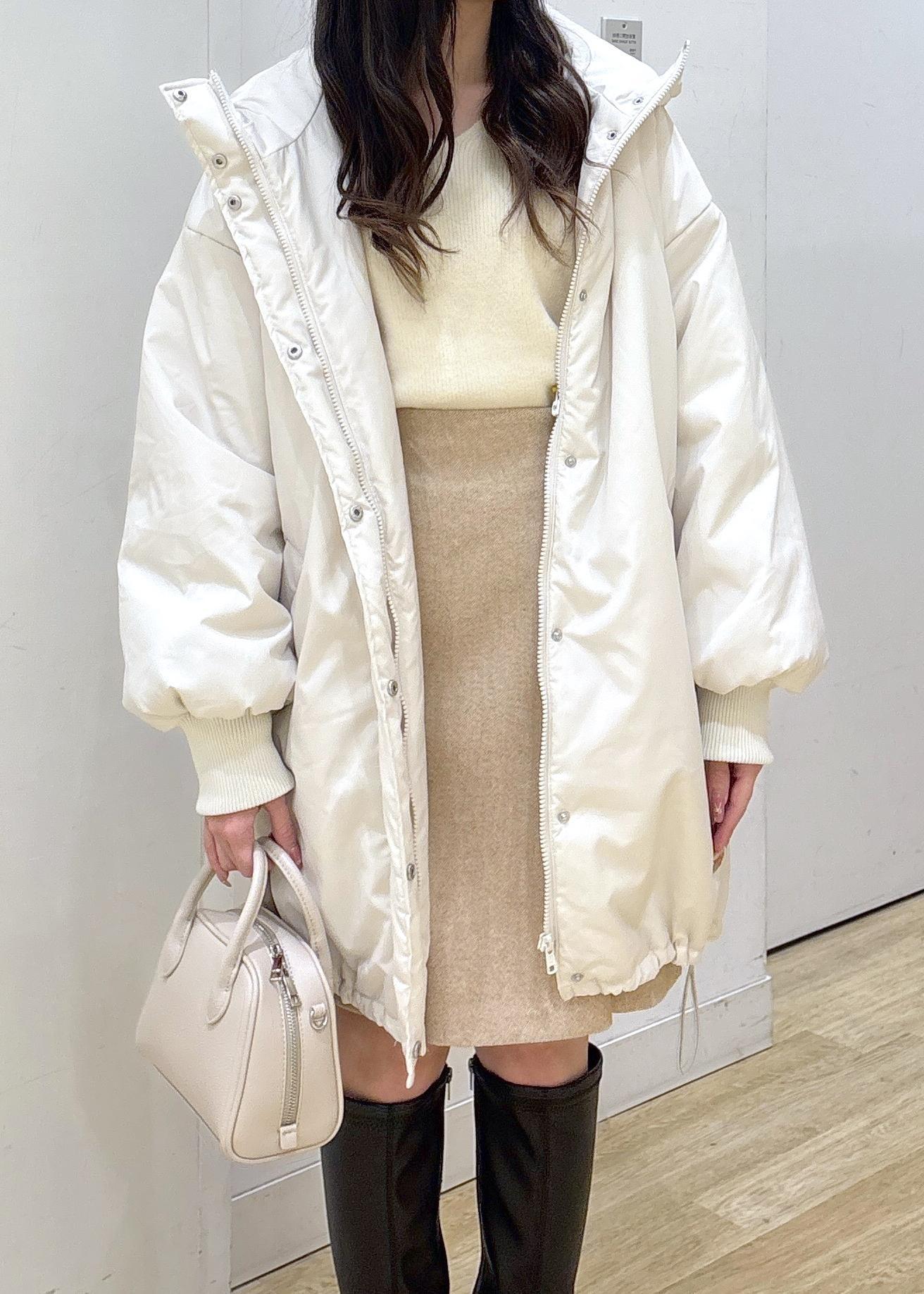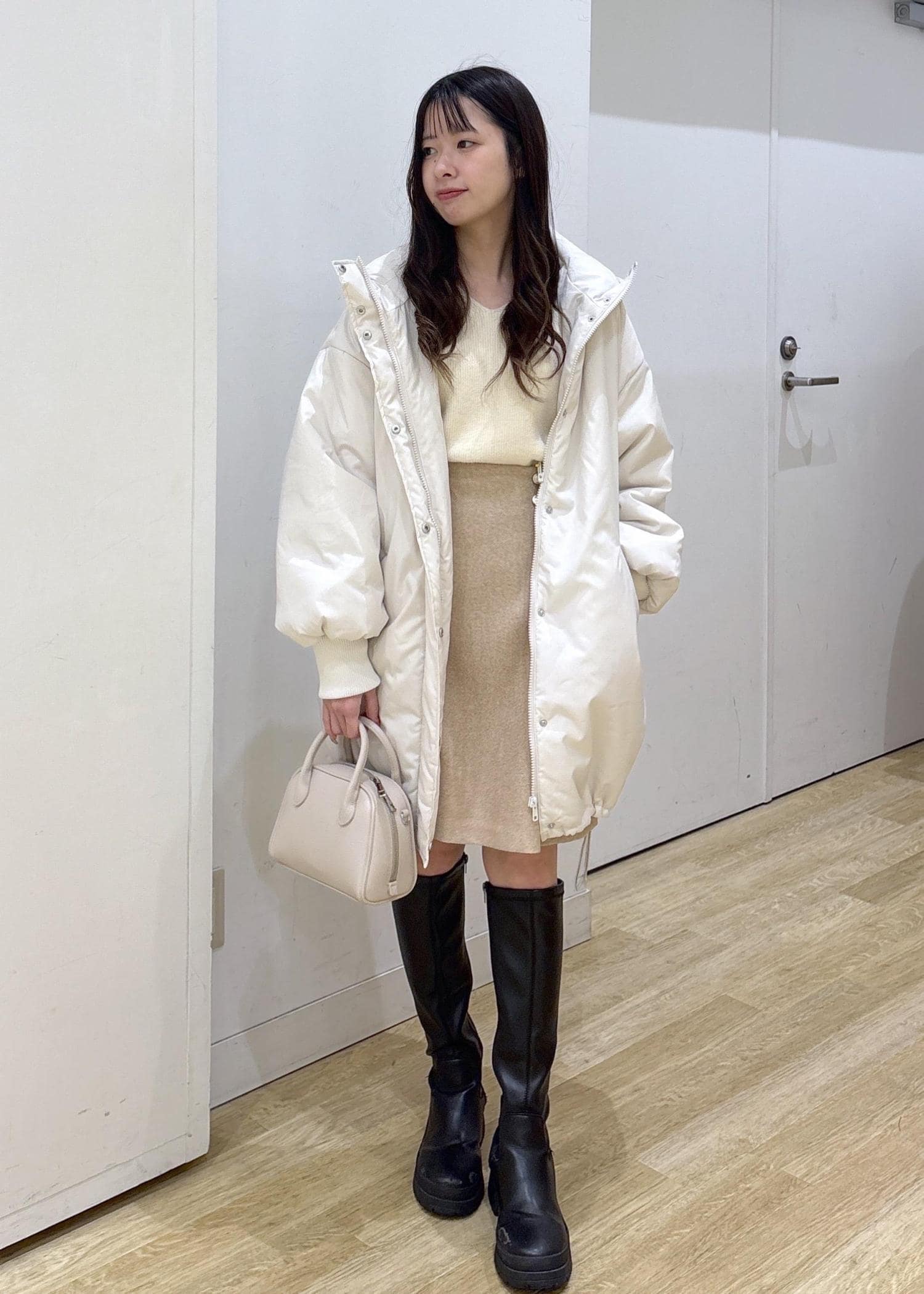 ダウンは着丈が長いので、ミニ丈や細身のパンツなどと合わせるとバランスが良いです◎