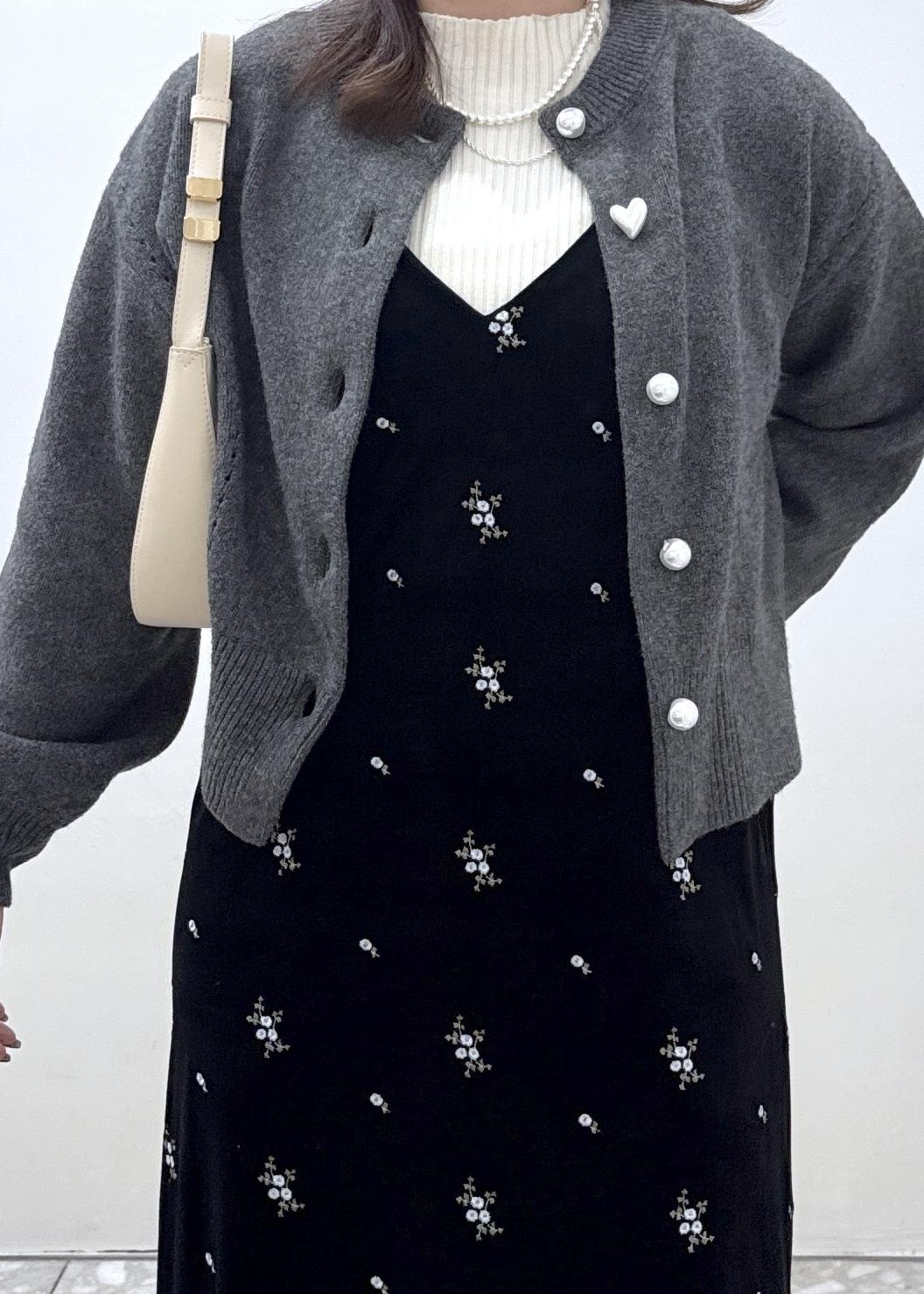 VISハートアソートパール釦ラメミックスカーディガン/イージーケア・一部WEB限定カラーチャコール / F¥5,489レビュー毎年人気なカーディガン!