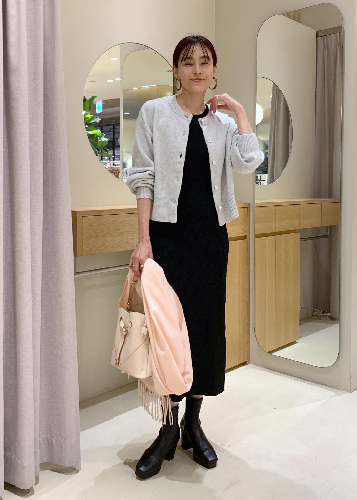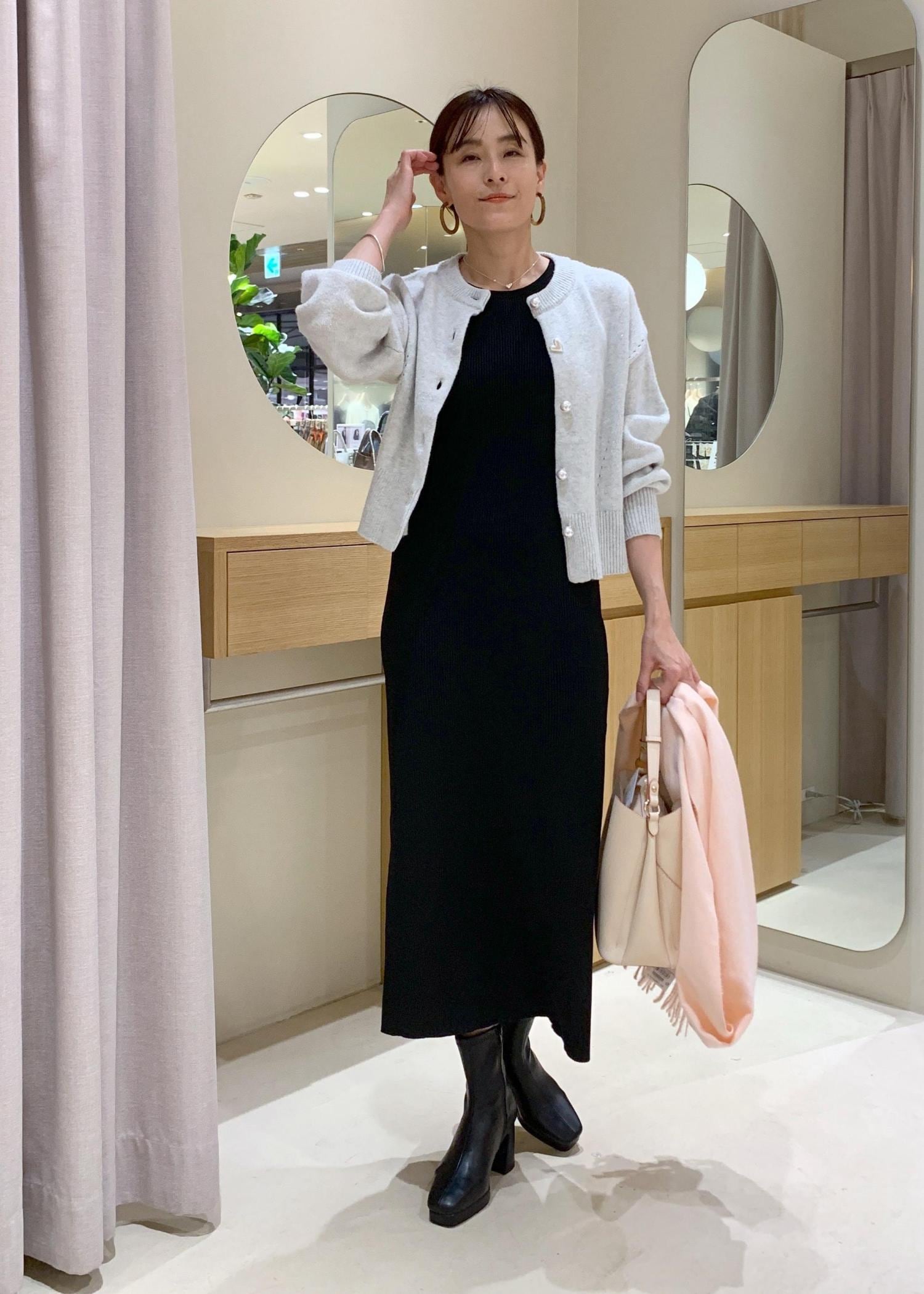 リブワンピースはノースリーブなので、上からカーディガンやざっくりとしたニットを着るのもオススメ♪