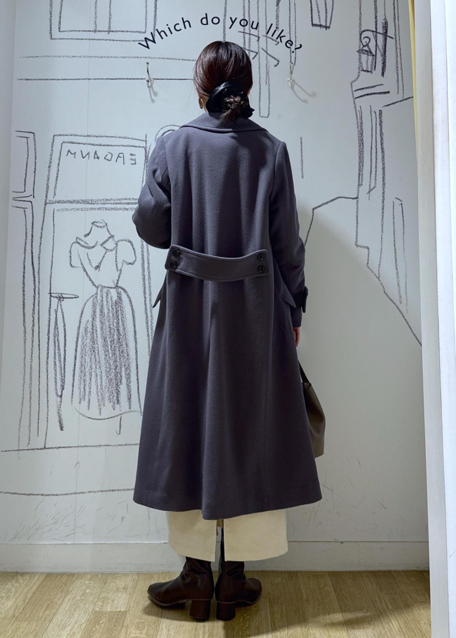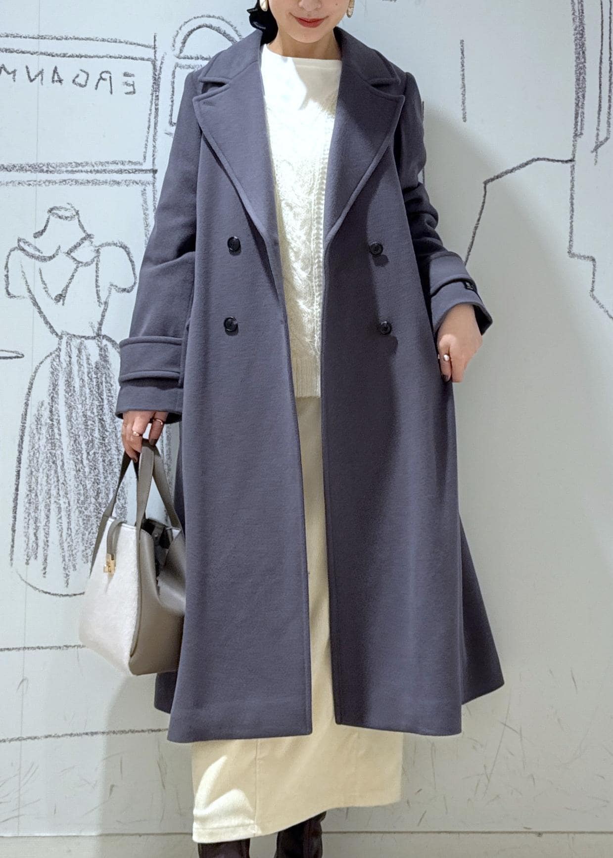 ROPÉ PICNICJAPAN FABRIC ダブルチェスターコート/一部WEB限定カラーグレー / F¥19,800レビューロングコートなのにその軽さにビックリします。後ろにベルトがついているので自然とウエストがシェイプされ綺麗なラインを作ってくれます。余裕のある身幅なのでジャケットの上からも着られます。
