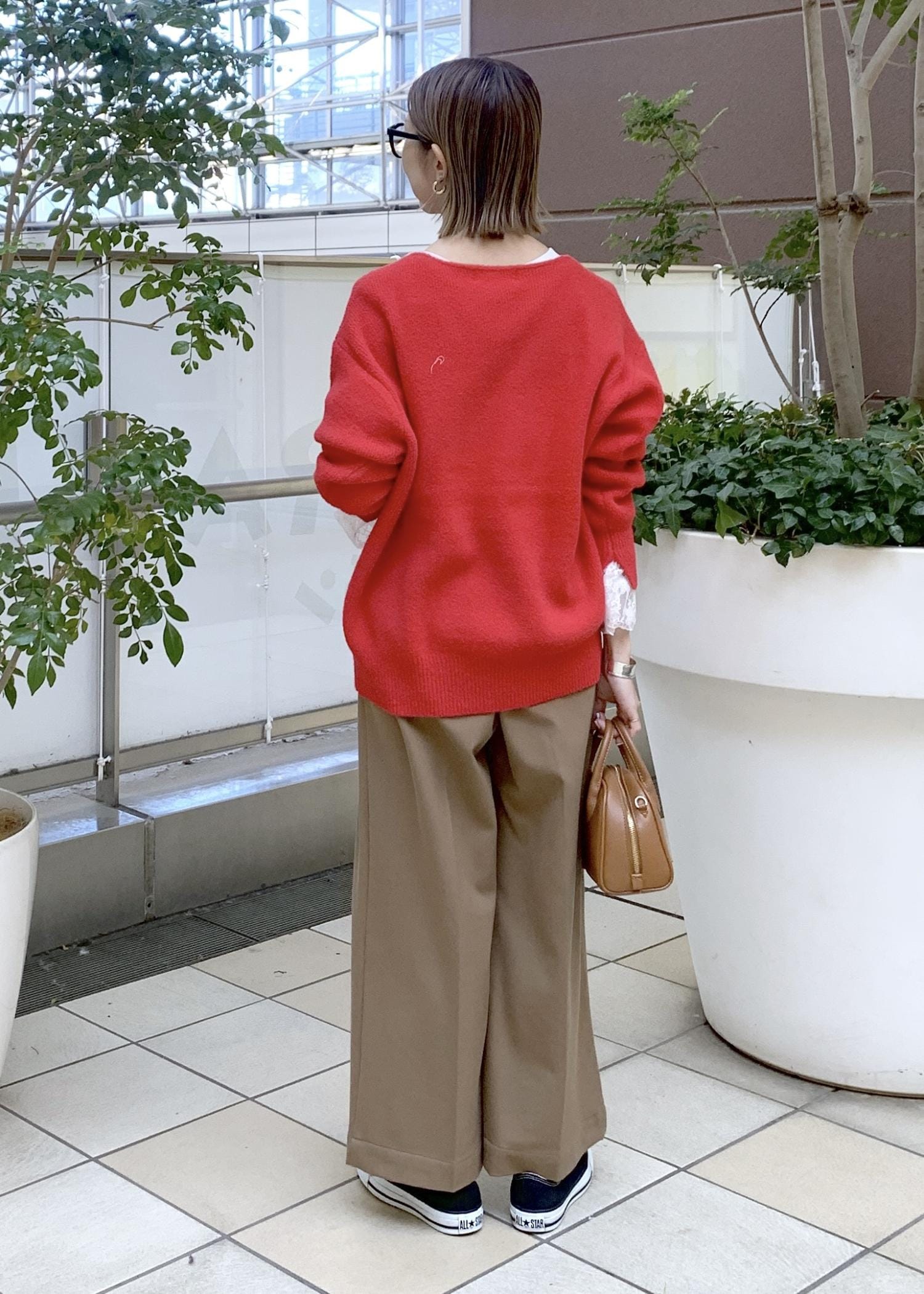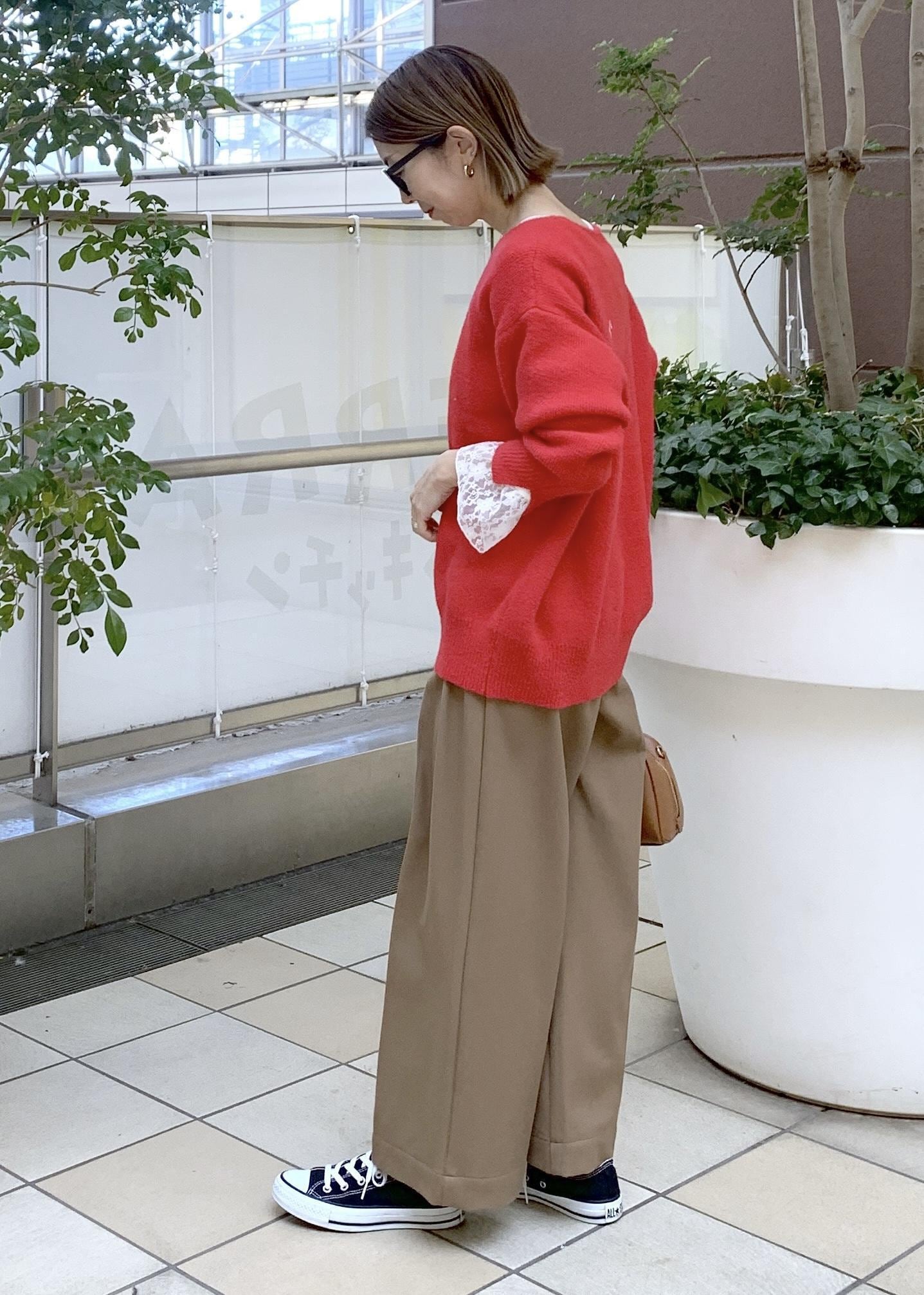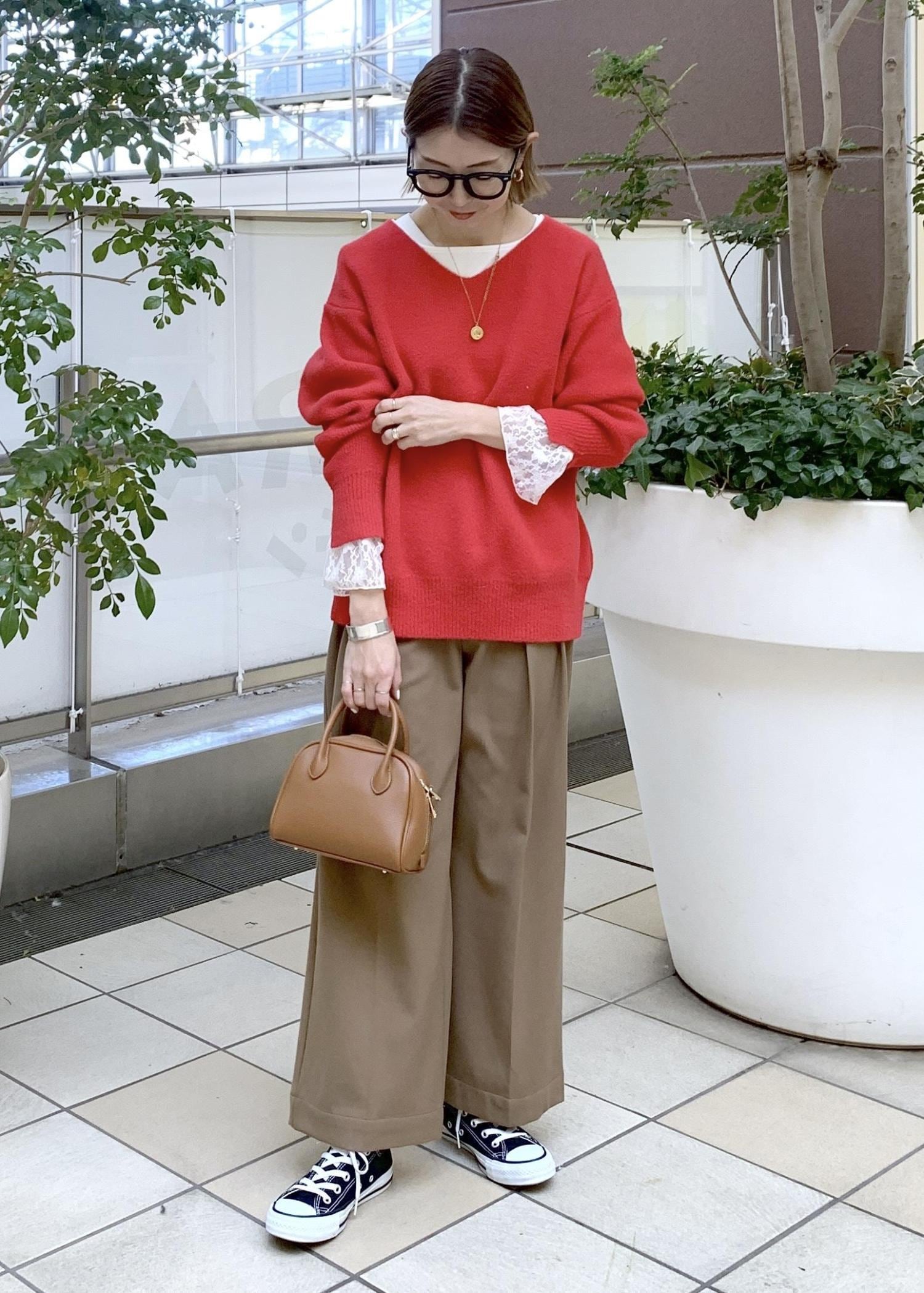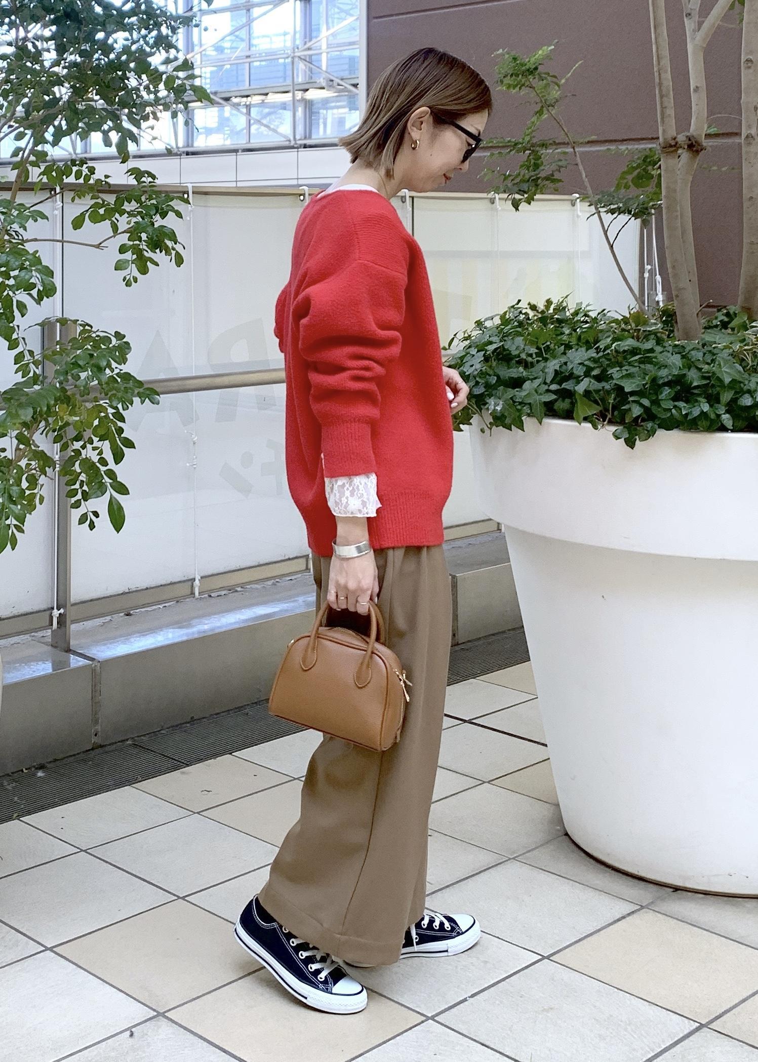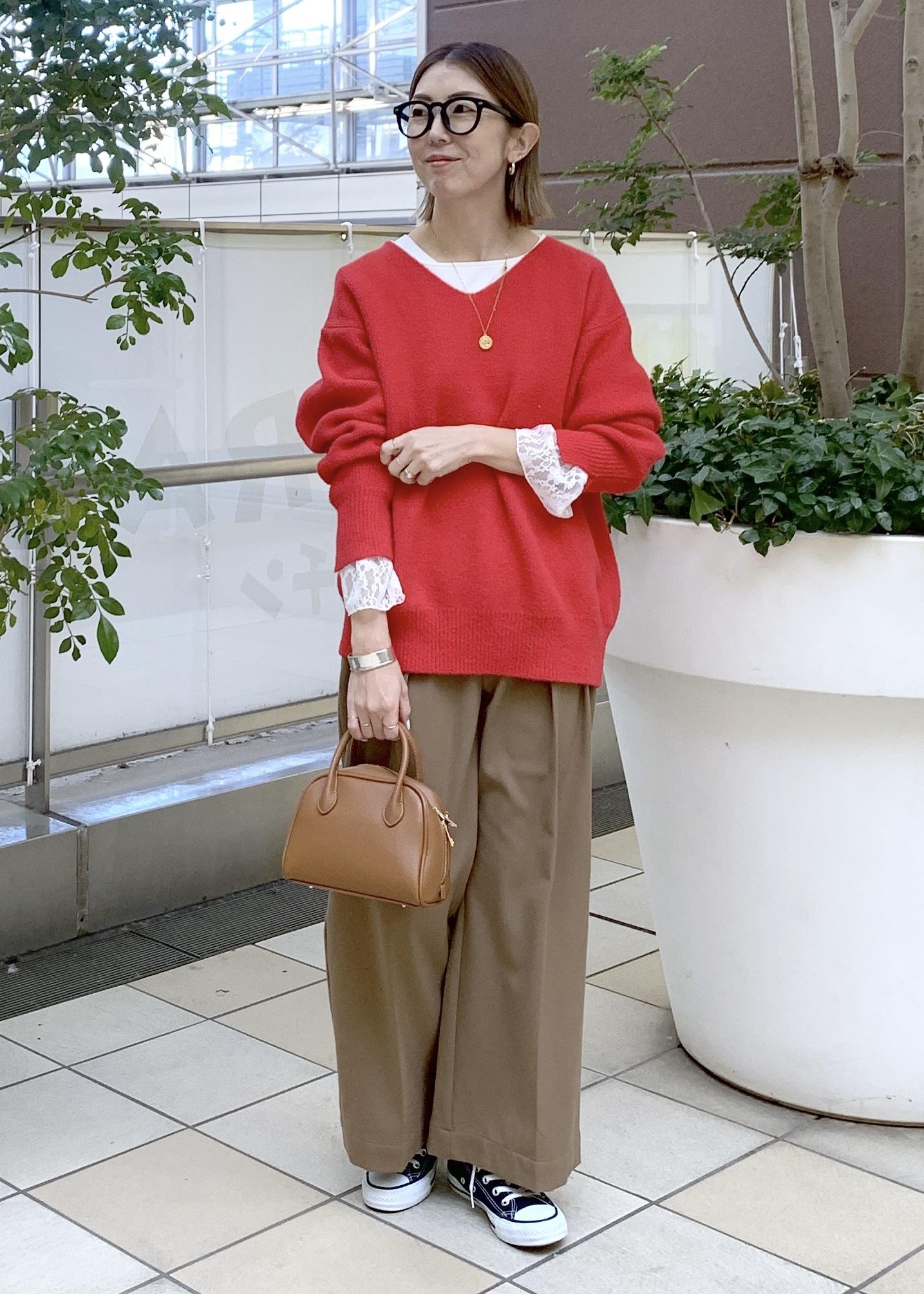 赤ニットスタイリング