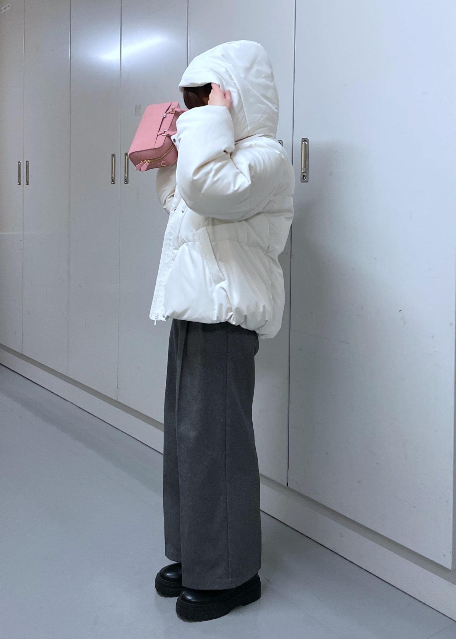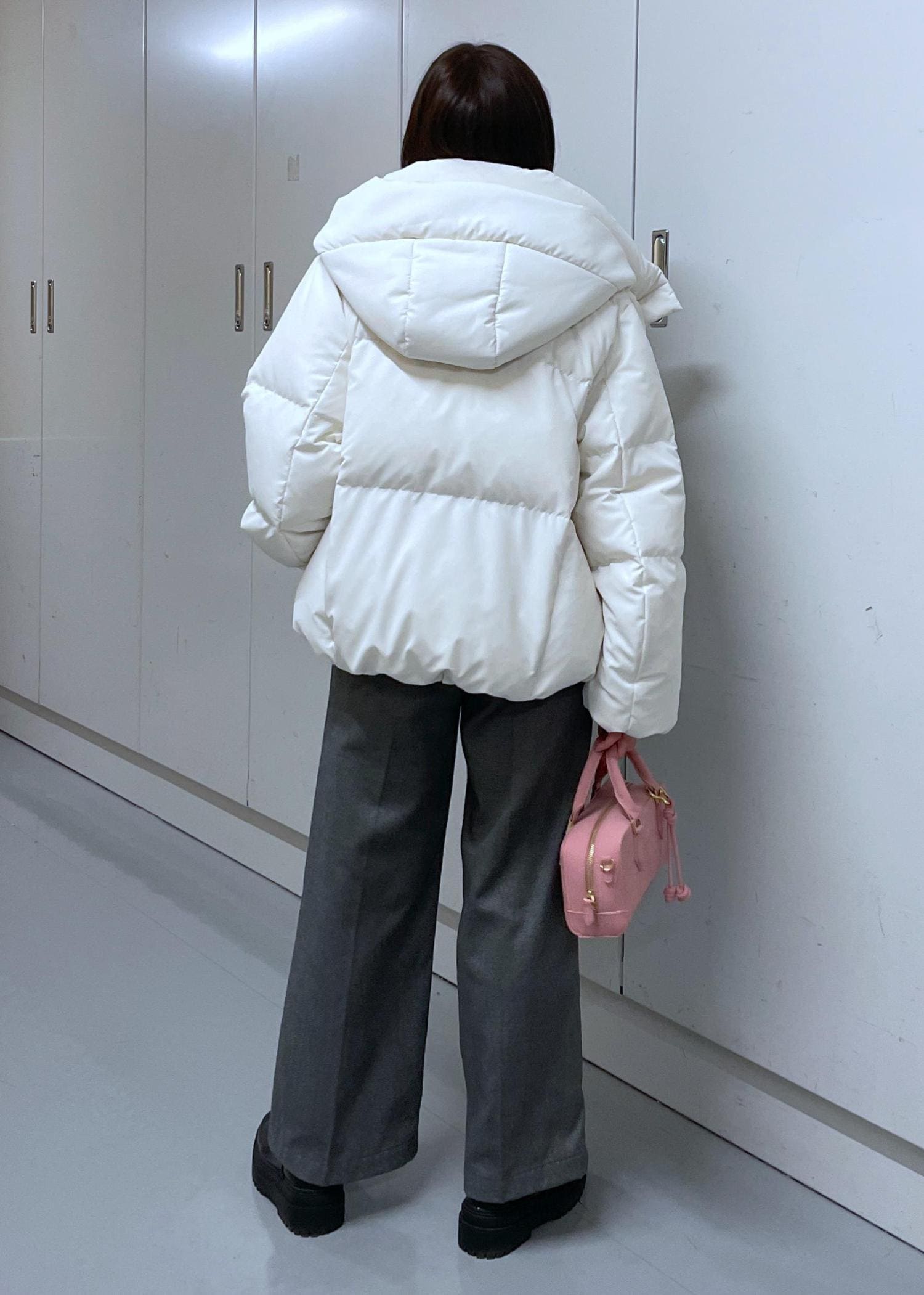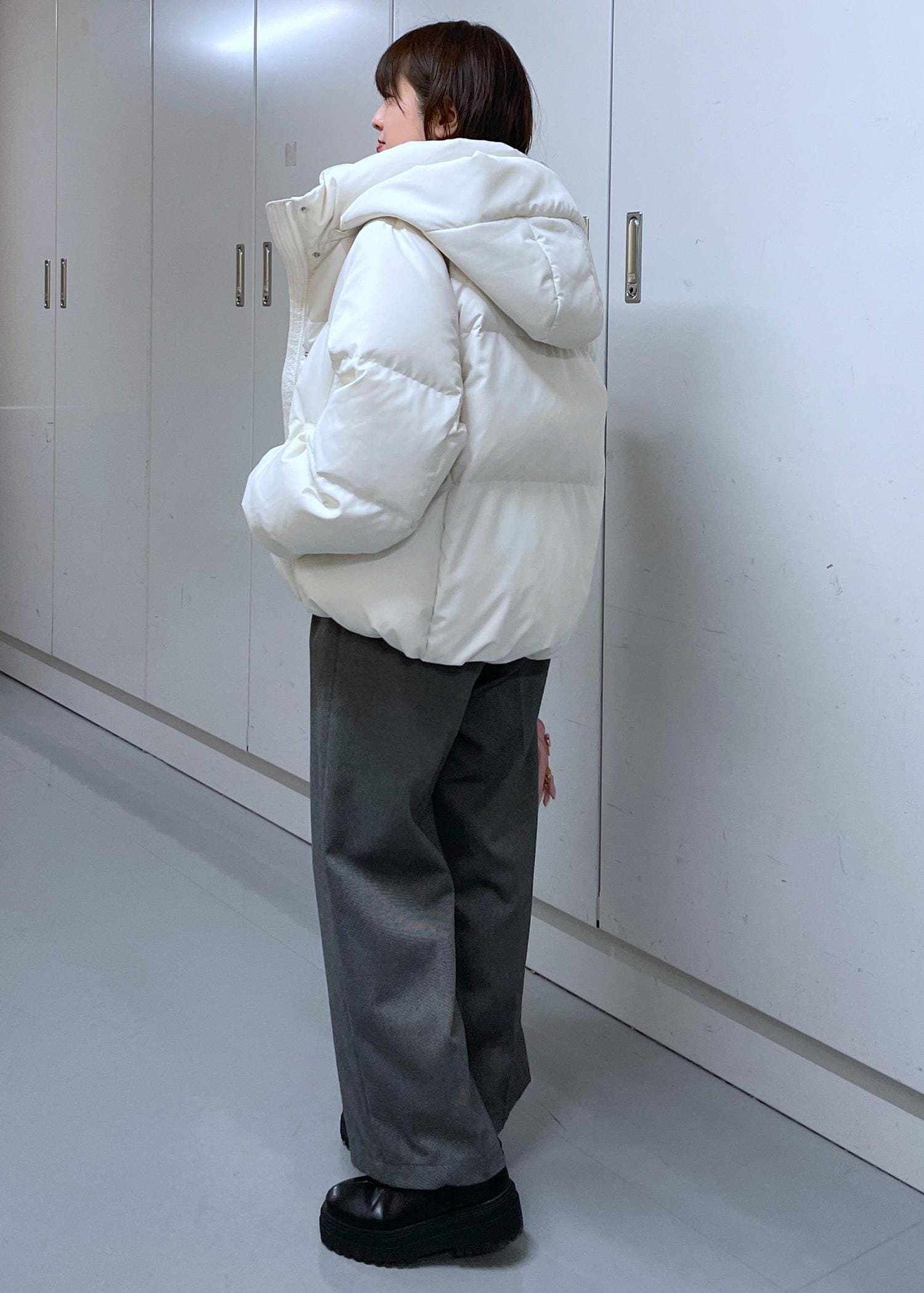 VIS【アウター総選挙3位】フード取り外し可能軽量ダウンブルゾン/2WAY・撥水加工オフホワイト / M¥18,480レビュー肩周りや身幅ににゆとりあり、ニットの上からでも羽織りやすいです。