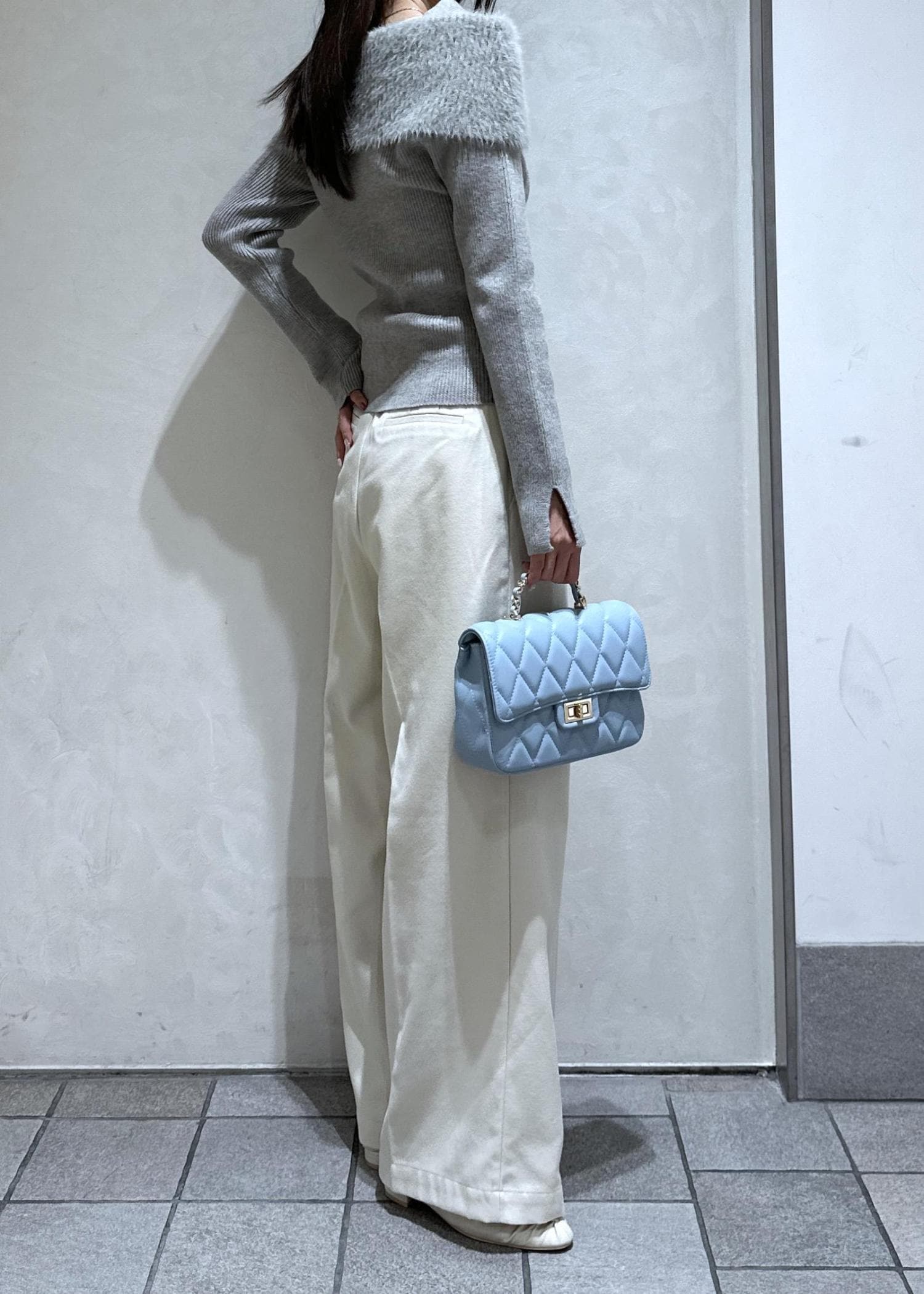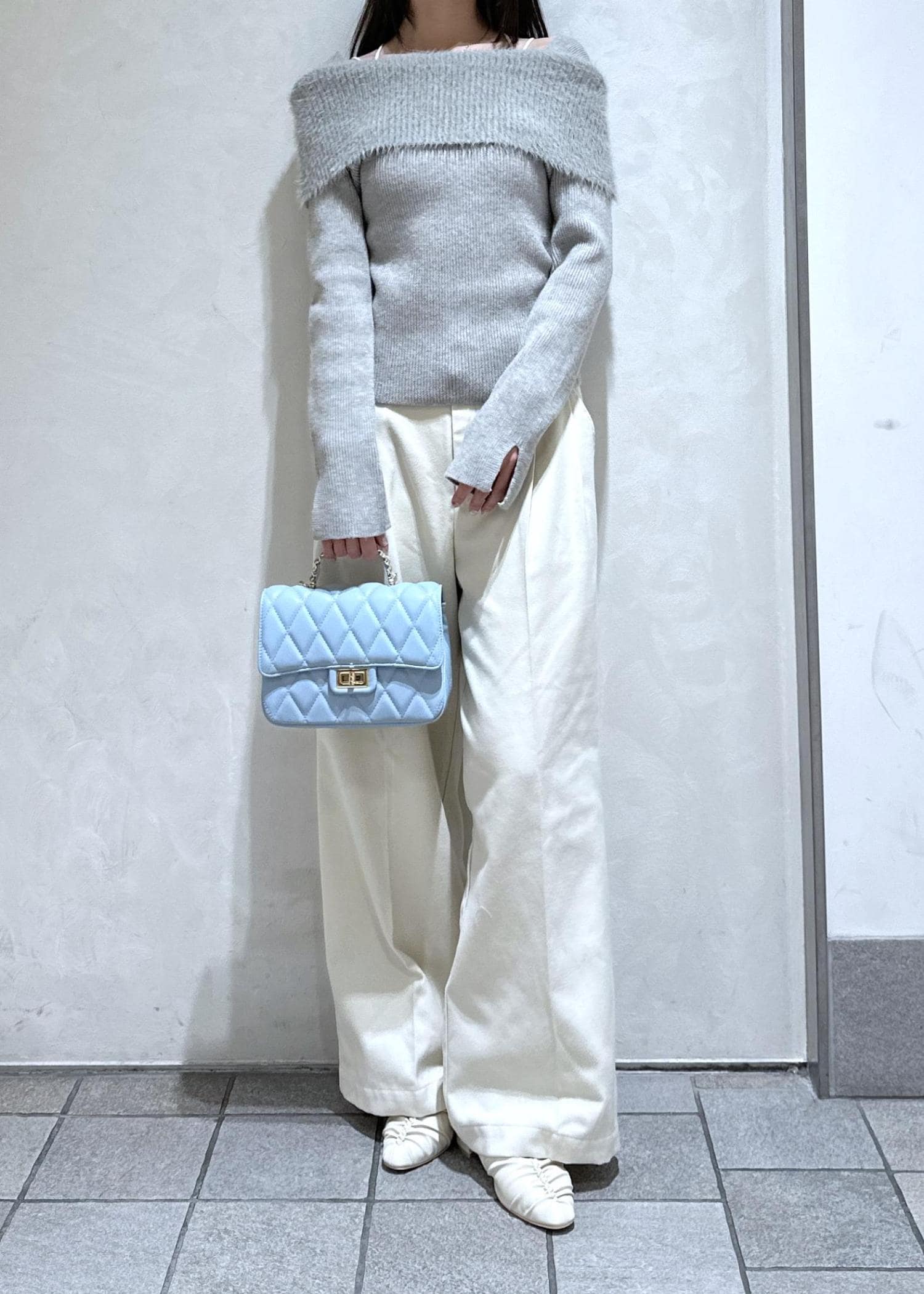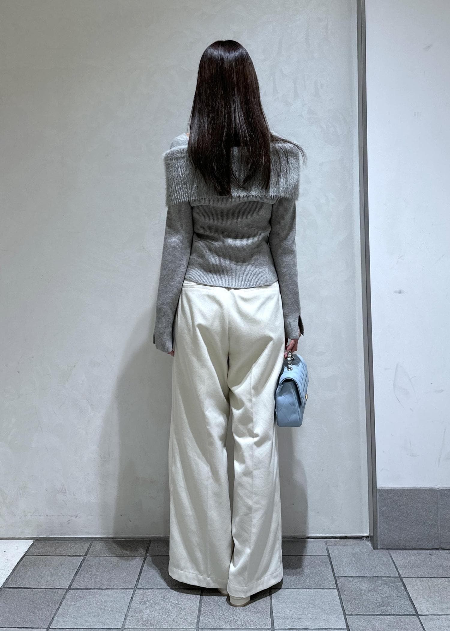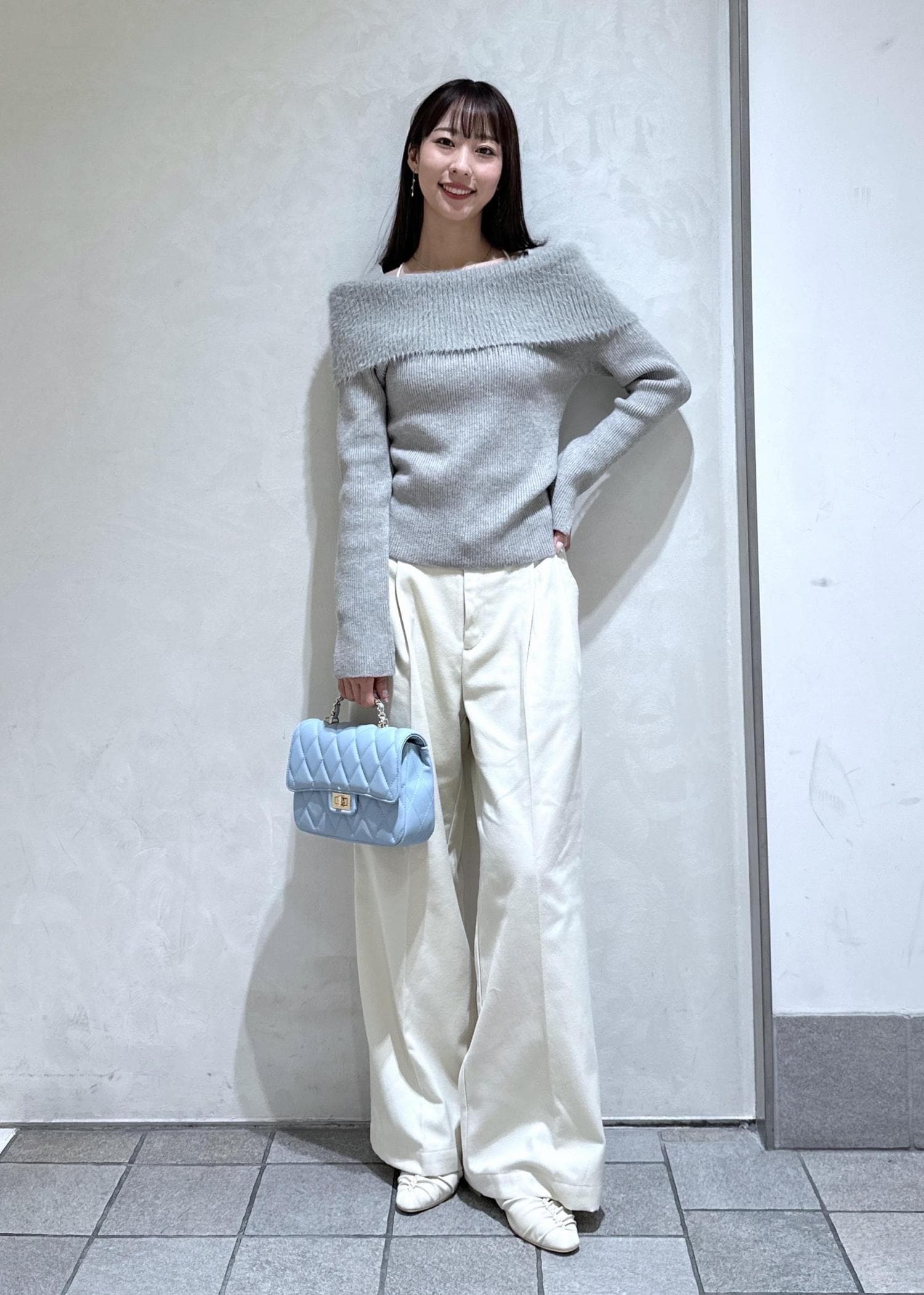 NEW!VISフェザーヤーンオフショルもちもちリブニット/イージーケアライトグレー / F¥5,929レビュー大人気のオフショル風ニットが冬バージョンに。胸元がフェザー生地にになっています◎もちもちした生地感もストレスフリーで着ていただけます!