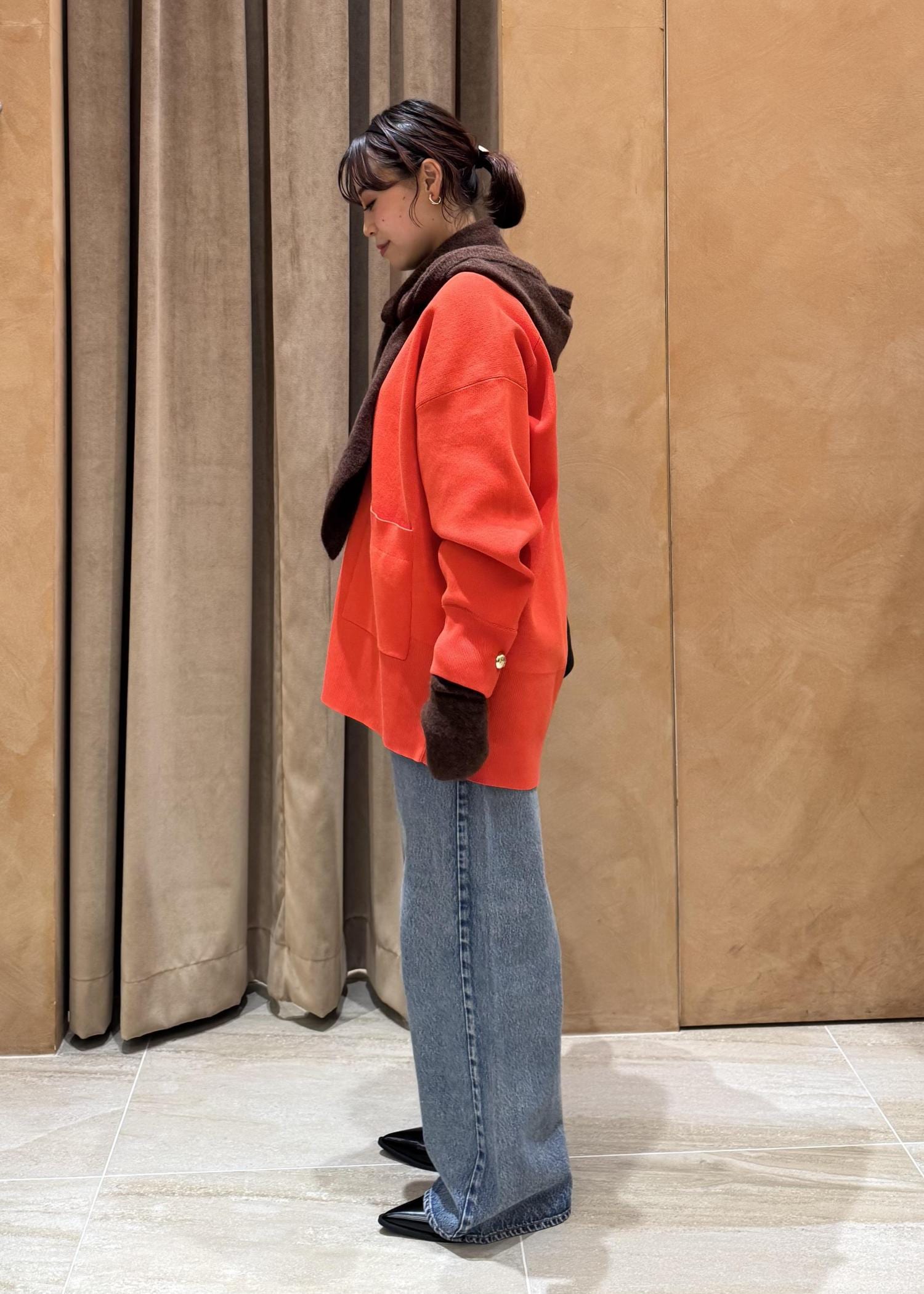 ウール素材ですが肌離れよく、光沢感がこなれ感を引き立たせてくれます⭐︎