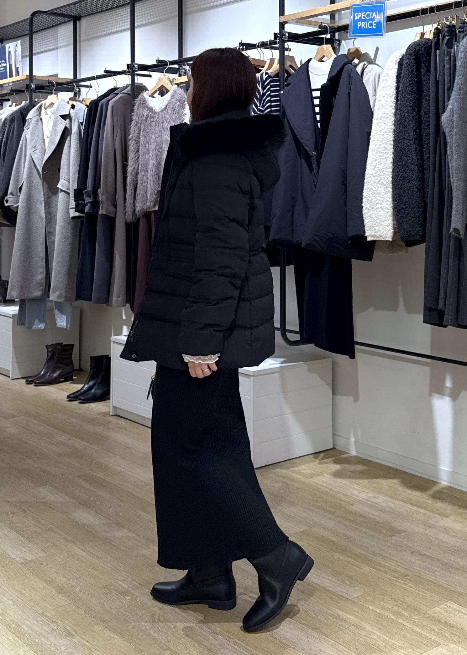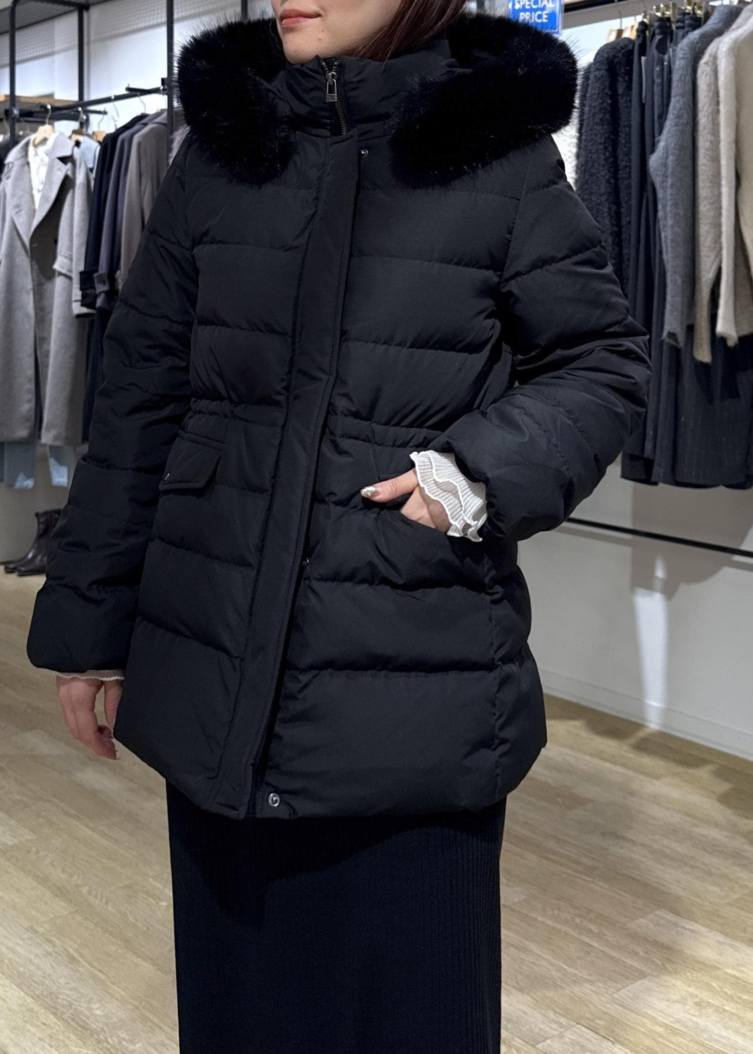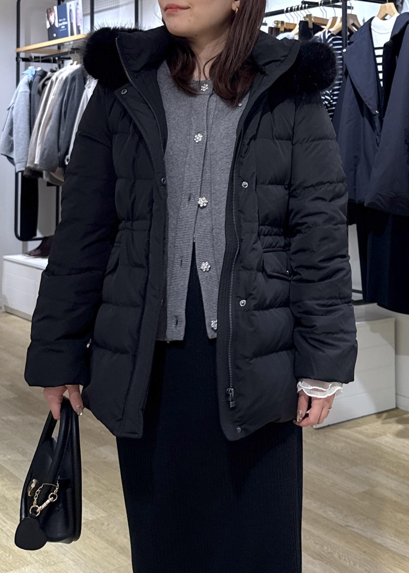 ROPÉ PICNIC【GREEN DOWN/グリーンダウン】ファー付きダウンミドル丈コート/リンクコーデブラック / M¥18,700レビュー着丈はヒップが隠れる長さです。