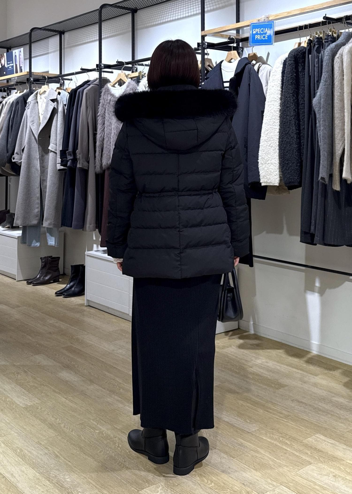 ファーもフードも取り外せるので、シンプルにもきれい目にも使いやすいデザインです。 -