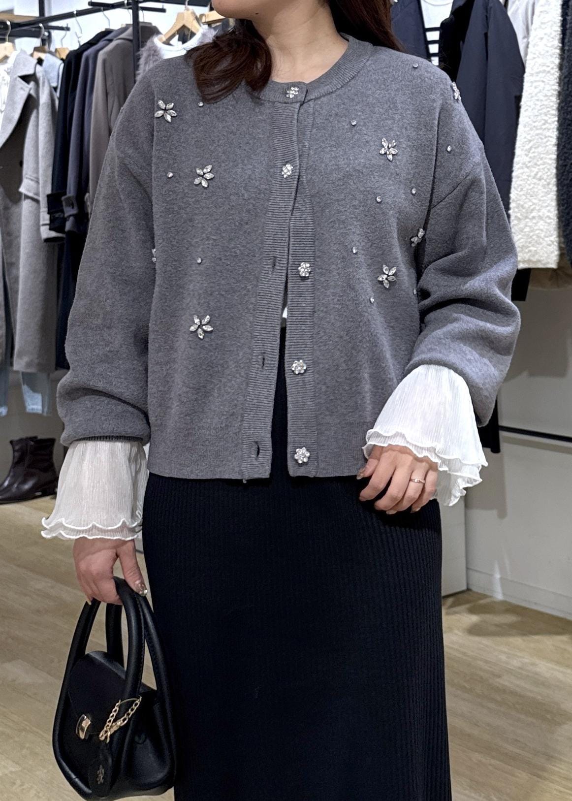 ROPÉ PICNICビジューニットカーディガングレー / F¥5,995レビュー身幅アーム共に程よくゆとりあり、体のライン拾いにくいです。中に薄手のニットやシャツなども着込めるサイズ感です。