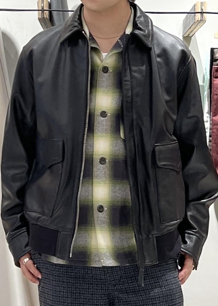レザージャケットは、袖はカフス仕様なのでレイヤードがしやすく、フロントのポケットはハンドウォーマー仕様になっているのもポイントになっています!^^