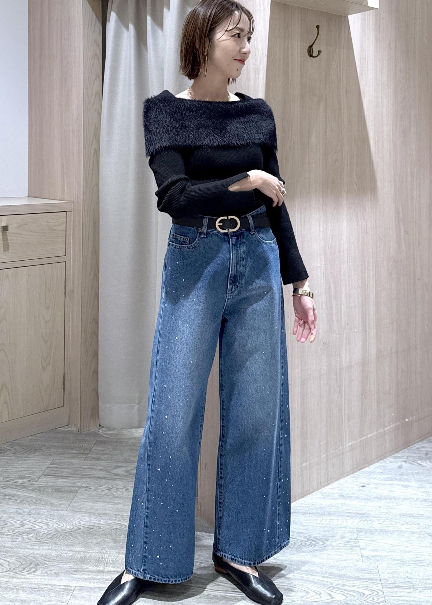 ビジューが散りばめられたストレートデニムです!