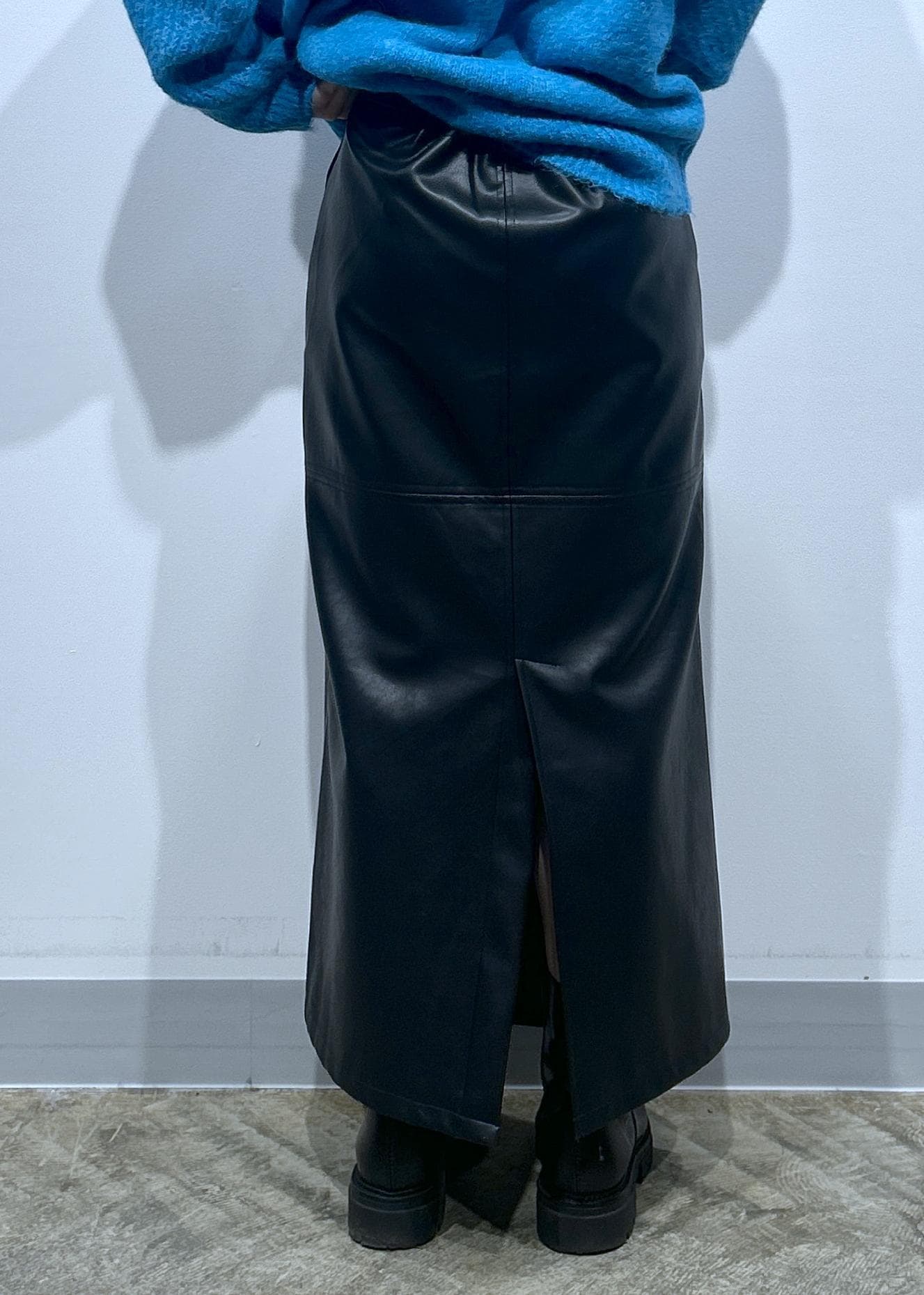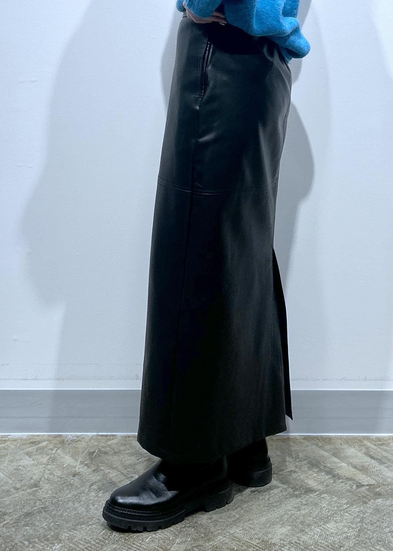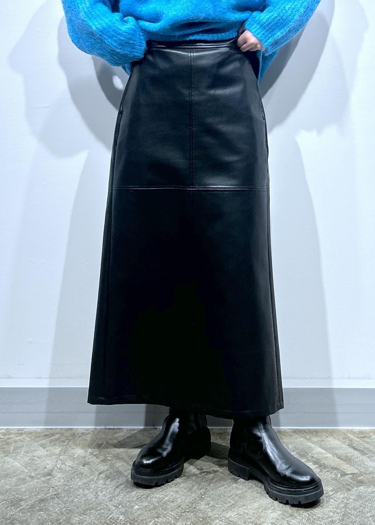 ボトムスはレザーでスッキリしたタイトスカートを合わせました!