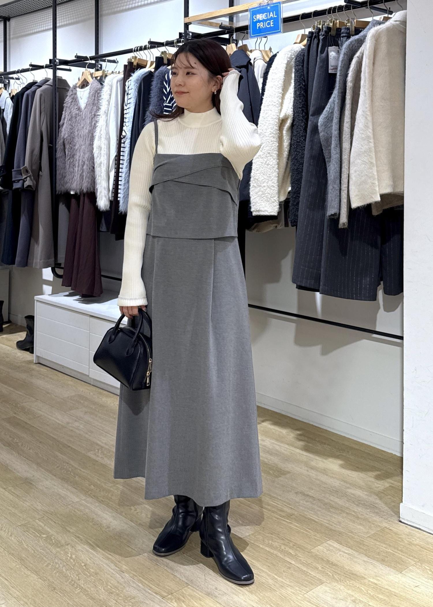 ROPÉ PICNICセットアップ見えワンピースグレー / S¥7,997レビュー着丈は肩紐で調節可能です。