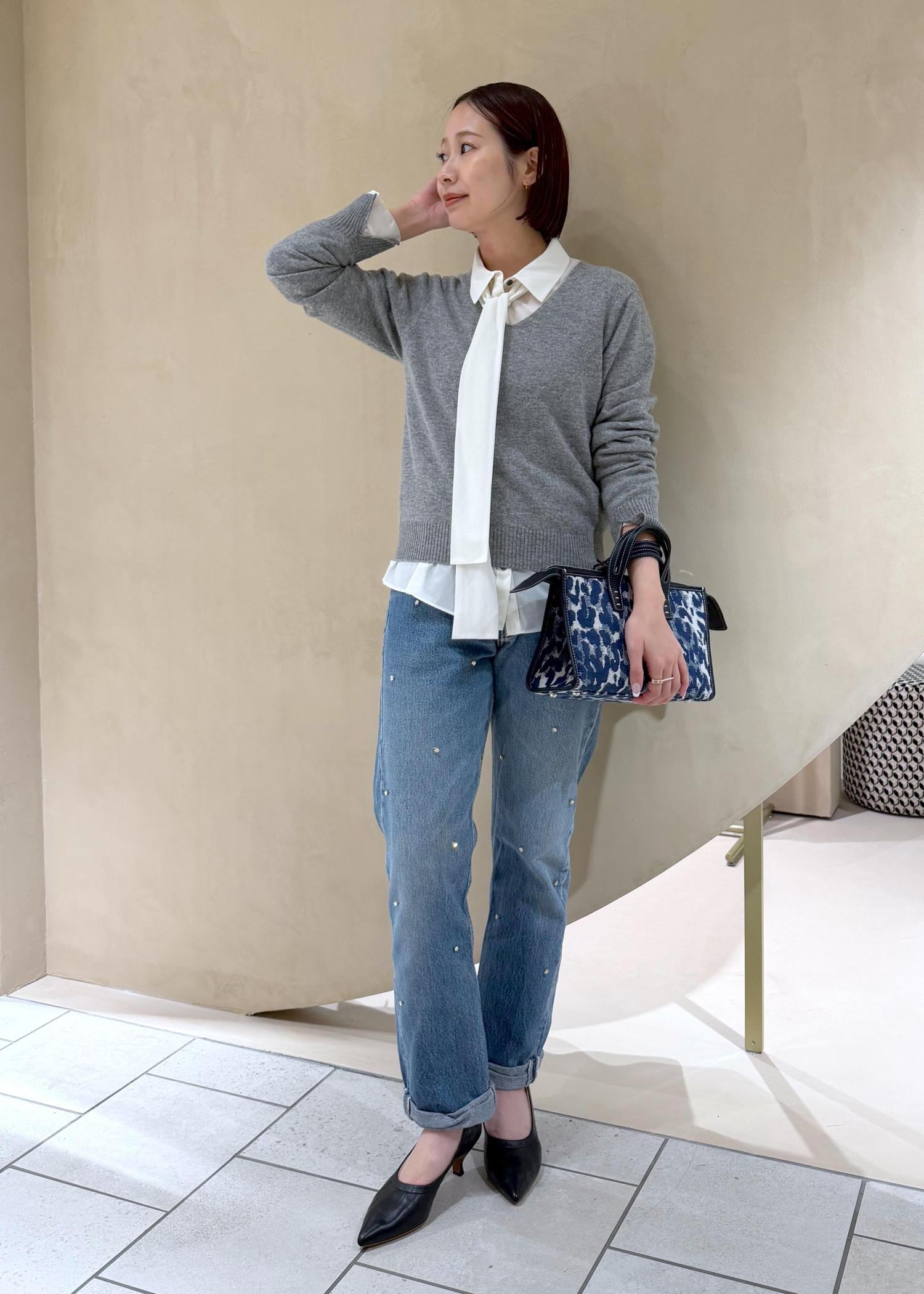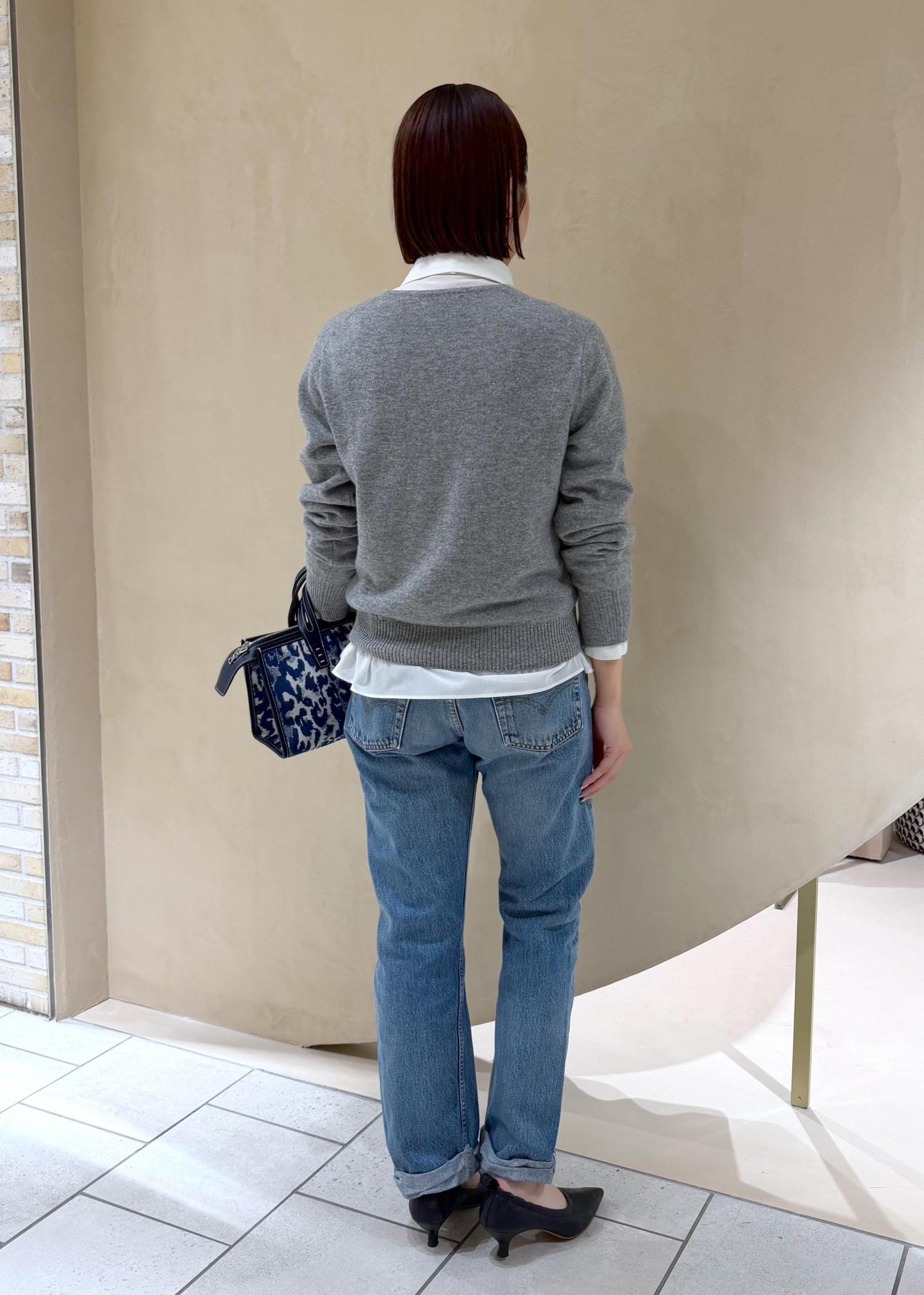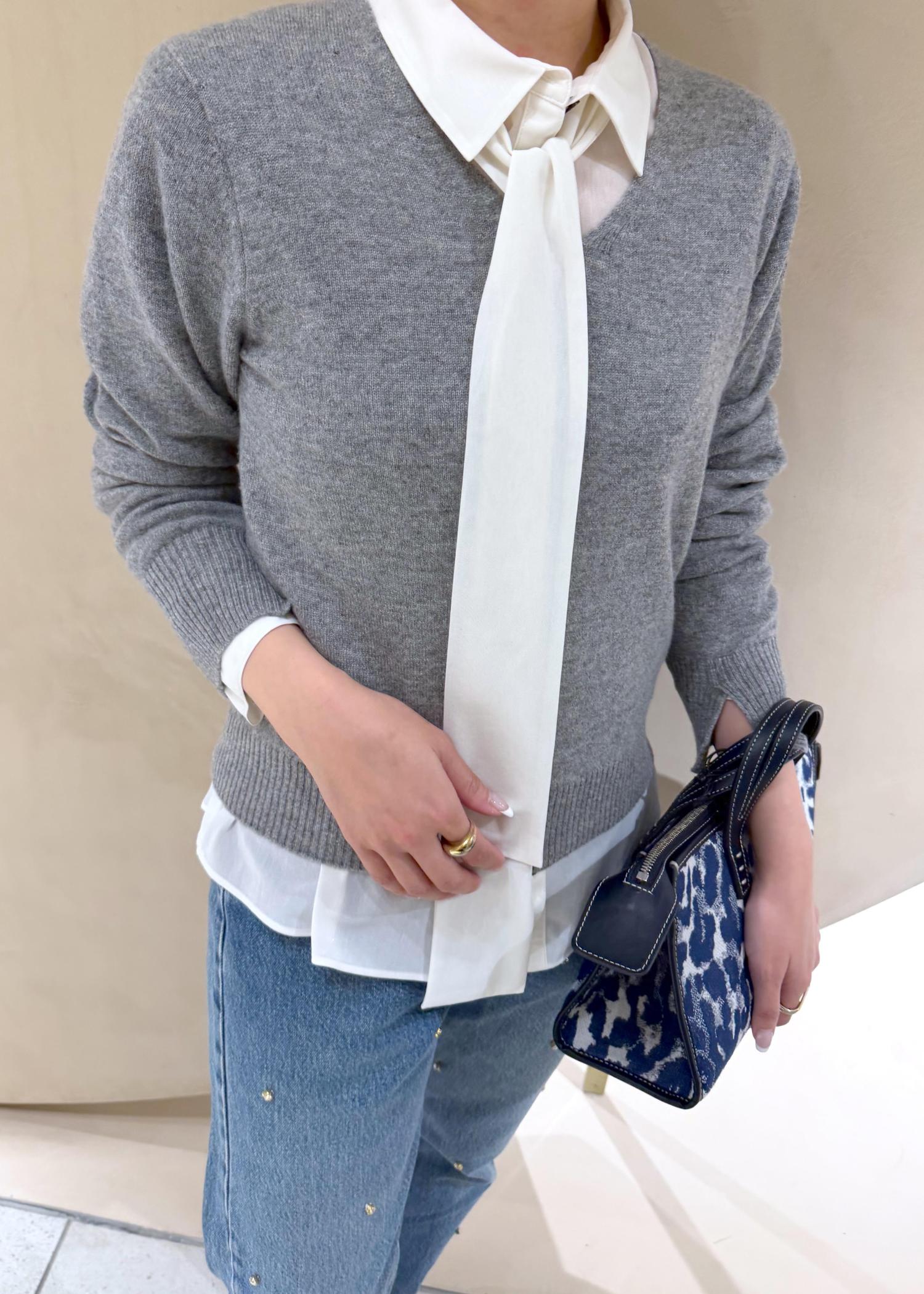 NEW!ROPÉカシミヤVネックニットプルオーバーグレー / F¥25,300レビュー程よいゆとり感で1枚で着てもインナーが見えない浅めのVネック、袖にスリットが入っているので抜け感もでるカシミアニット。