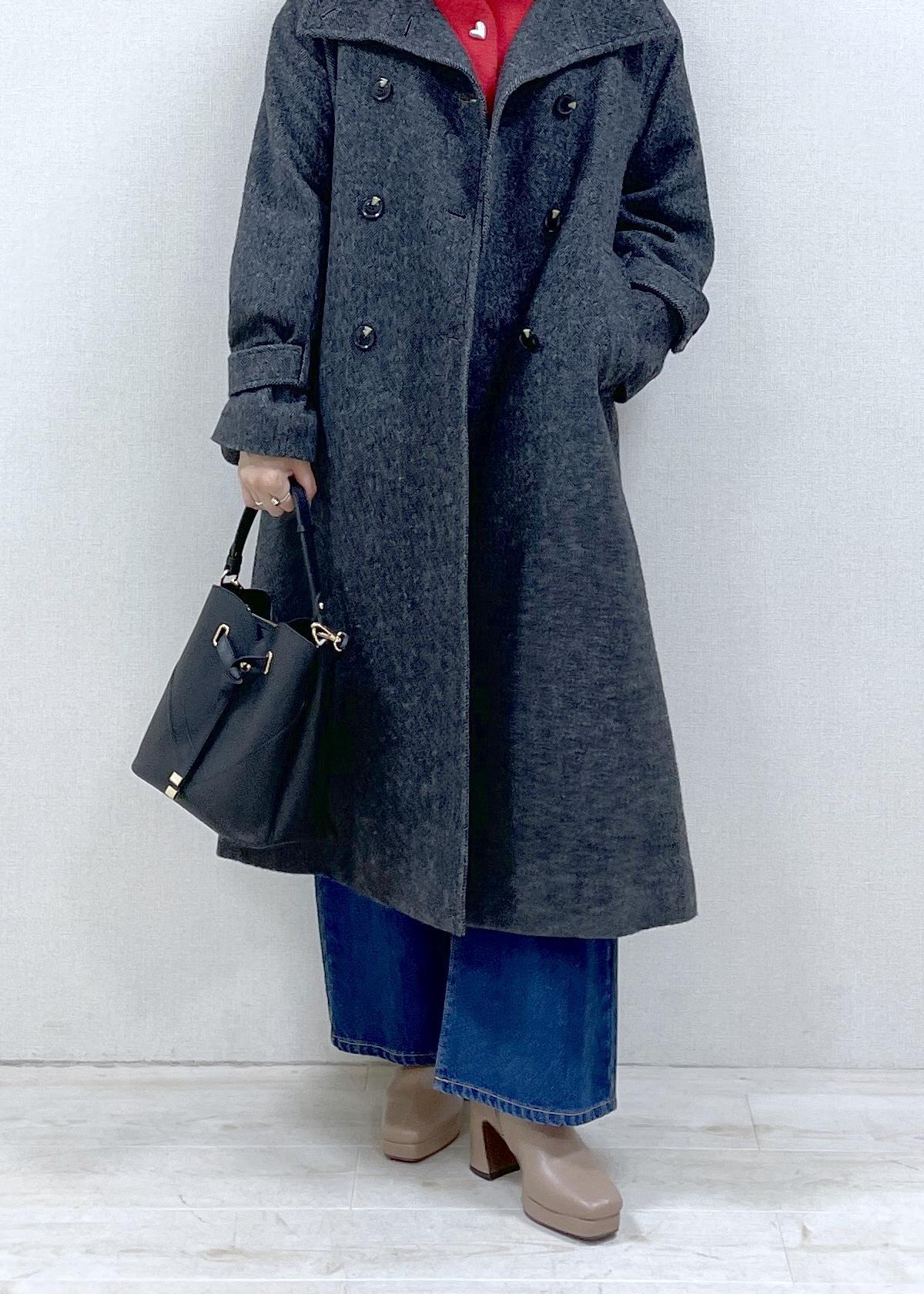 スタンドカラーにもなるので、マフラーいらず、大きめな襟は小顔効果もあります◎ -