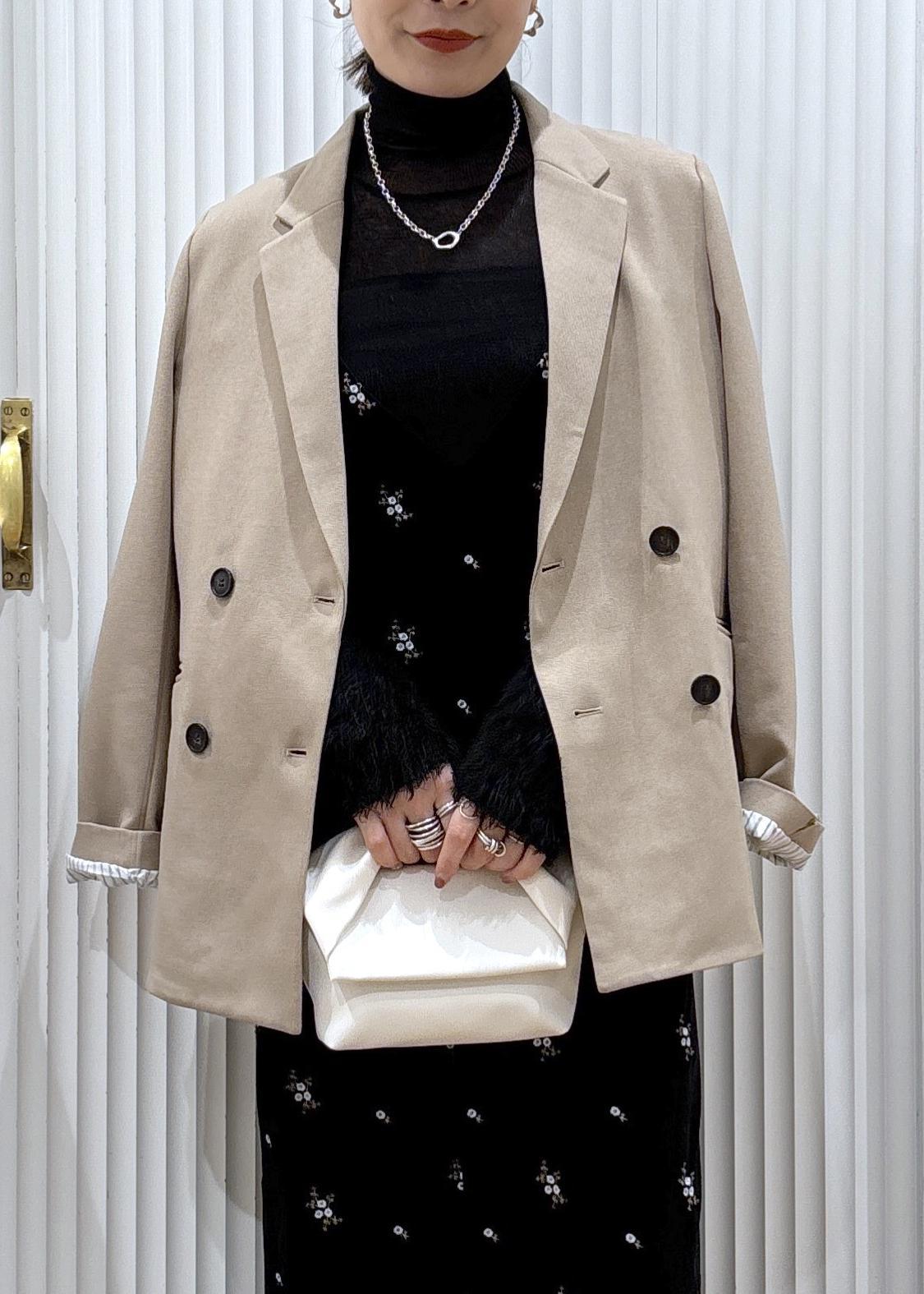 ジャケットのインでキレイめに合わせた平日オフィスコーデ。