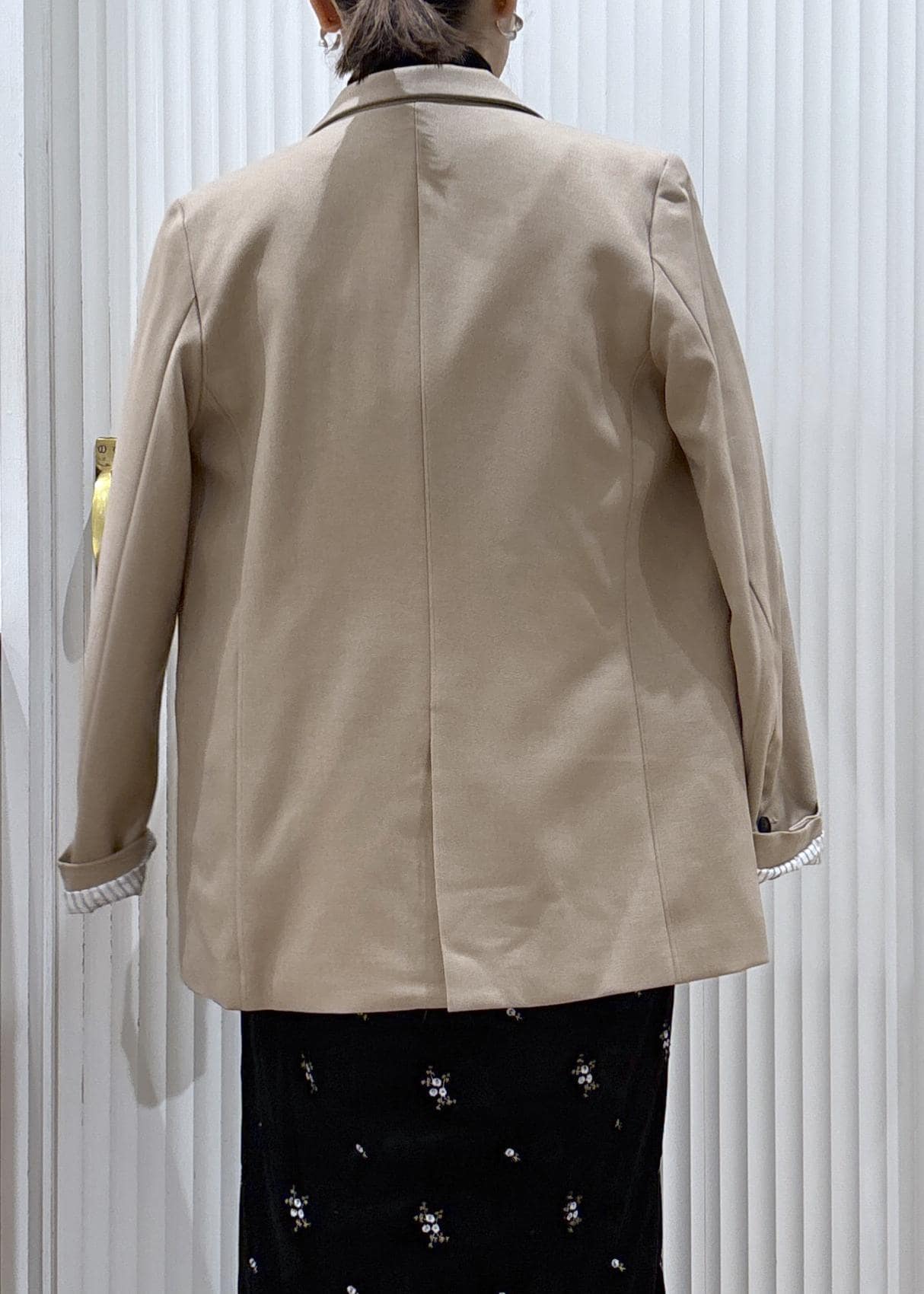 裏地付きでシワになりにくく、お家でお洗濯も可能です。質感はウール見えしますが、肉厚すぎず柔らかな合縫生地なので、残暑シーズン〜春先まで大活躍間違いなし。オンオフ使えて裏地付きのジャケットはAWの羽織に1着は欲しいアイテム。 -
