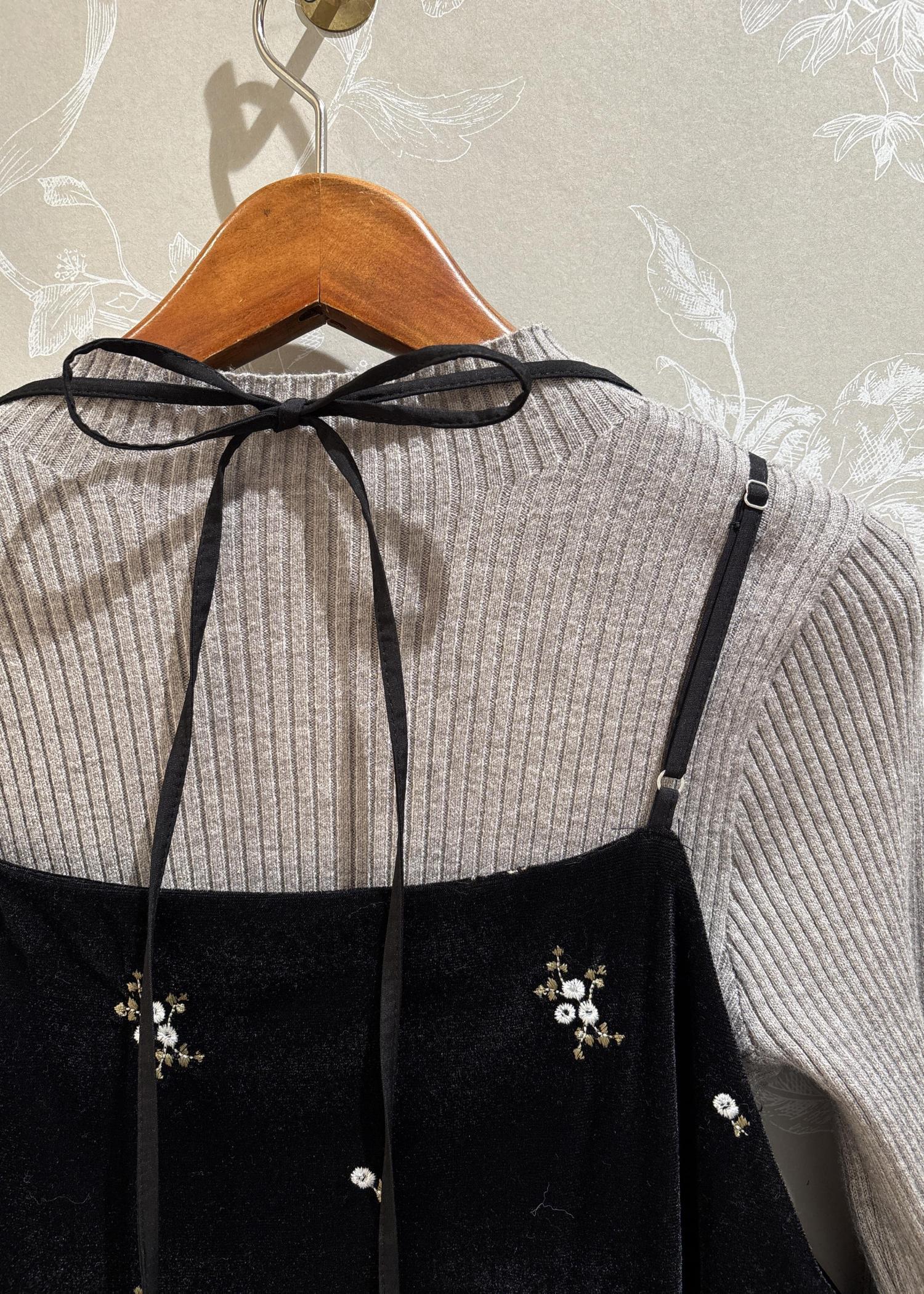 VIS刺繍アソートベロアキャミワンピース/2WAYブラック系 / F¥8,899レビュー肩紐調整が可能。前後2WAYで着用OKです。