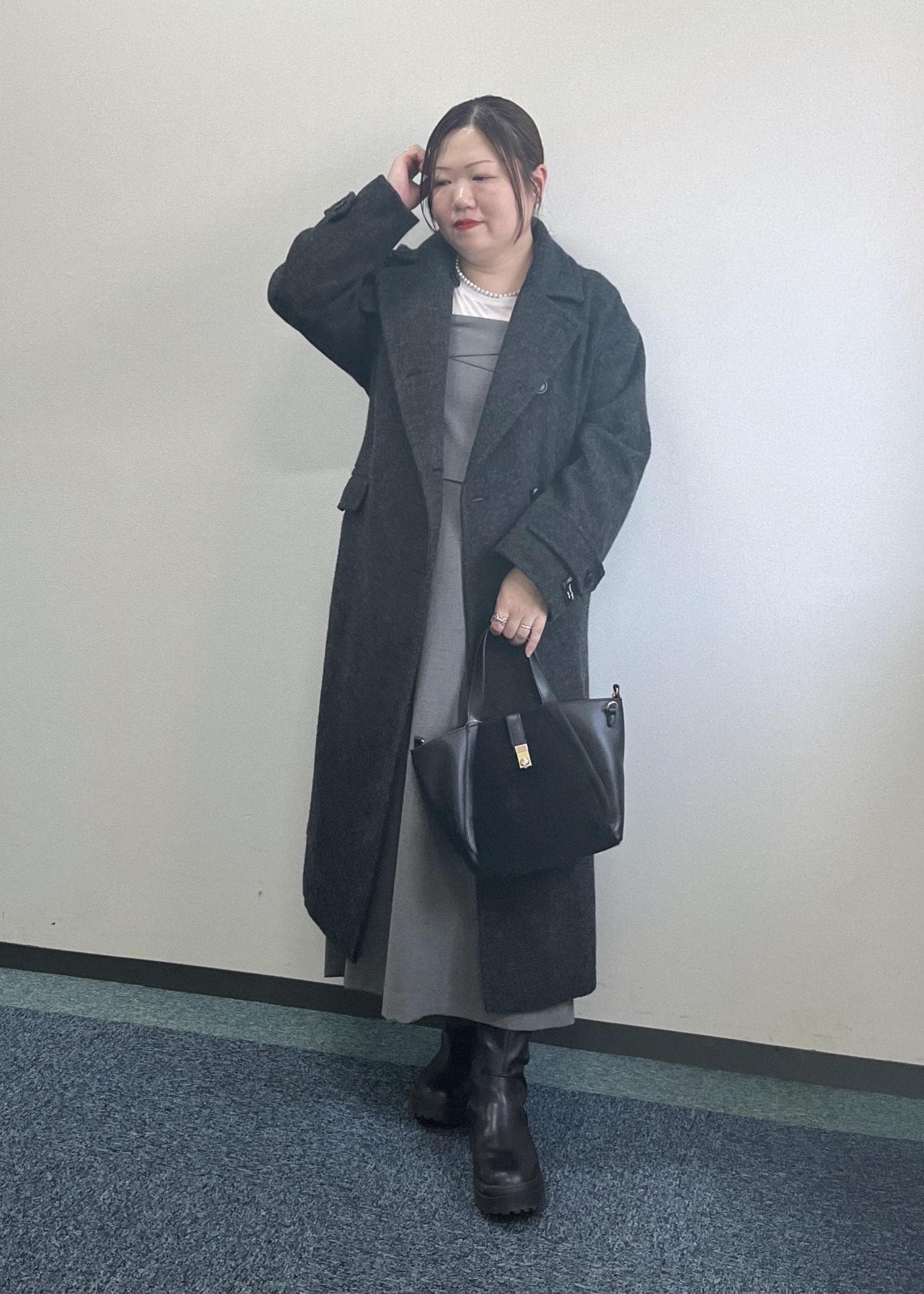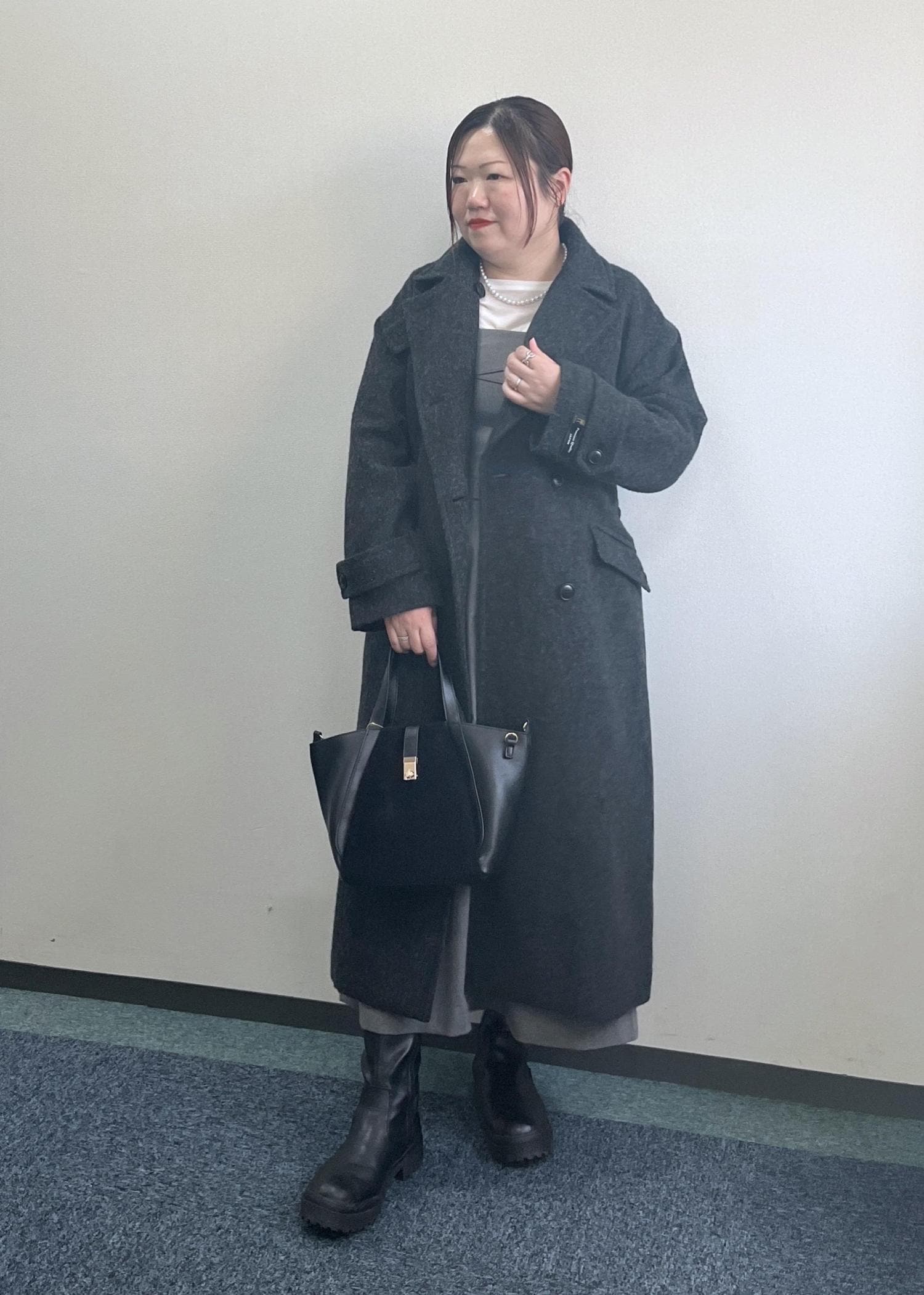 ロングコートのモノトーンコーデ