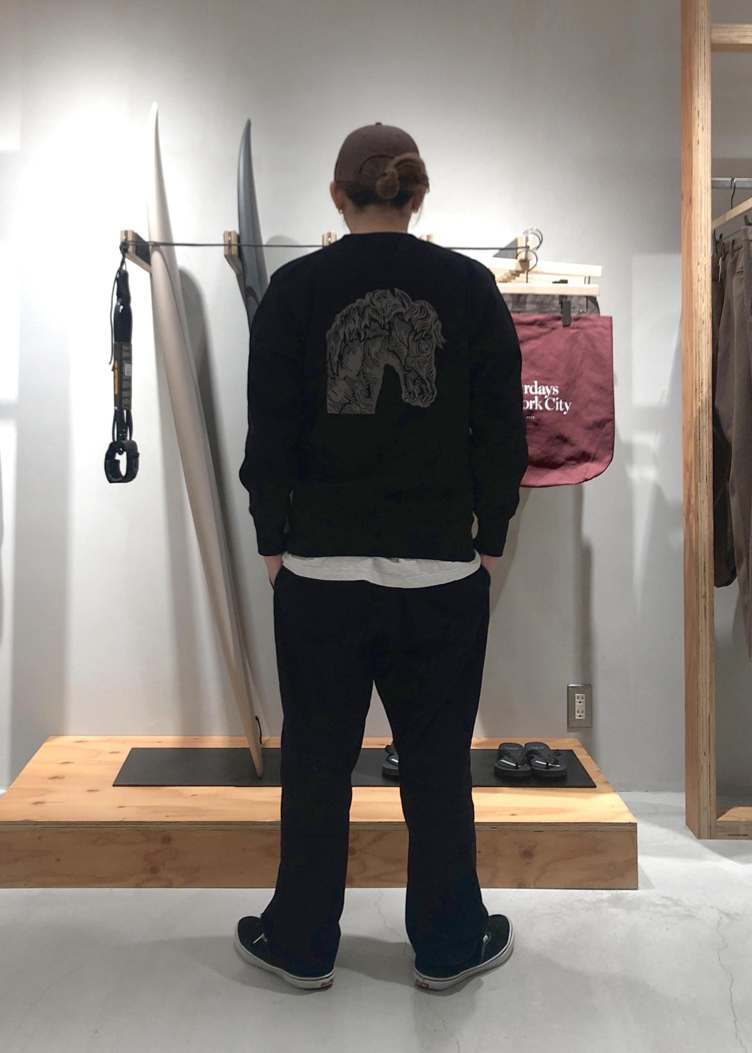 NEW!Saturdays NYCNUTS ART WORKS × Saturdays NYC Sweatshirtブラック / M¥14,300レビューNUTS ART WORKS がSaturdays NYC代官山店のウィンドウに、来年の干支である「馬」のモチーフをハンドペイント。同じデザインのスウェットを展開。