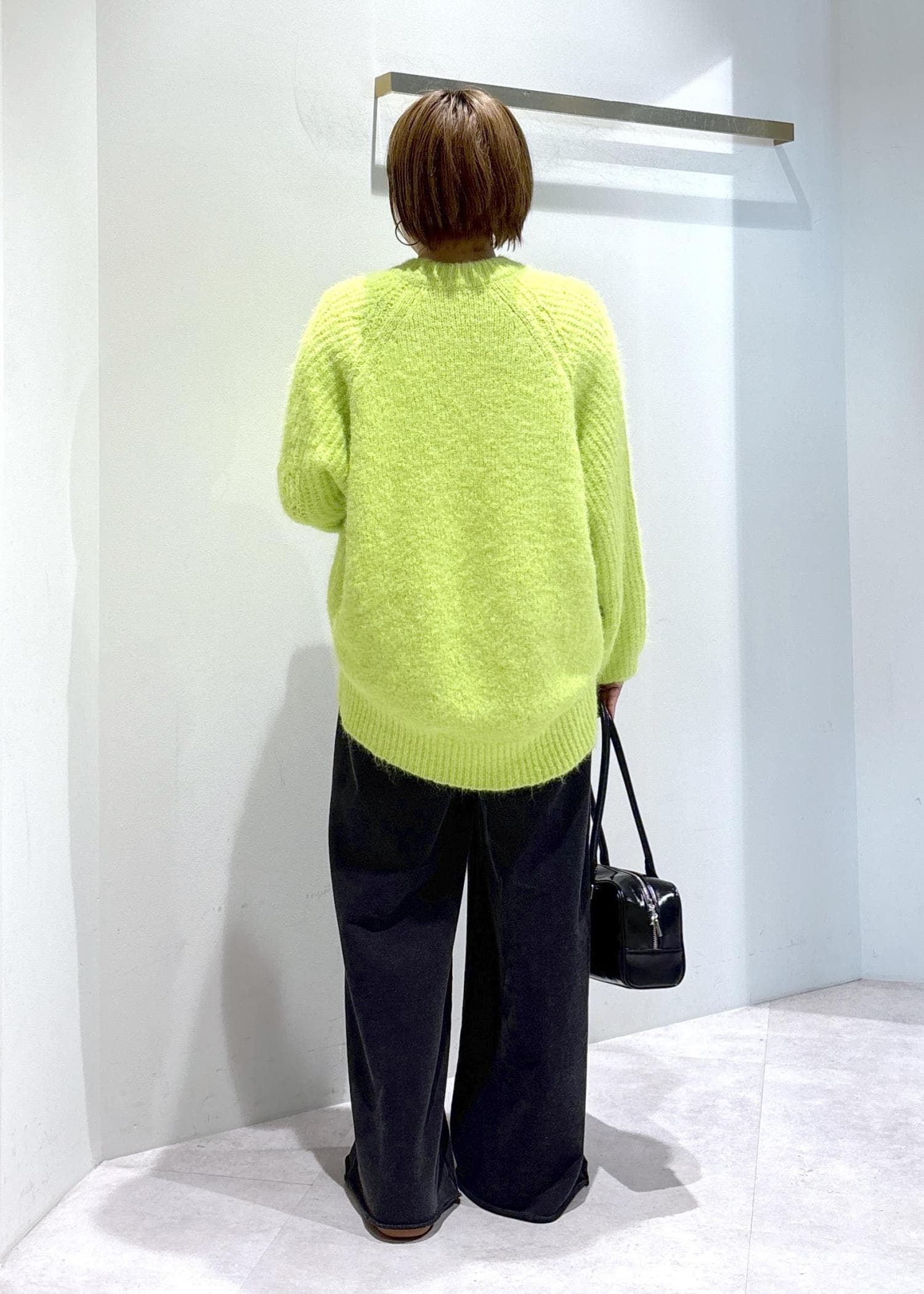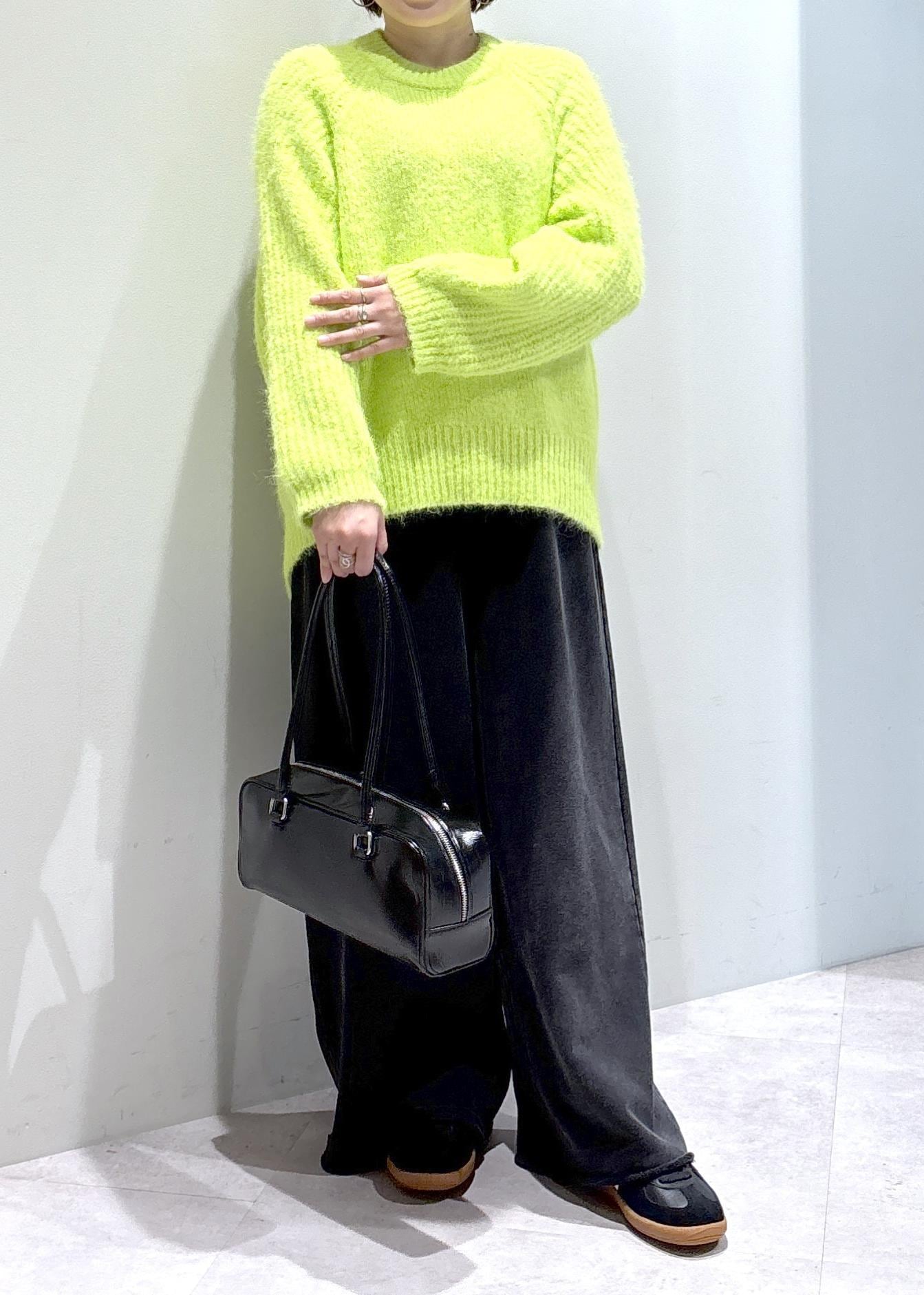 着映えできるカラーニットを使った大人カジュアルコーデです!