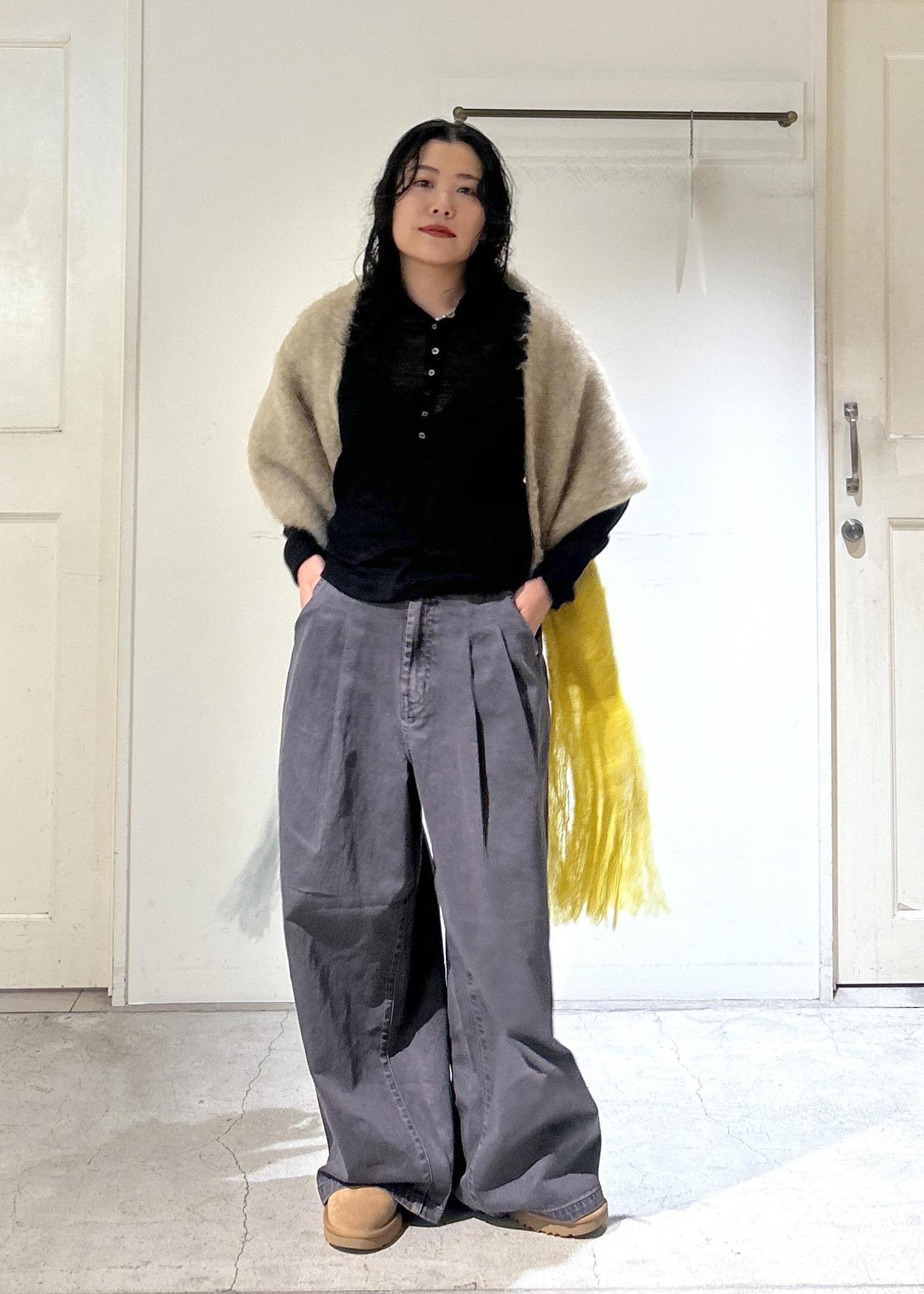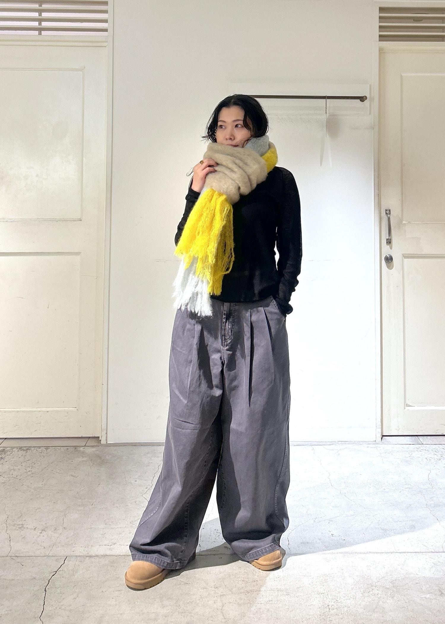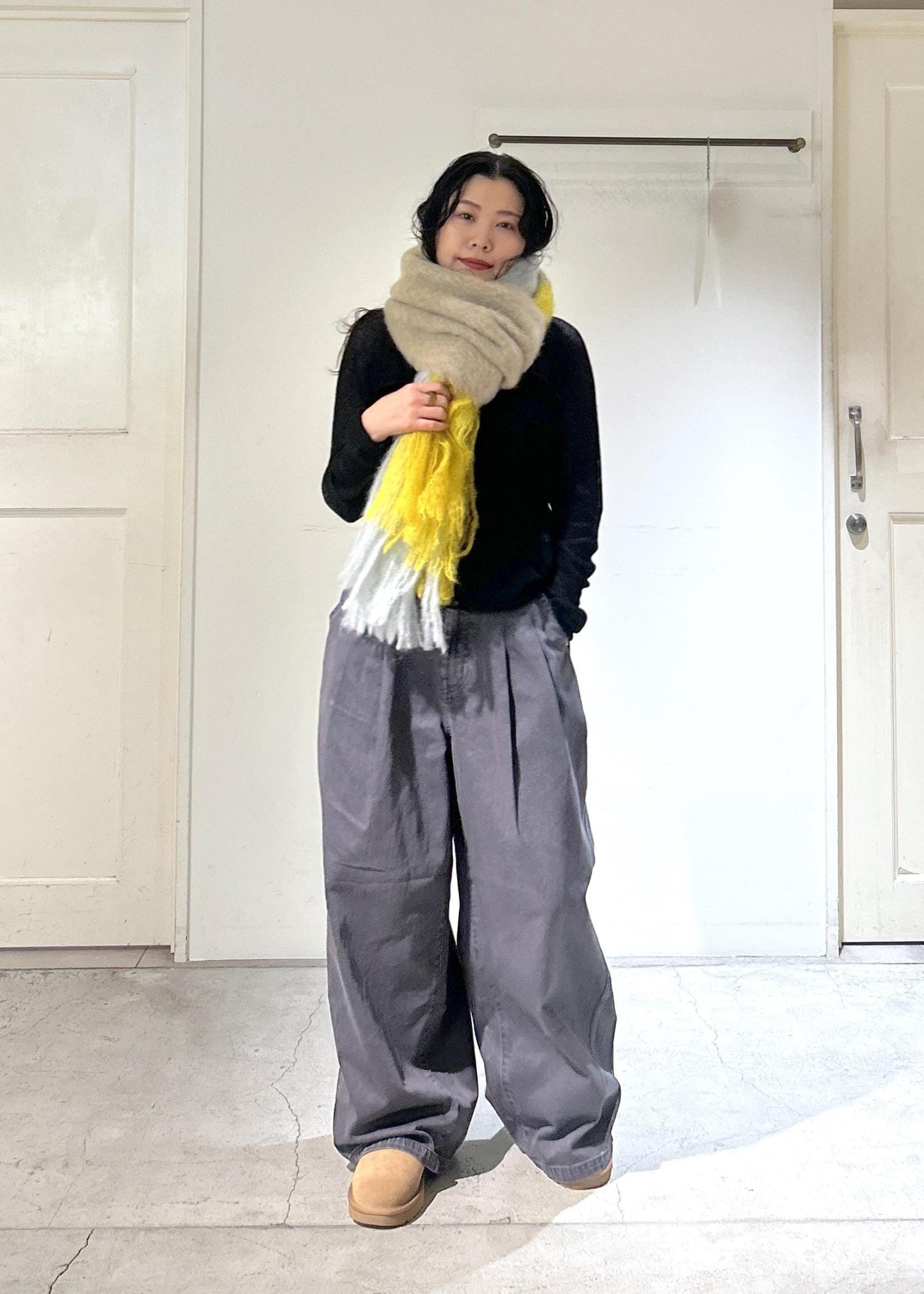 Ezcaray(エスカライ)のストールをメインにワイドパンツで合わせてみました。