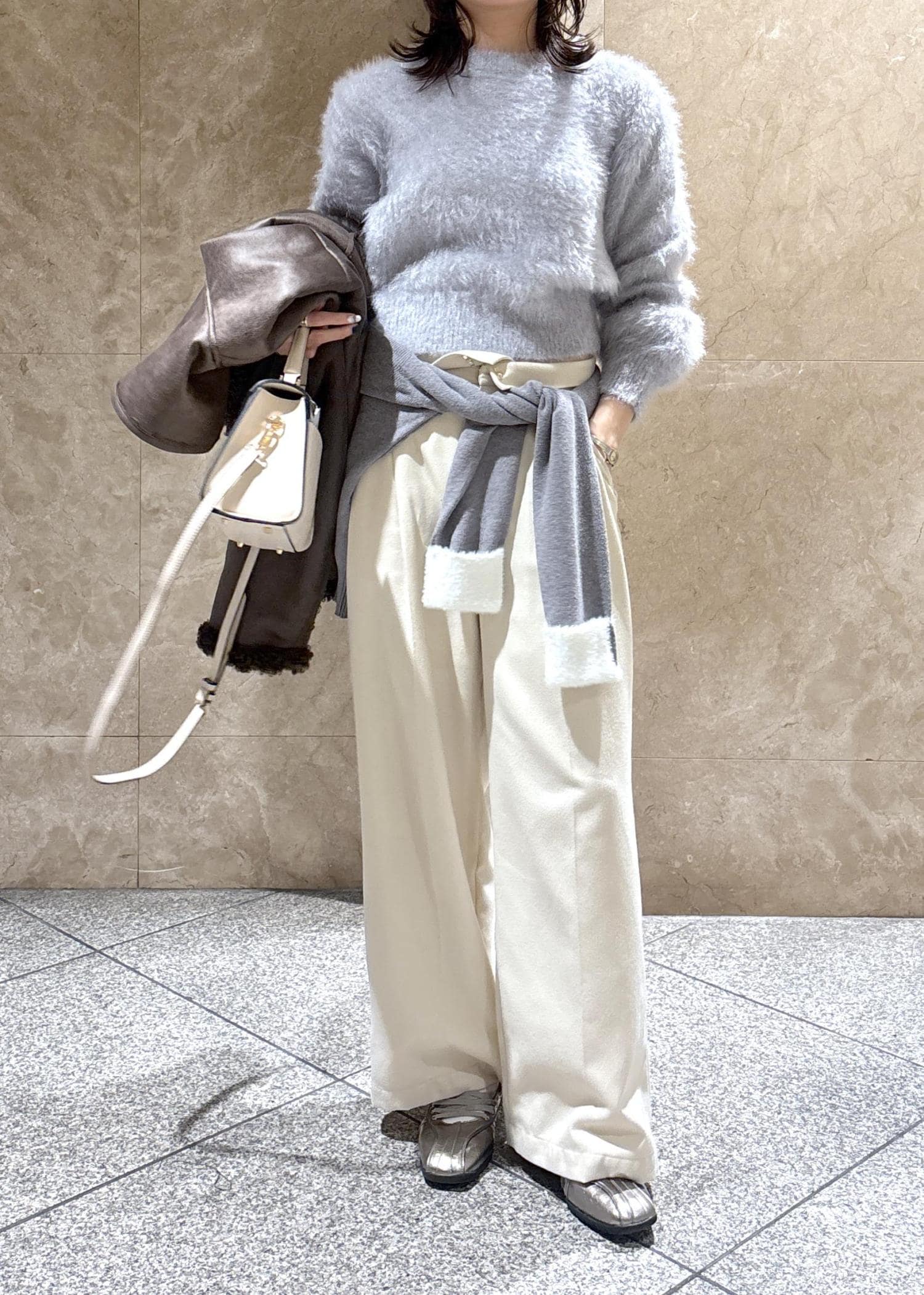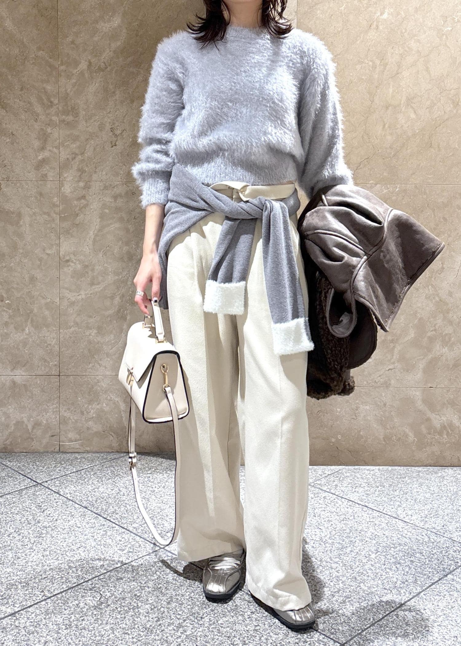 シルバーのキラキラした素材が混ざっていて、ベージュのくすみカラーも顔まわりがパッと明るく見えてチャレンジしやすかったです。