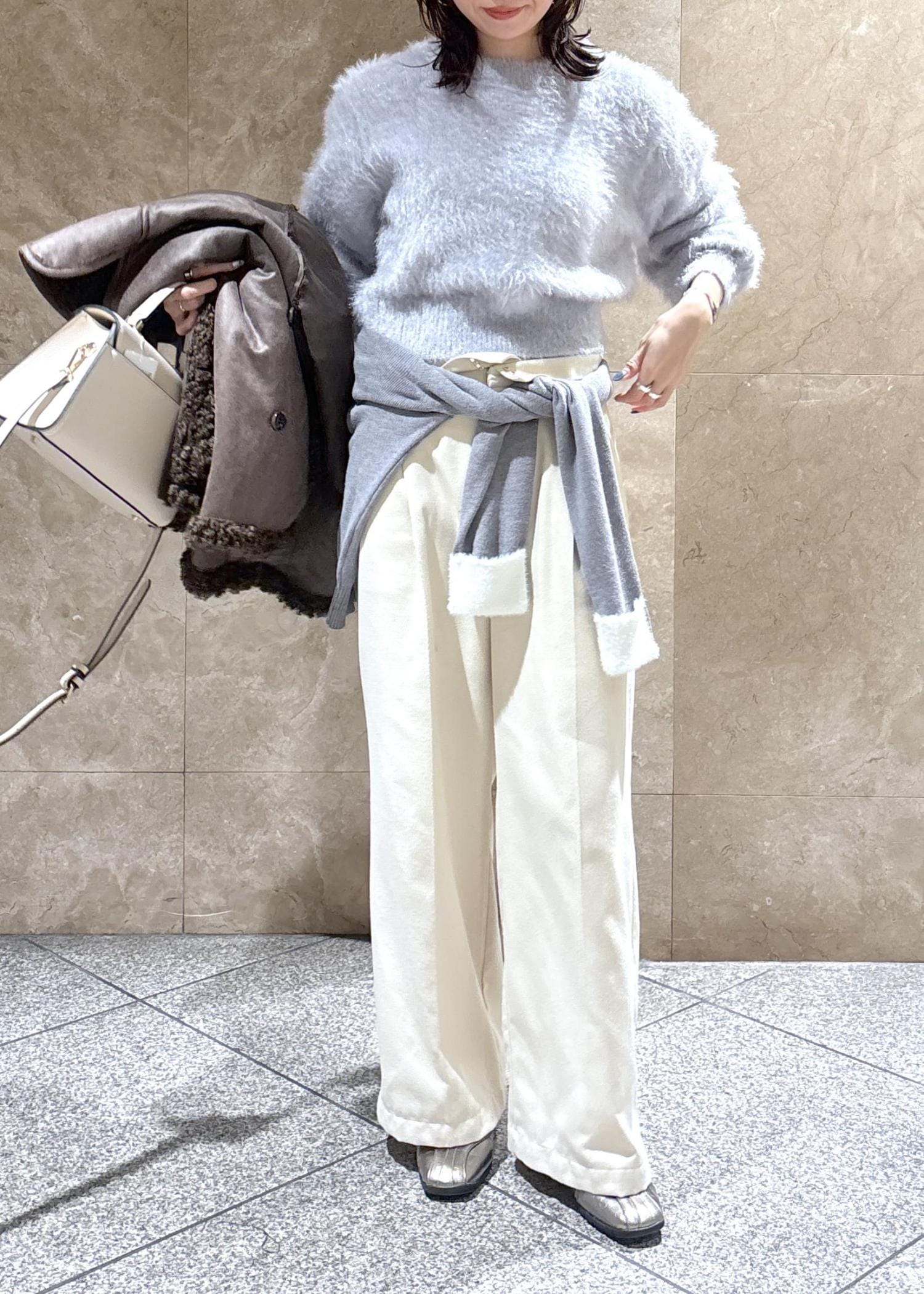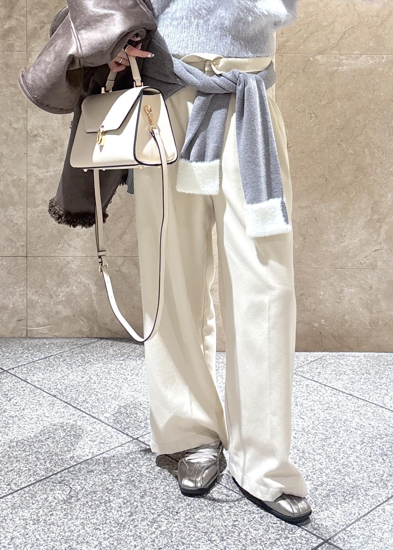 起毛ウールライク版ベルトディテールタックワイドパンツ