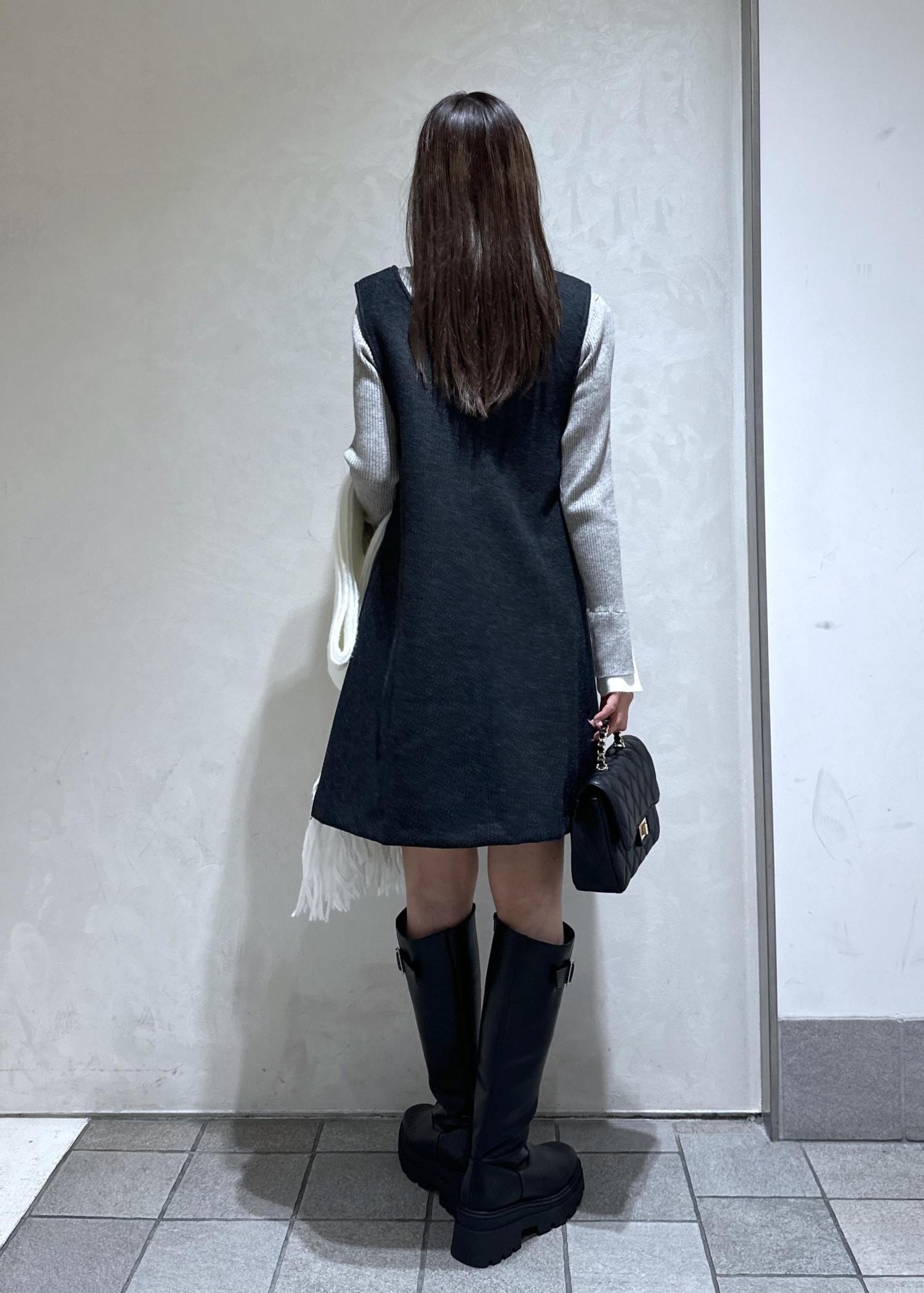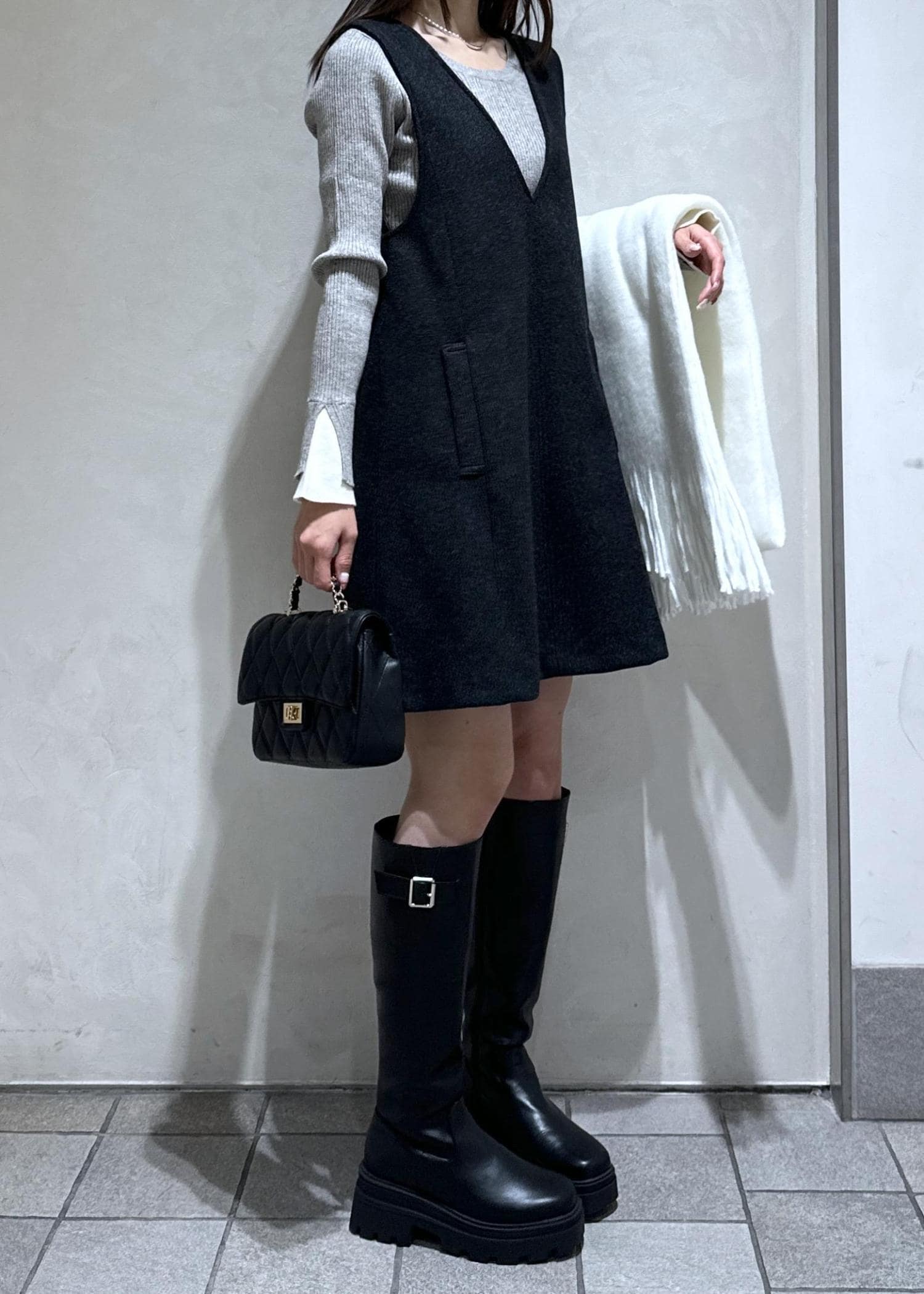 VISシャギーVネックミニ丈ジャンパースカートチャコール / F¥7,909レビューミニ丈すぎない上品な印象のワンピース。165cmの私が着用してもちょうど良かったです!ポケット付きです♪