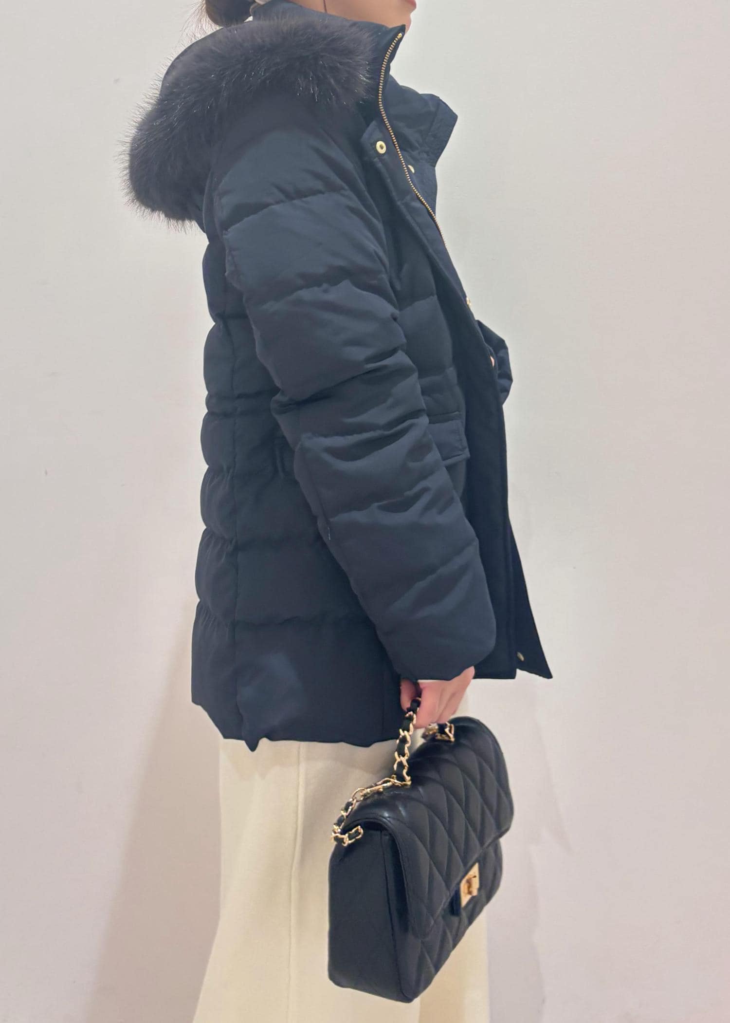 ペプラムシルエットで、ダウンの中でも細身なシルエットなので綺麗めにも着れます◎