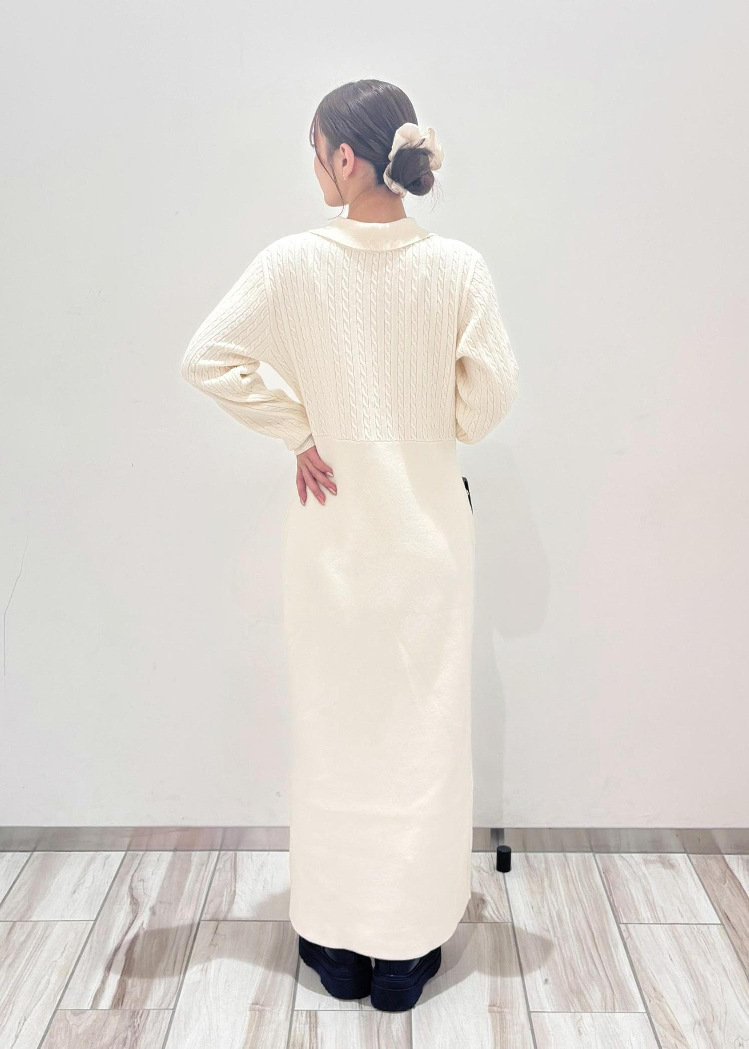 一枚で着映えする白ワンピに、ネイビーのファー付きダウンで綺麗めコーデにまとめてみました。