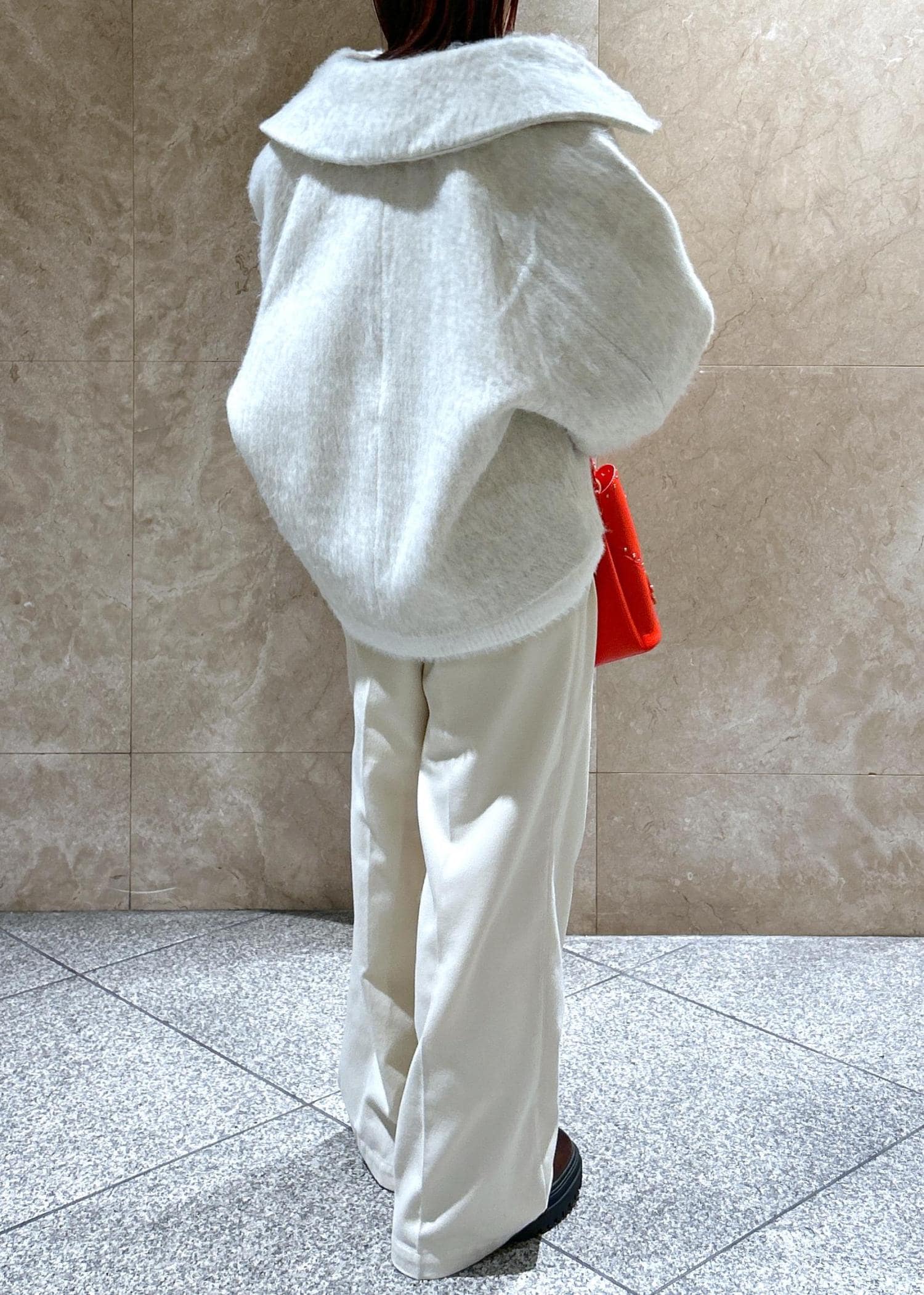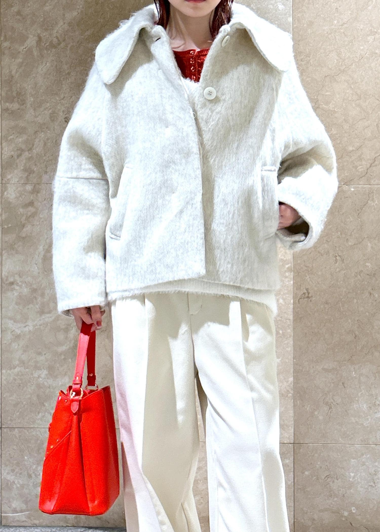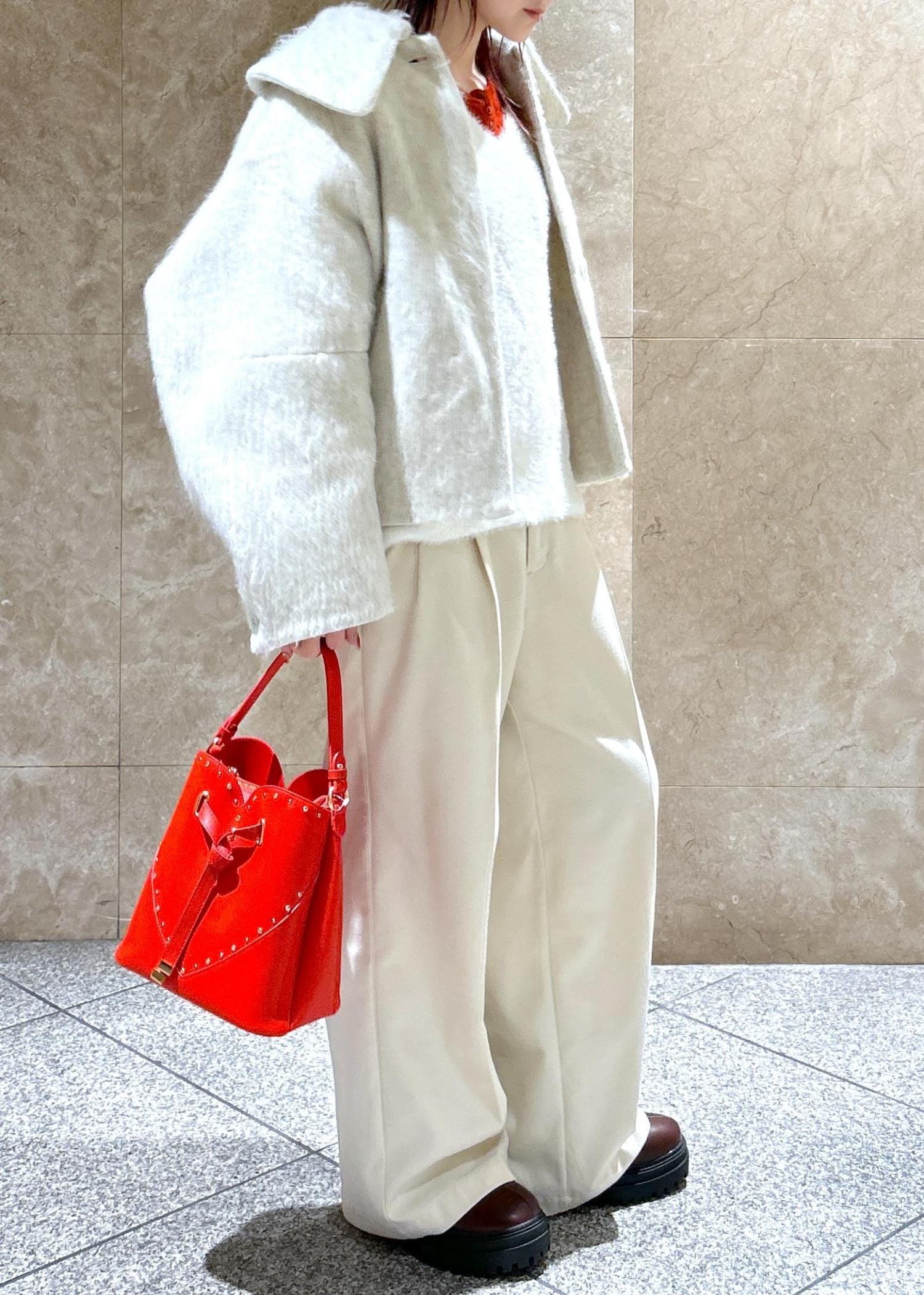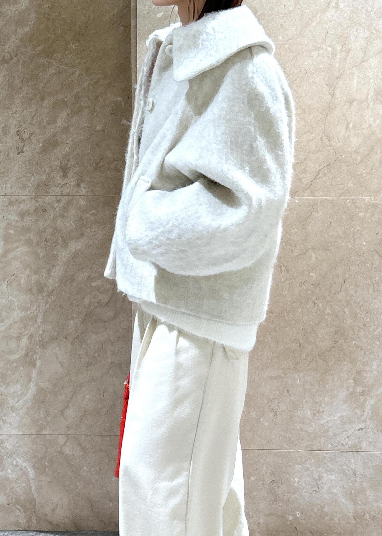 NEW!VIS【アウター総選挙1位】ビッグカラーモモンガシャギーショートコートオフホワイト / S¥10,989レビュー大きな襟が小顔効果あり!のショートコートです!