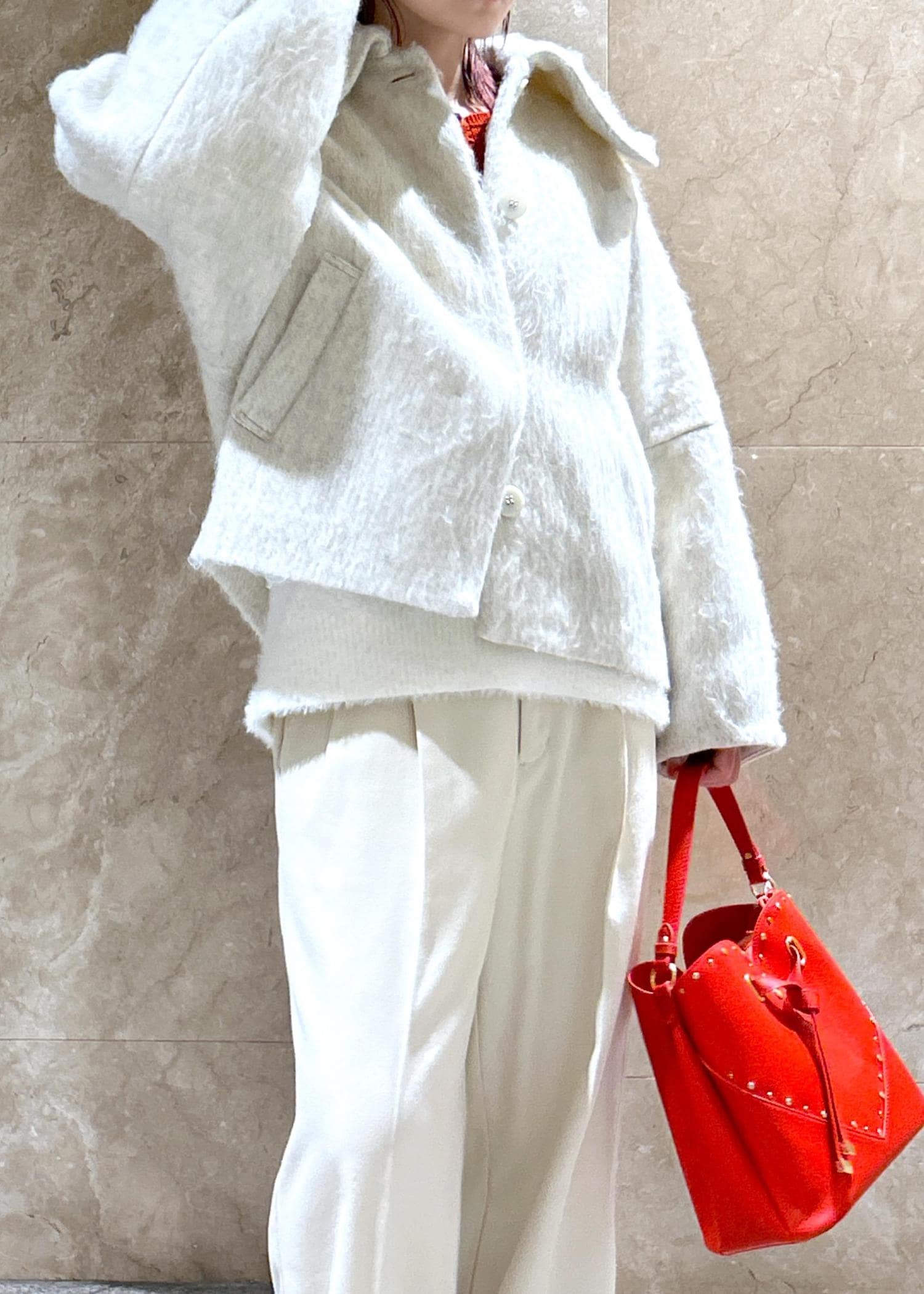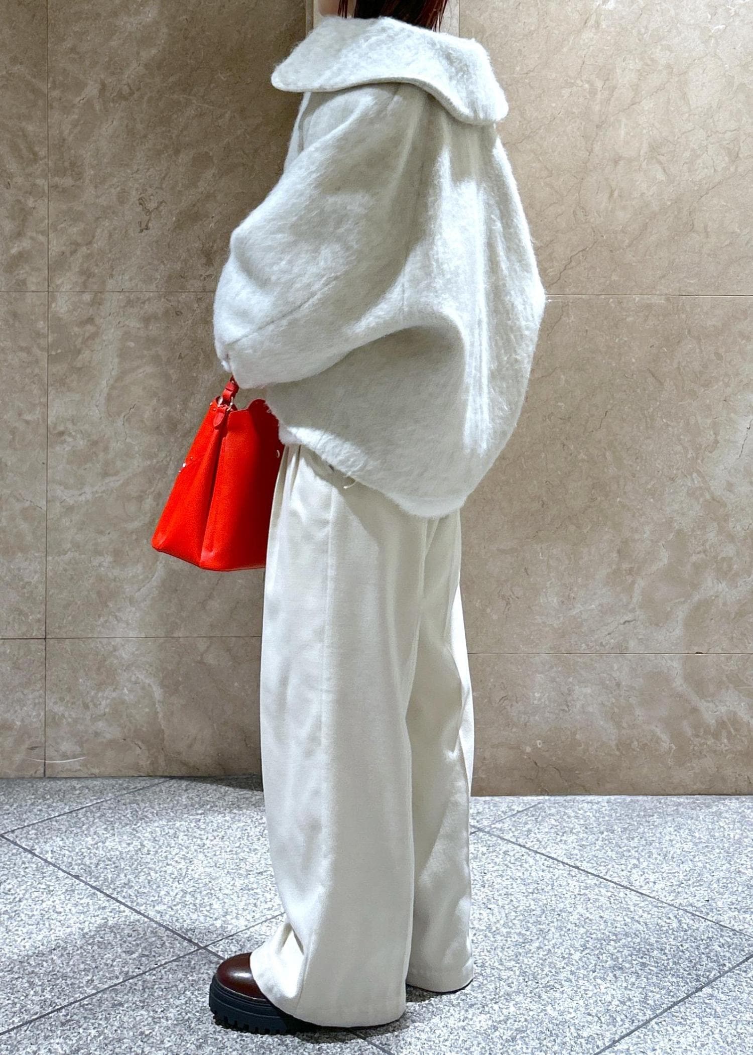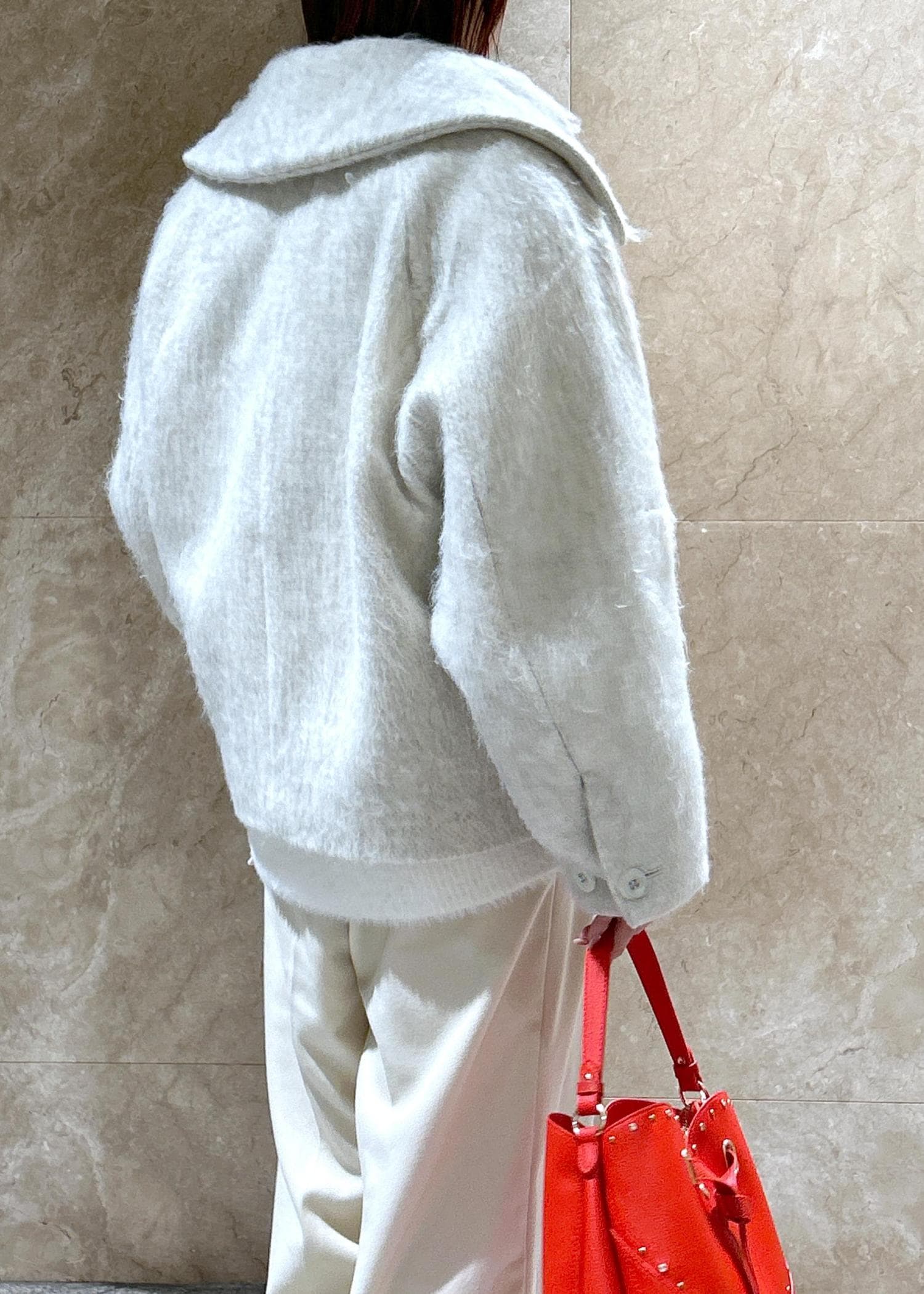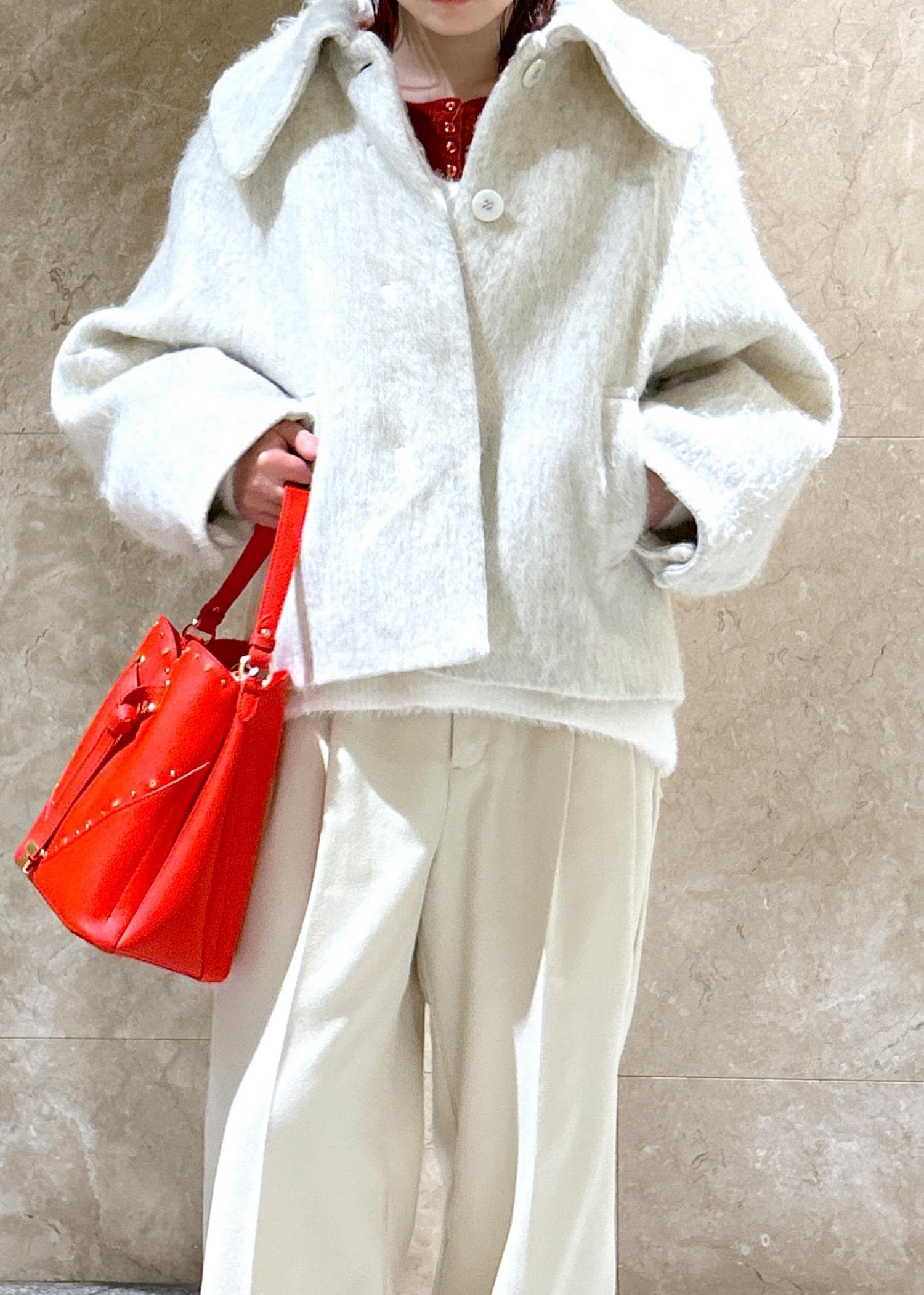 NEW!VIS【アウター総選挙1位】ビッグカラーモモンガシャギーショートコートオフホワイト / S¥10,989レビュー大きな襟が小顔効果あり!のショートコートです!
