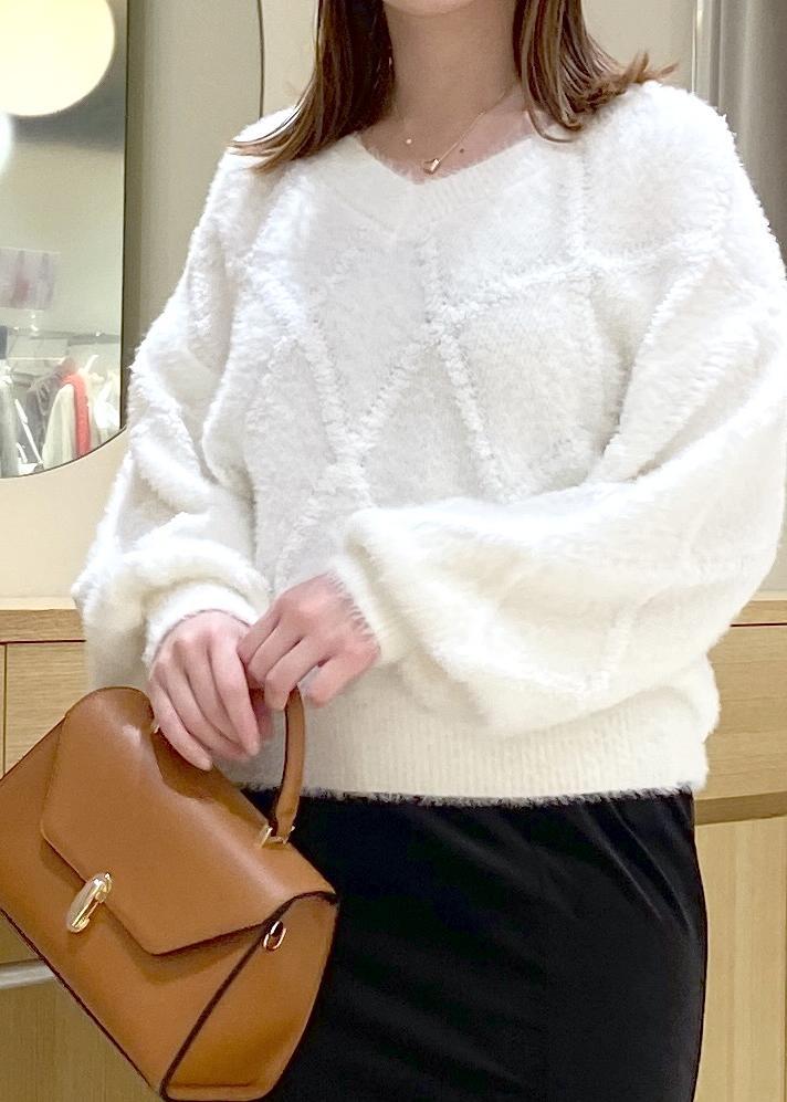 VISアーガイルフェザーニット/2WAY・イージーケアオフホワイト / F¥6,589レビューアーガイル柄の入ったニット。