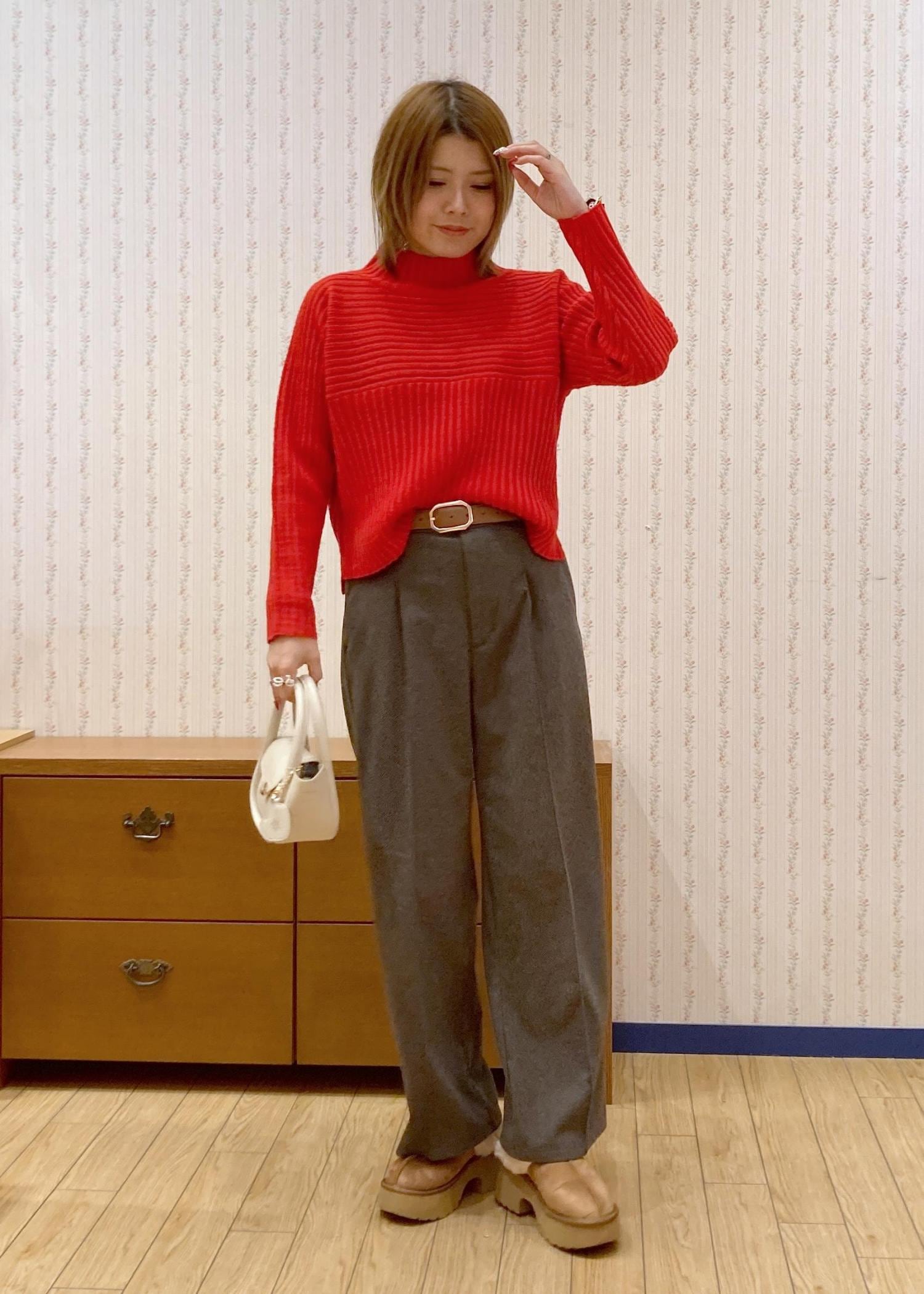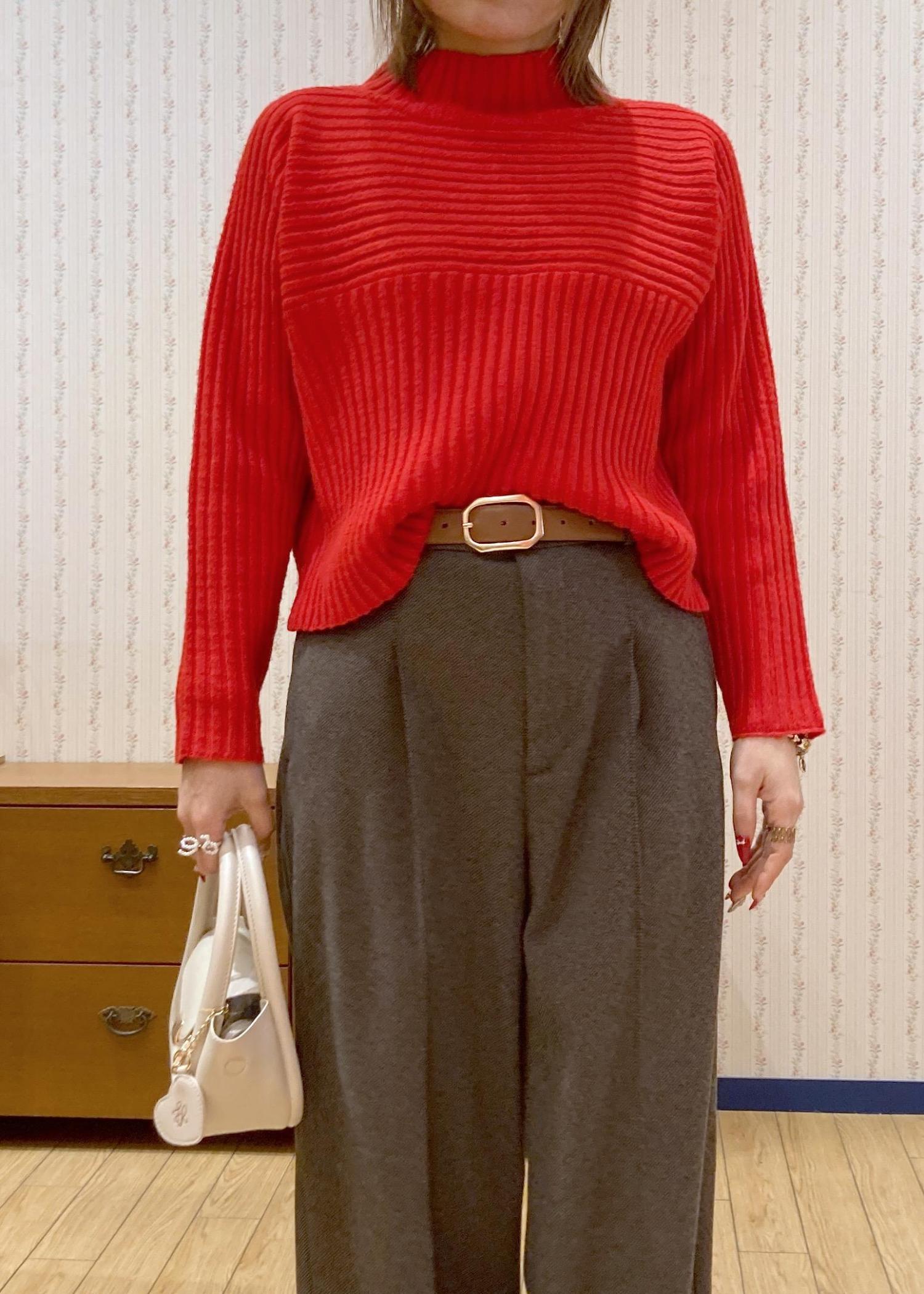 ROPÉ PICNICもちもちリブ切り替えニットプルオーバー/イージーケア・リンクコーデレッド / M¥4,499レビューゆるめのハイネックのニットです。