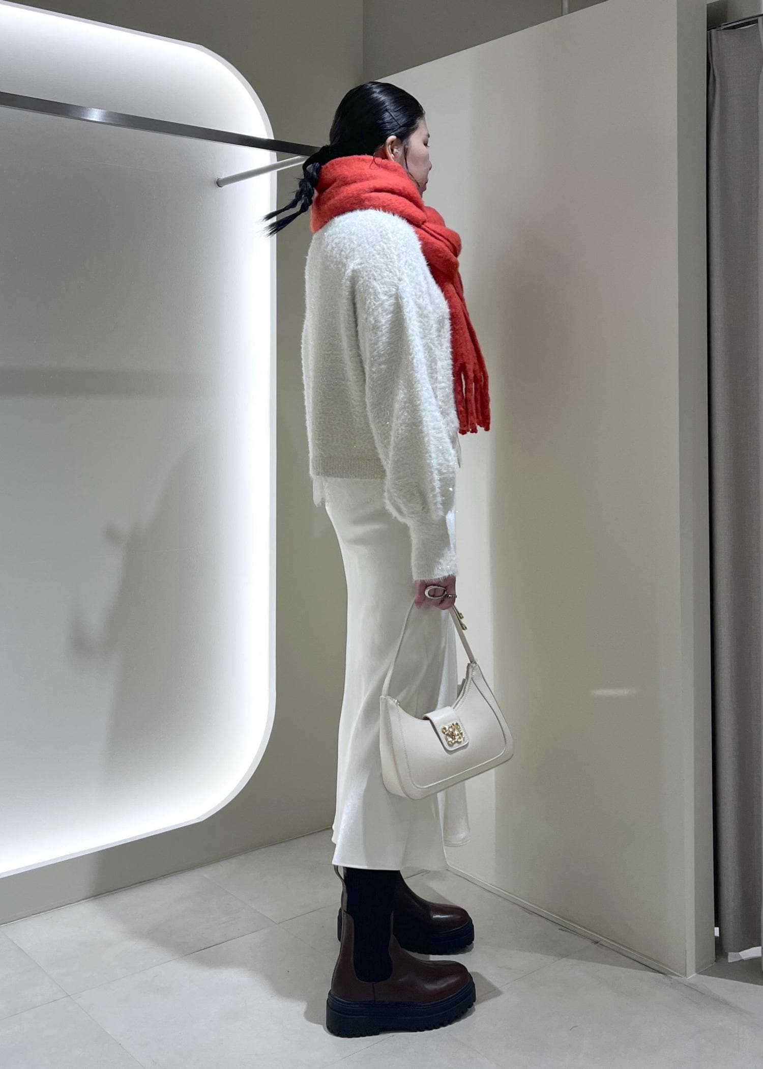 ポイントの赤いマフラーで,気分も上がります☺︎