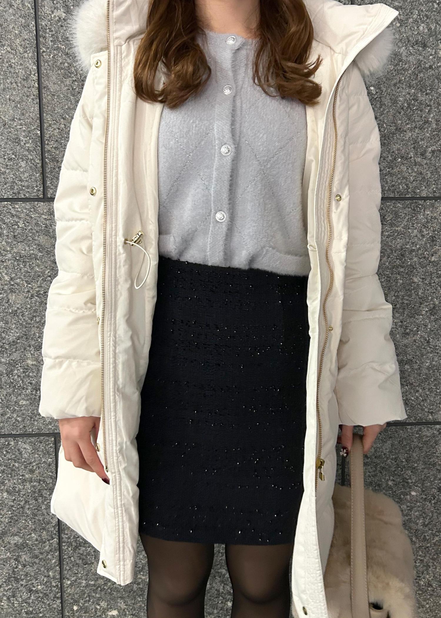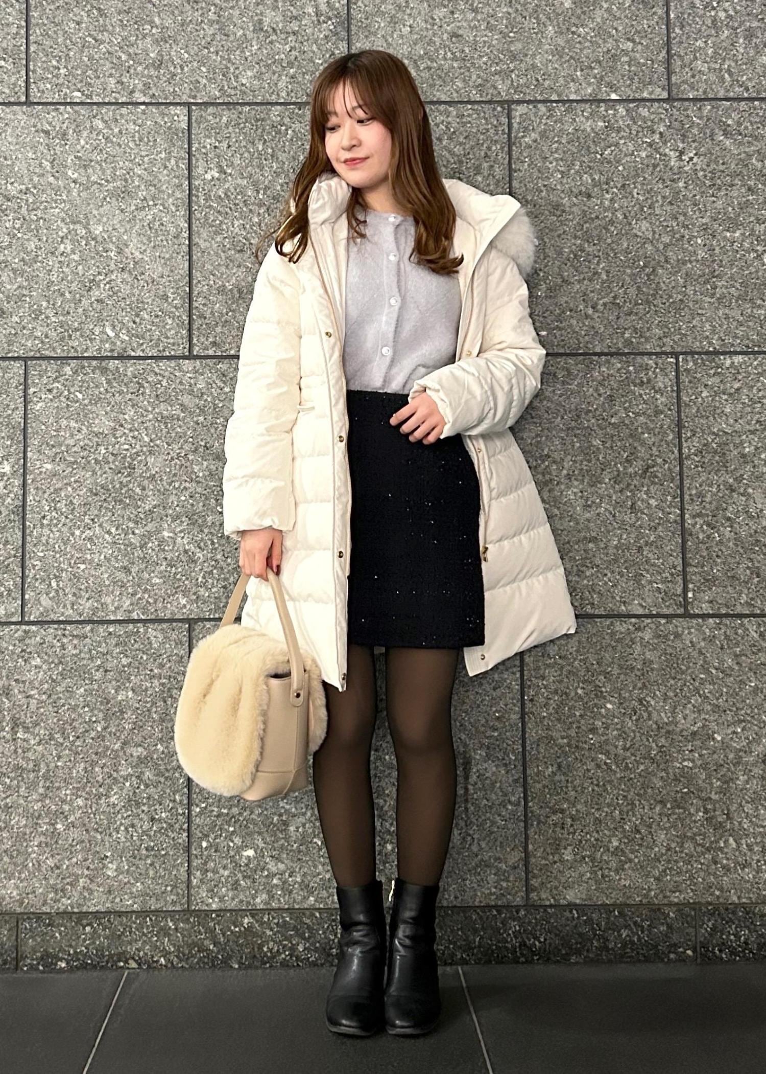 トップスとスカートの程よいラメ感とアウターとバッグのファーで、クリスマスデートにも着ていただけるような可愛らしいコーデに仕上げました!